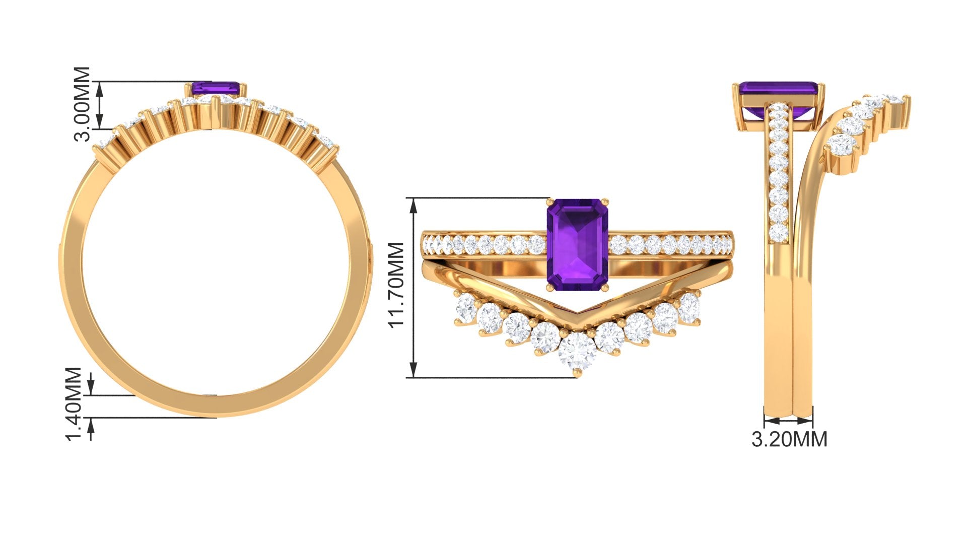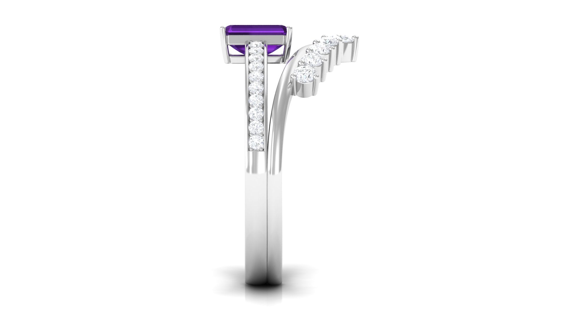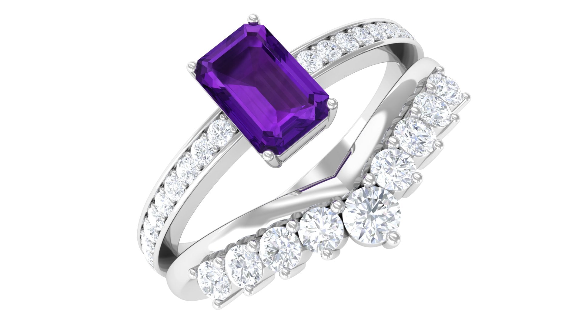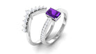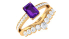 Octagon Cut Amethyst and Diamond Stackable Ring Set