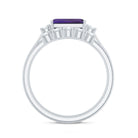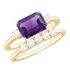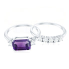 Octagon Cut Amethyst Contemporary Wedding Ring Set with Diamond