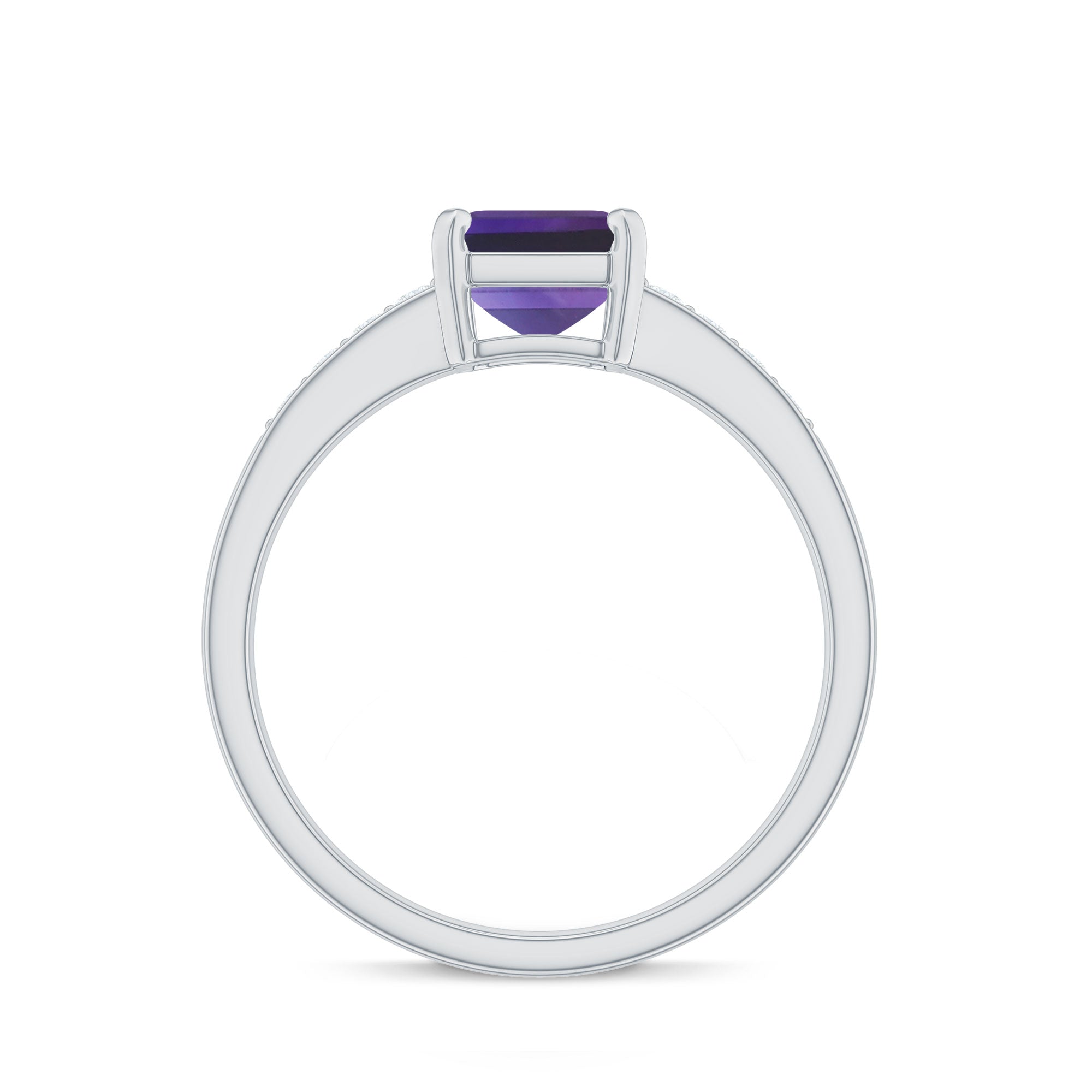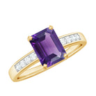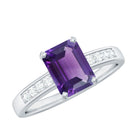 Octagon Cut Amethyst Solitaire Engagement Ring with Diamond Side Stones