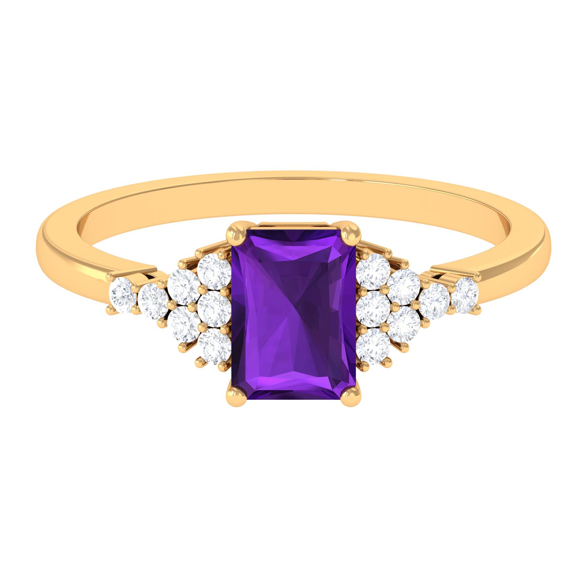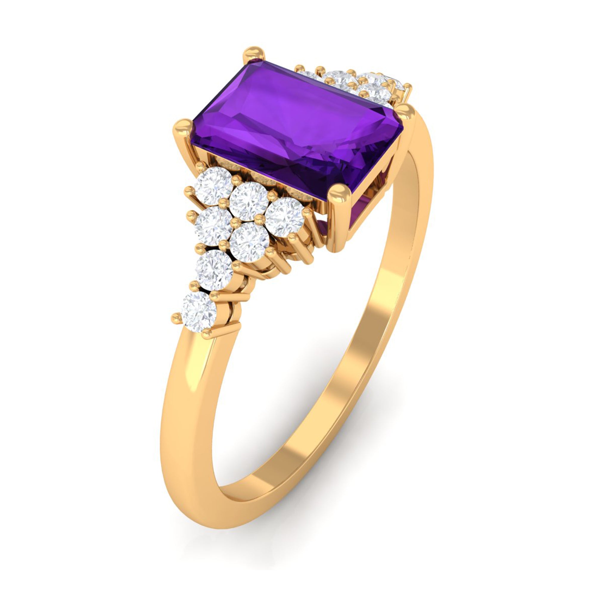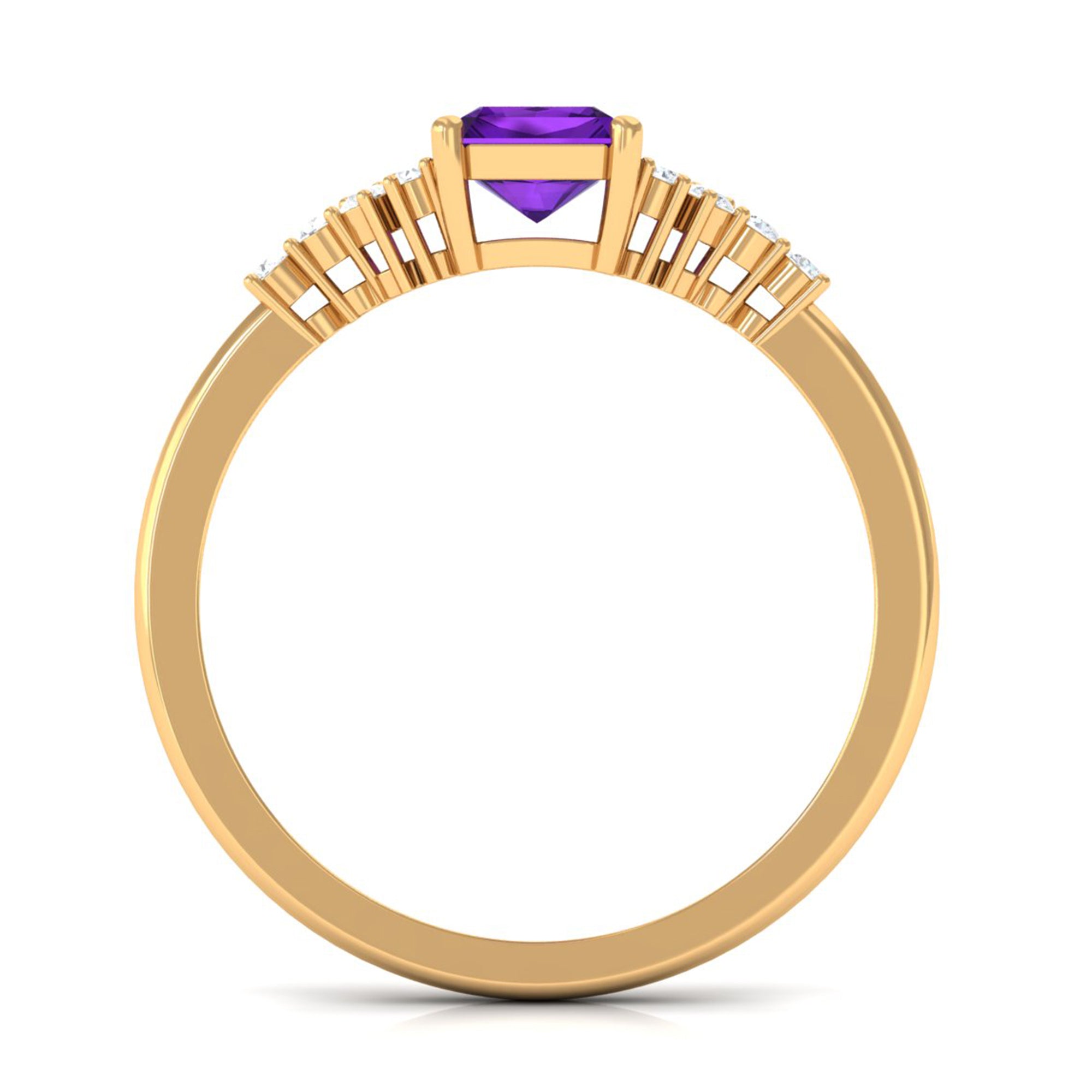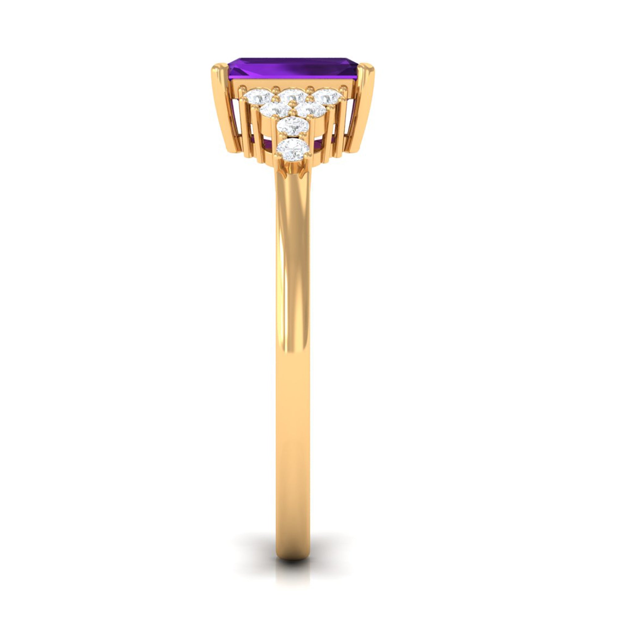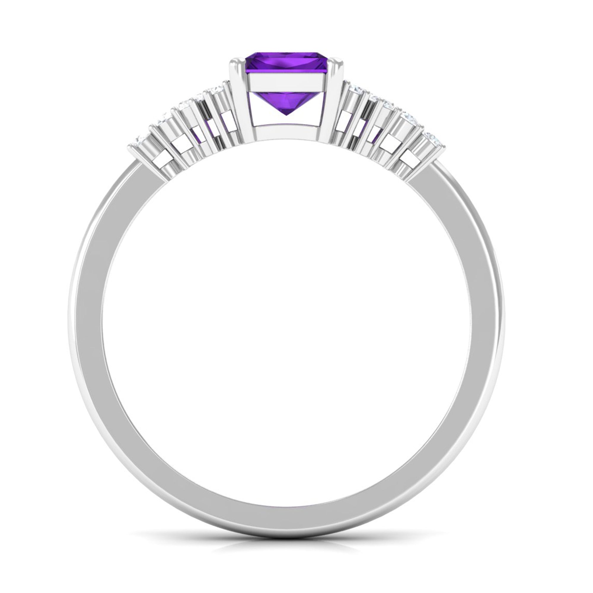 Octagon Cut Amethyst Solitaire Engagement Ring with Diamond