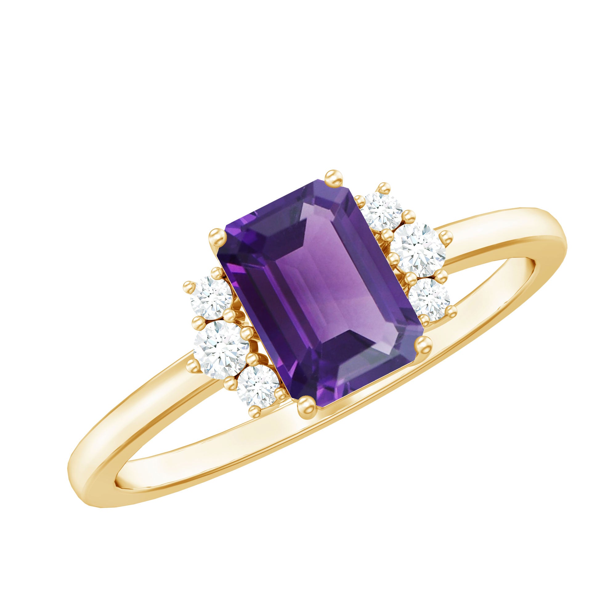 Octagon Cut Amethyst Solitaire Ring with Diamond Accent