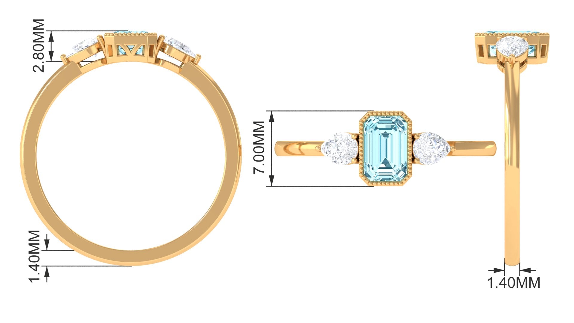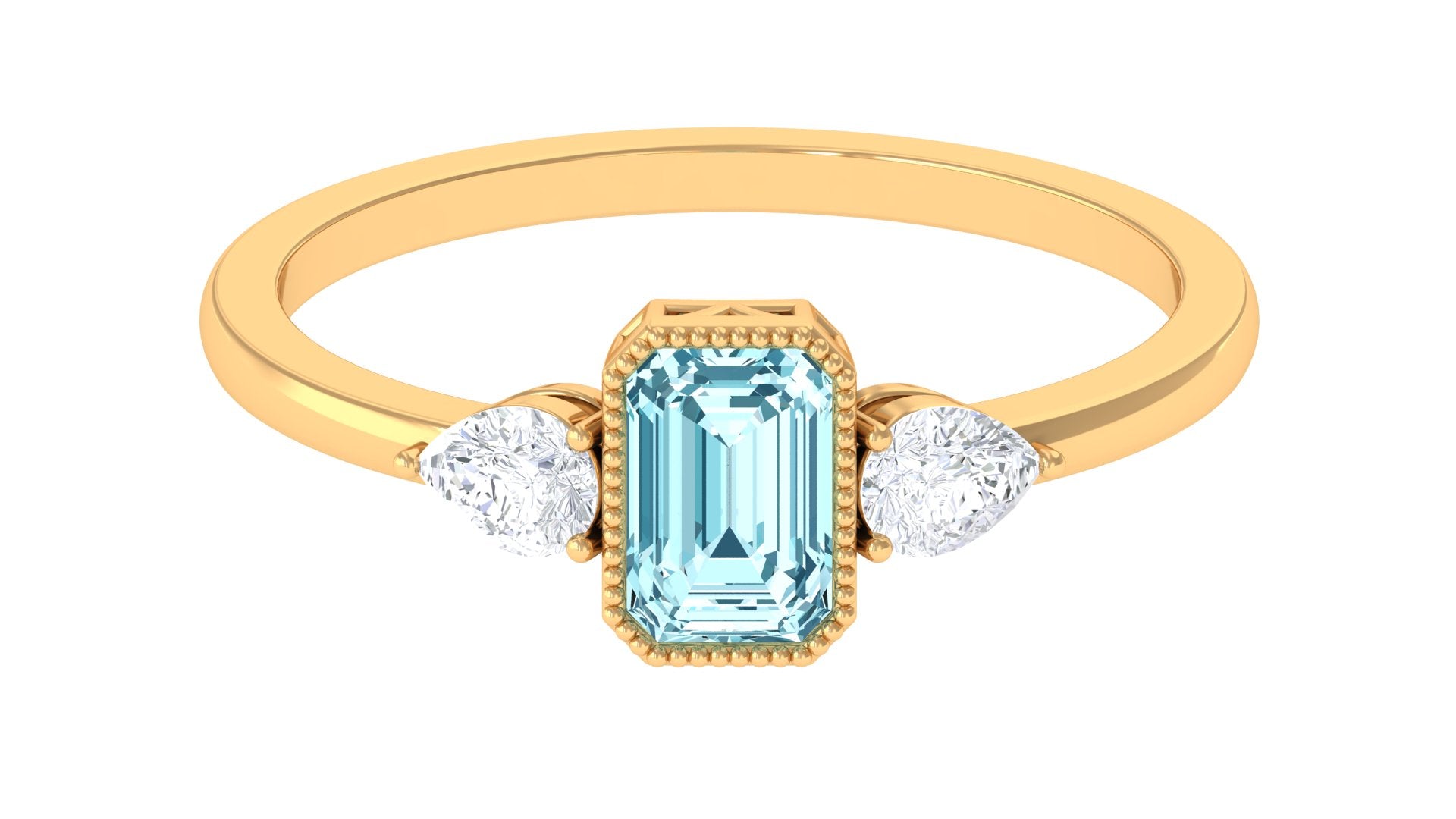 Octagon Cut Aquamarine Solitaire and Diamond Ring