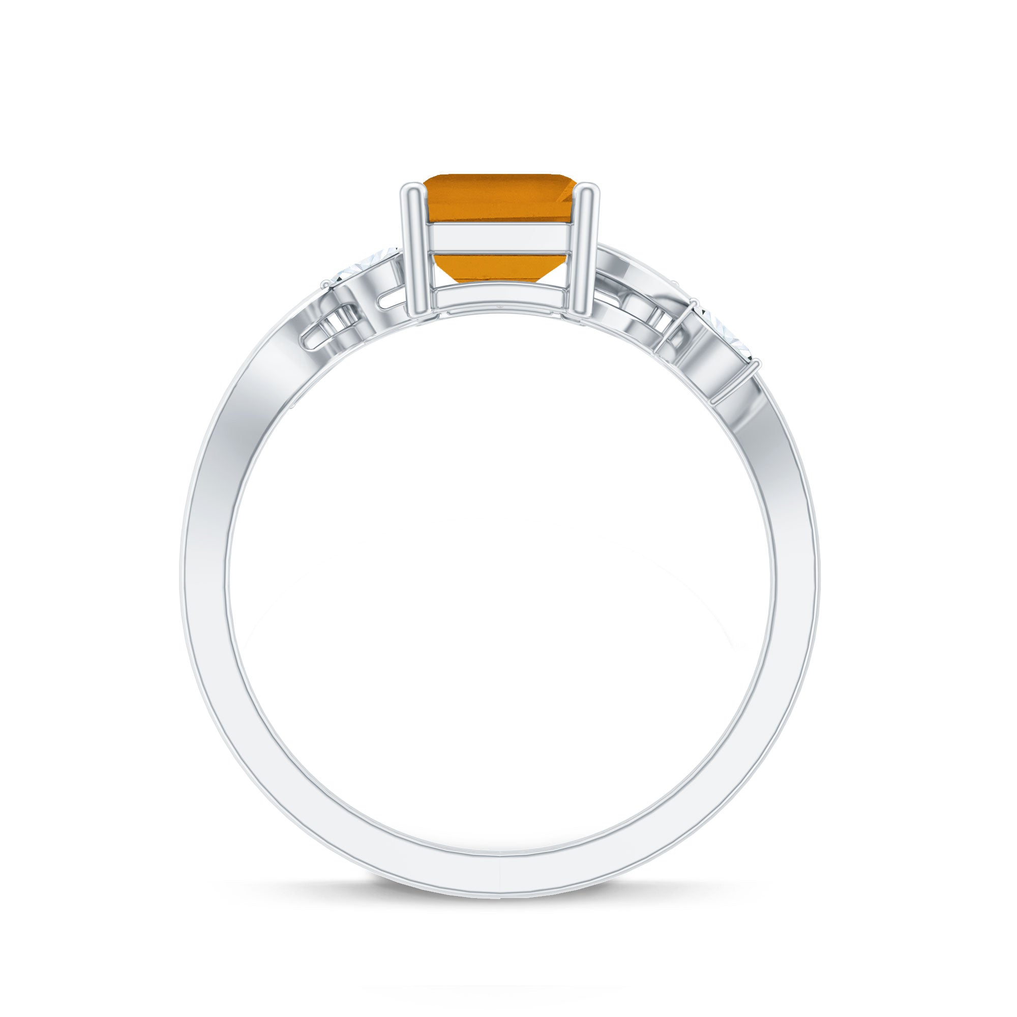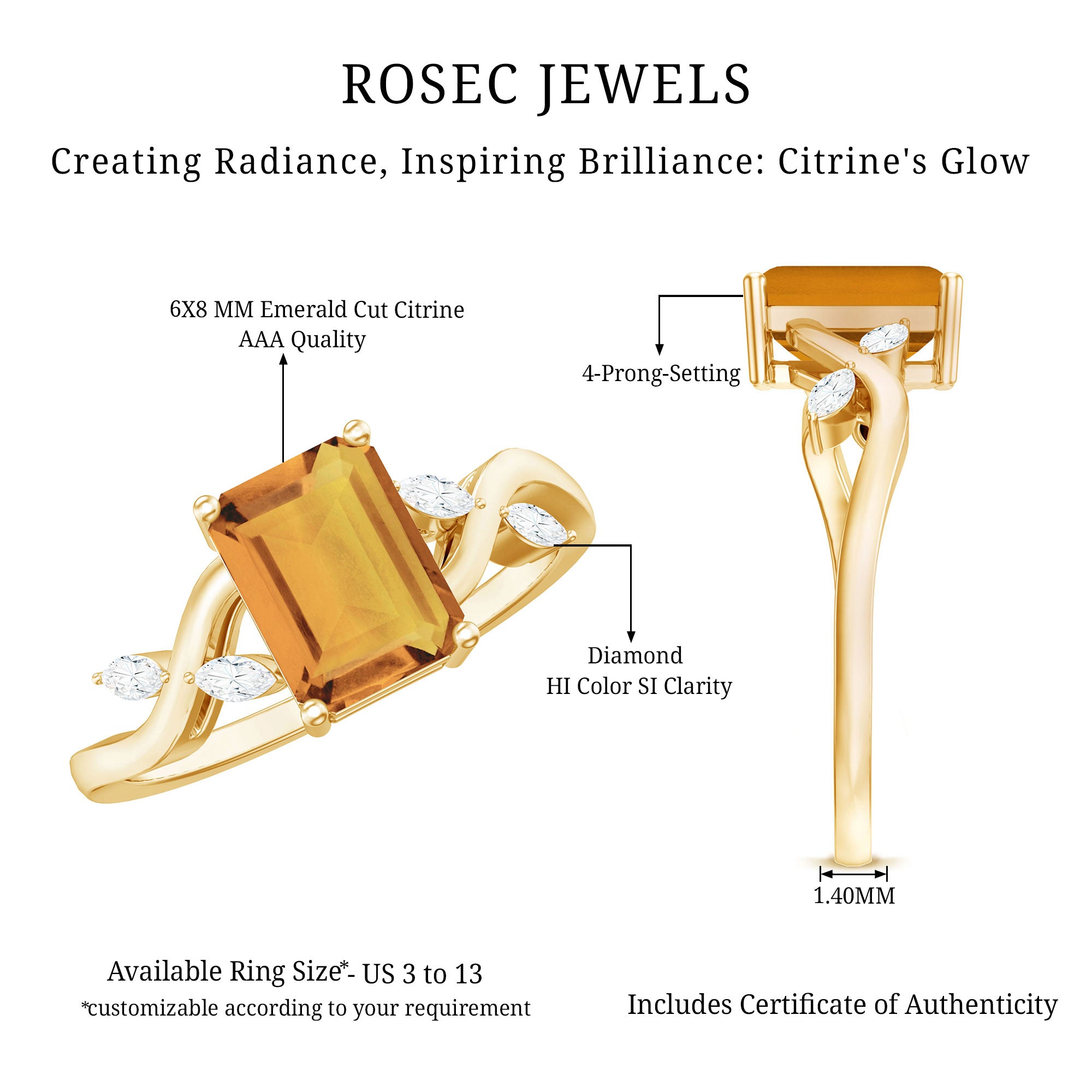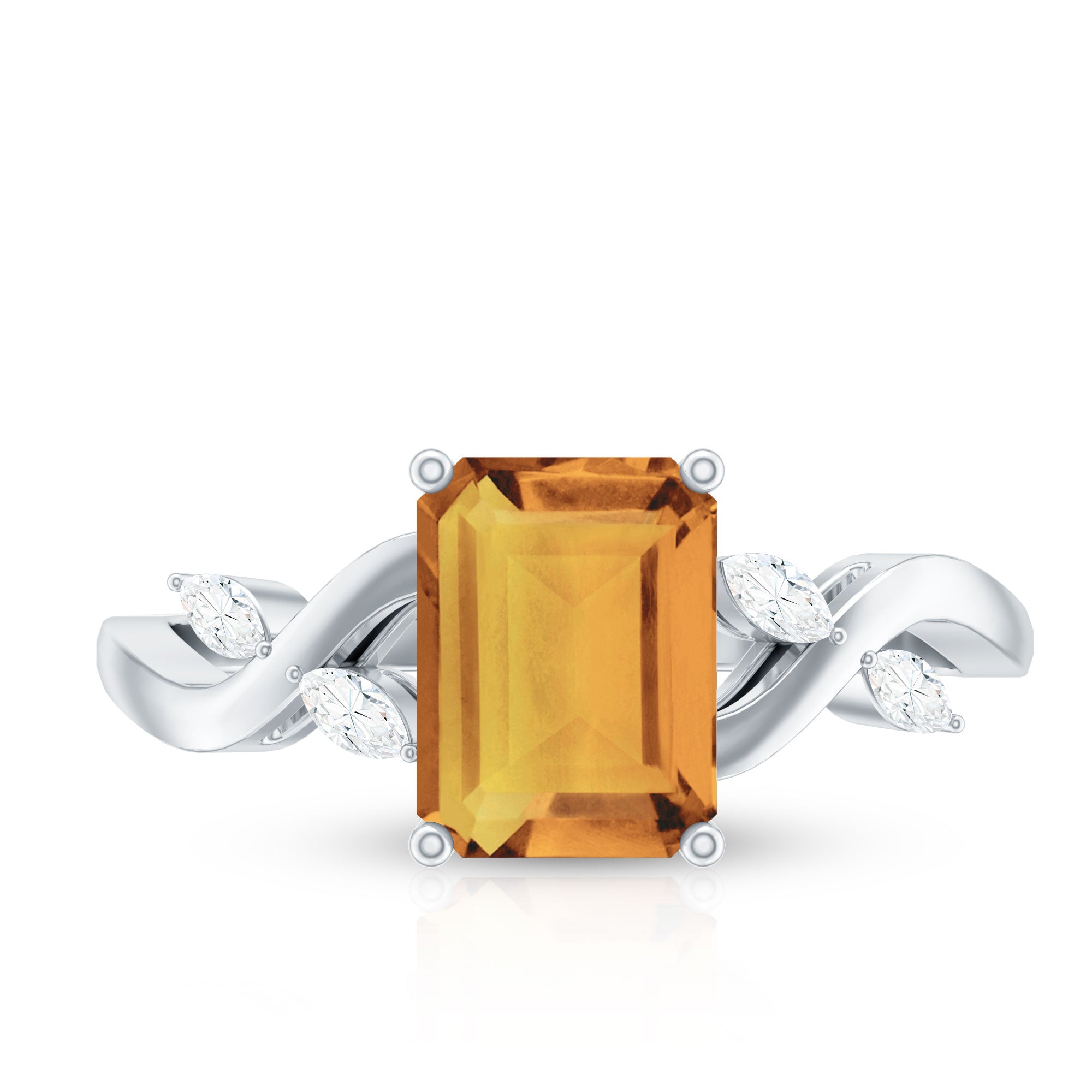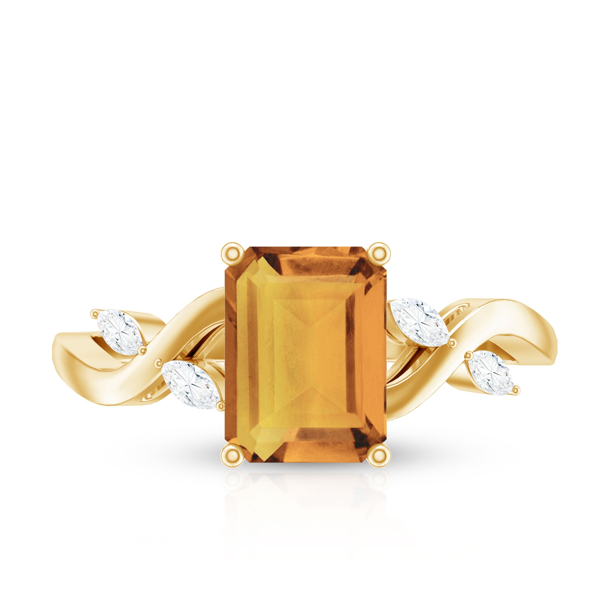 Octagon Cut Citrine and Diamond Solitaire Engagement Ring in Split Shank