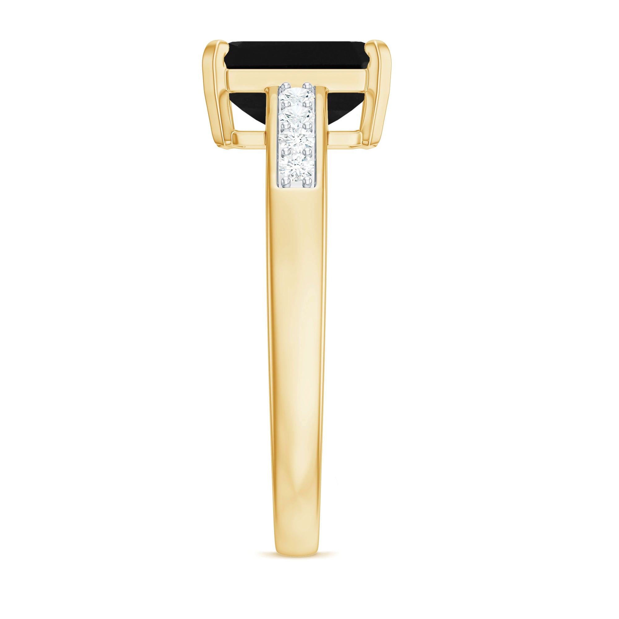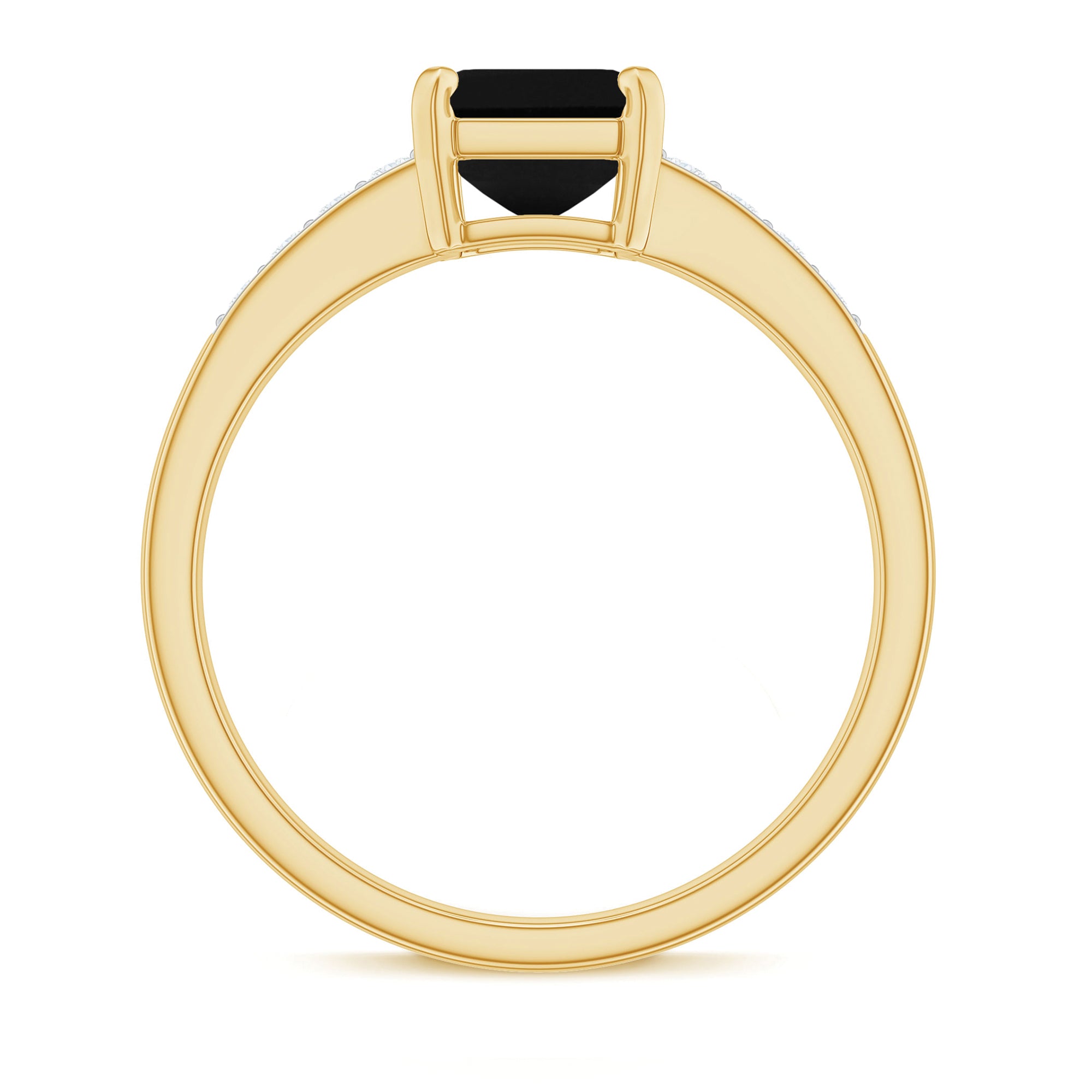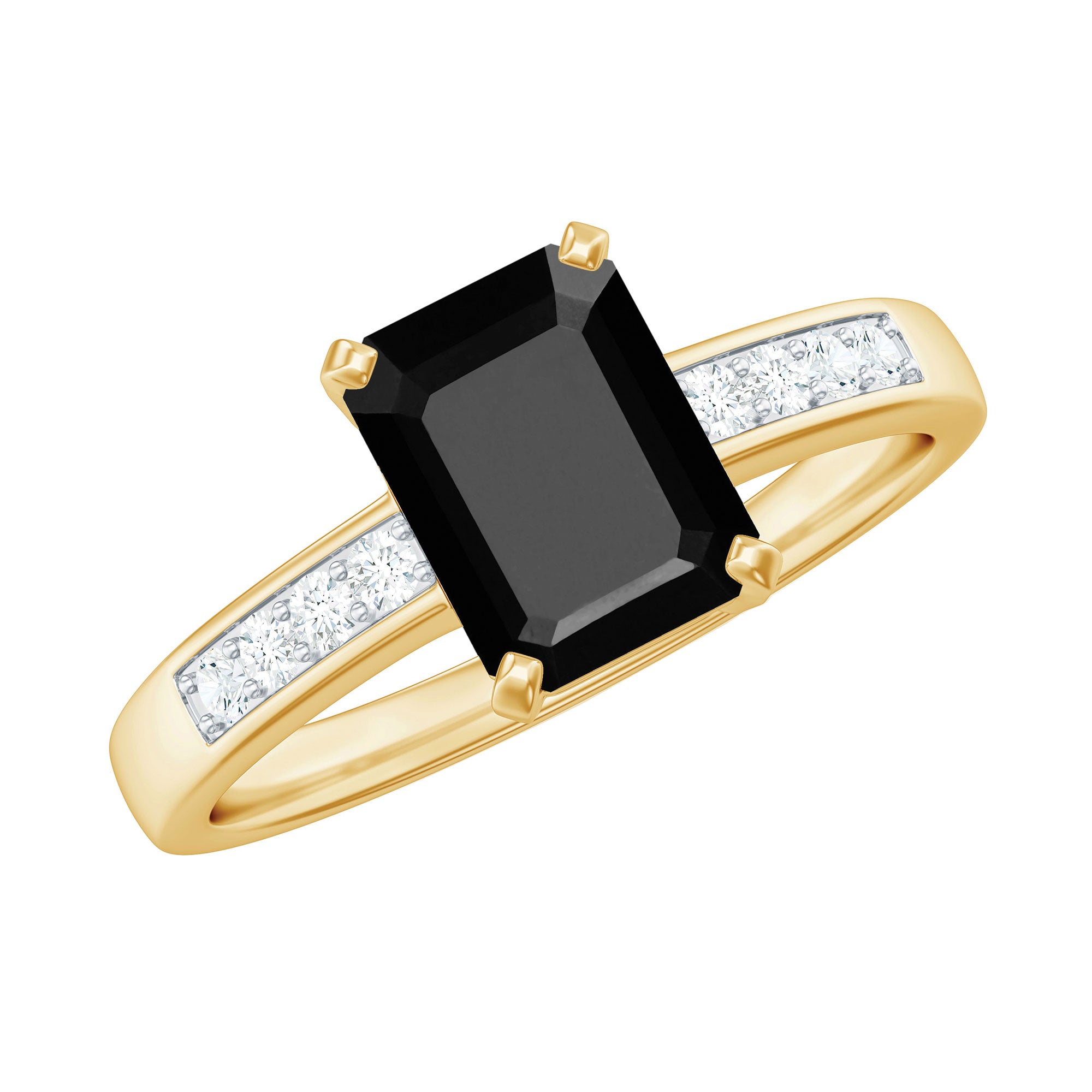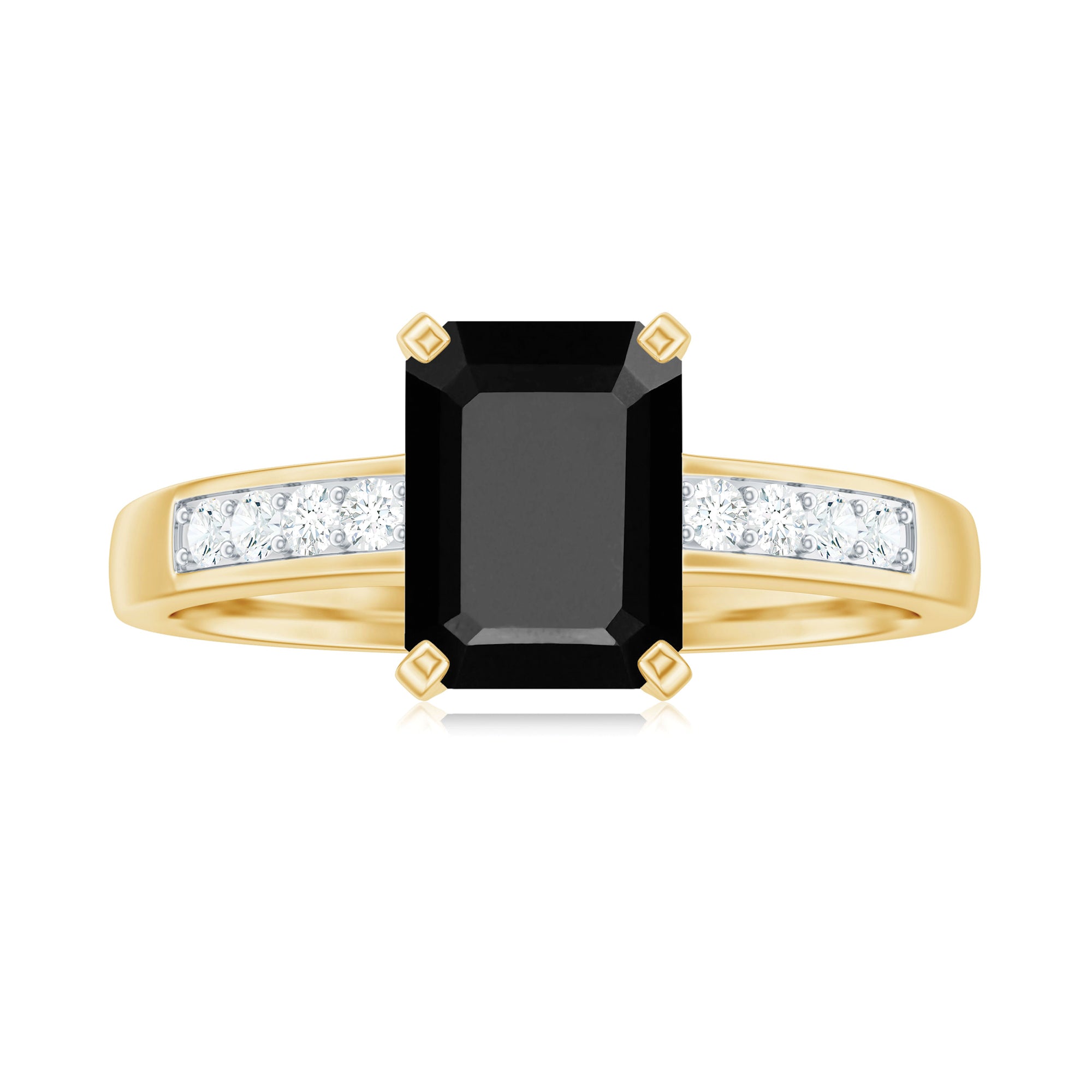 Enhance your style with this exquisite Solitaire Ring. The centerpiece is an octagon cut created Black Diamond in a square prong setting, surrounded by Round Shape Diamond accents. This ring is crafted from solid gold for a luxurious and elegant touch. The Created Black Diamond Solitaire Ring is the perfect addition to your jewelry collection and will bring sophistication to any outfit.