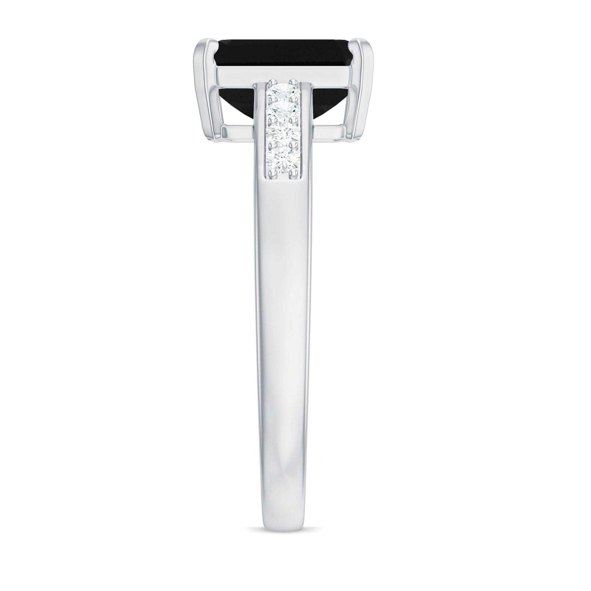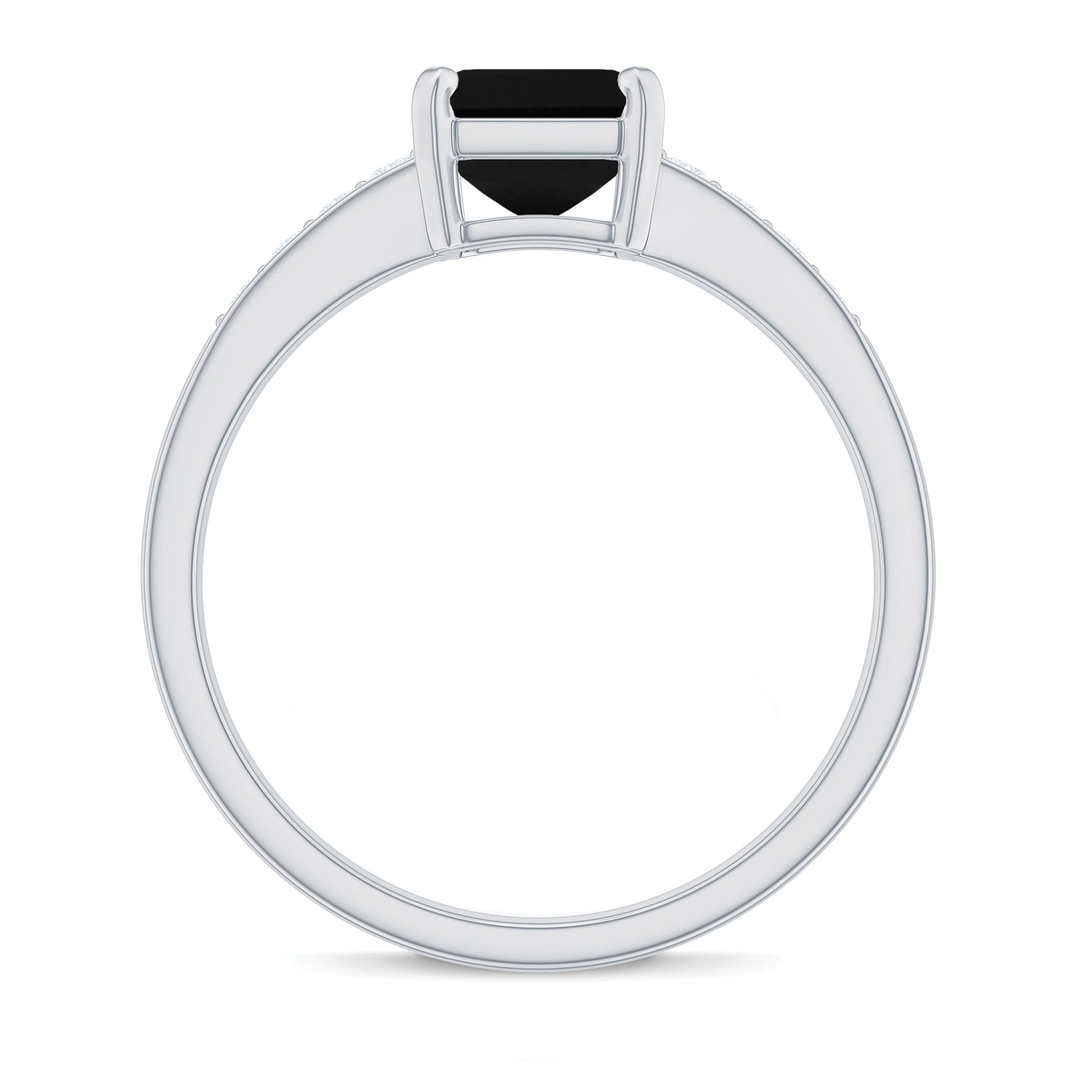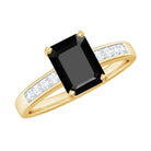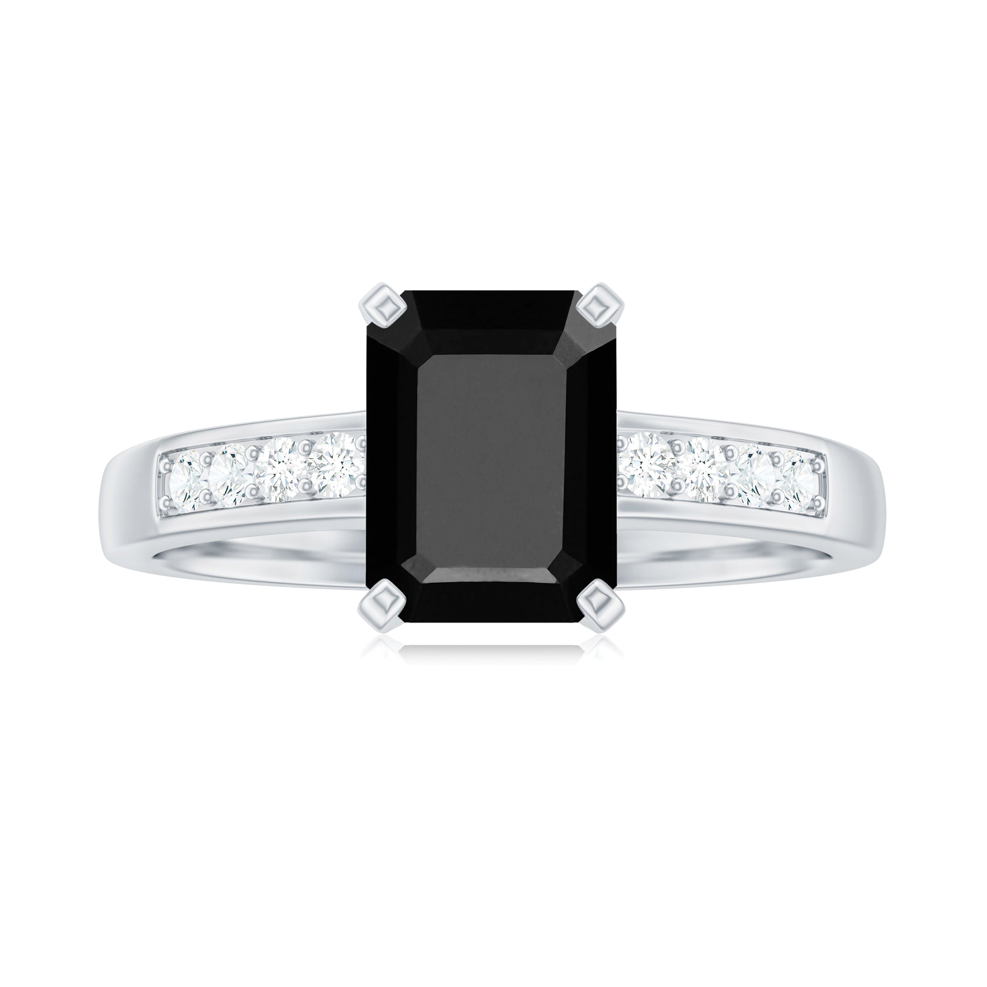 Octagon Cut Created Black Diamond Solitaire Ring with Accent