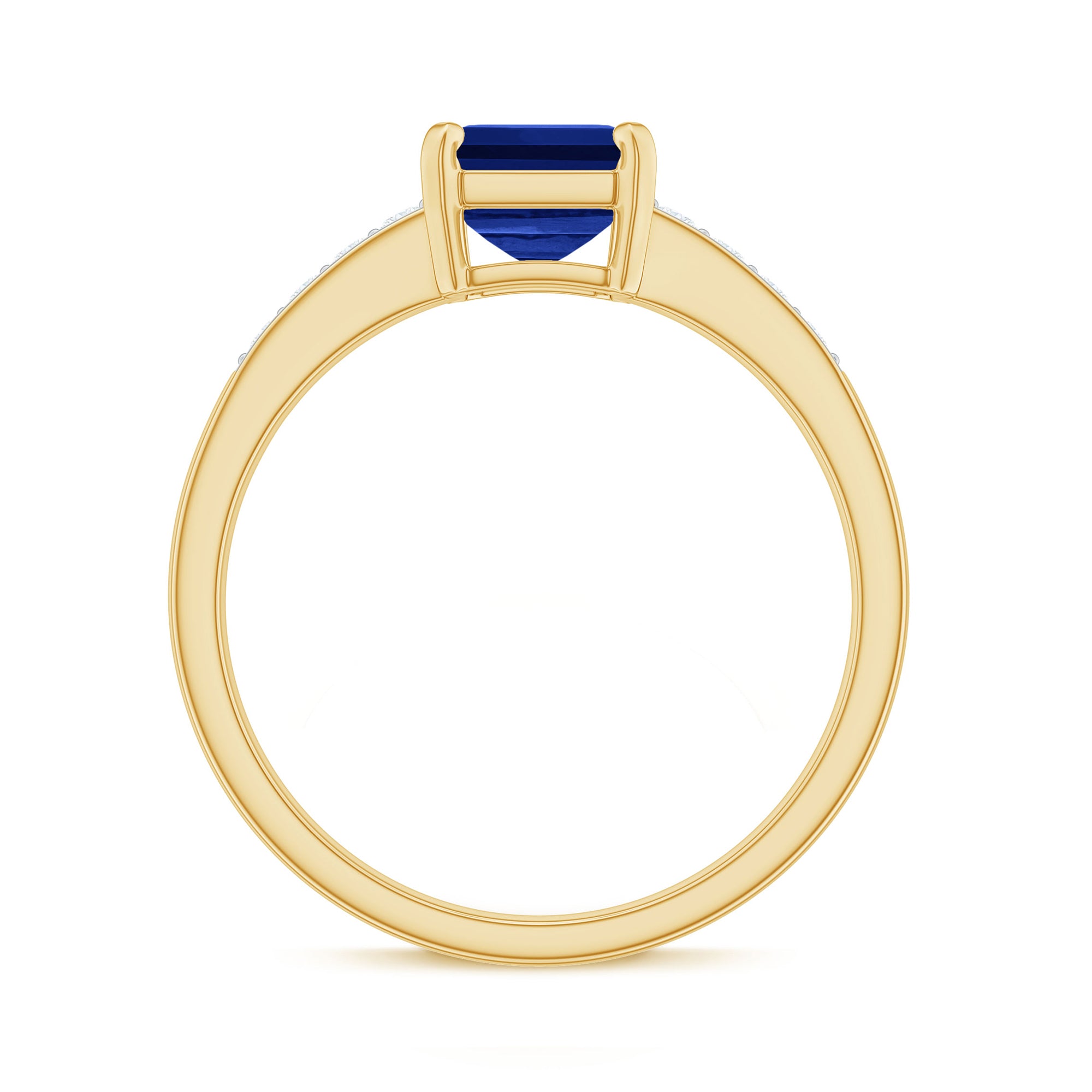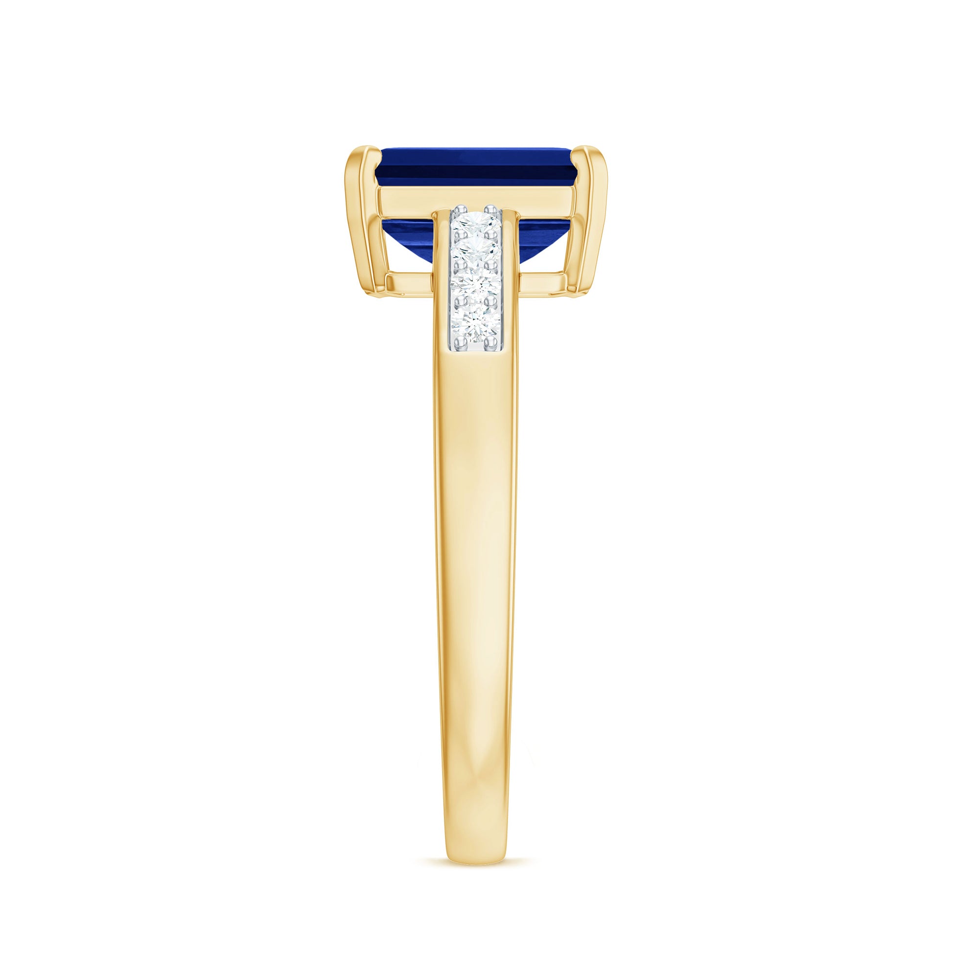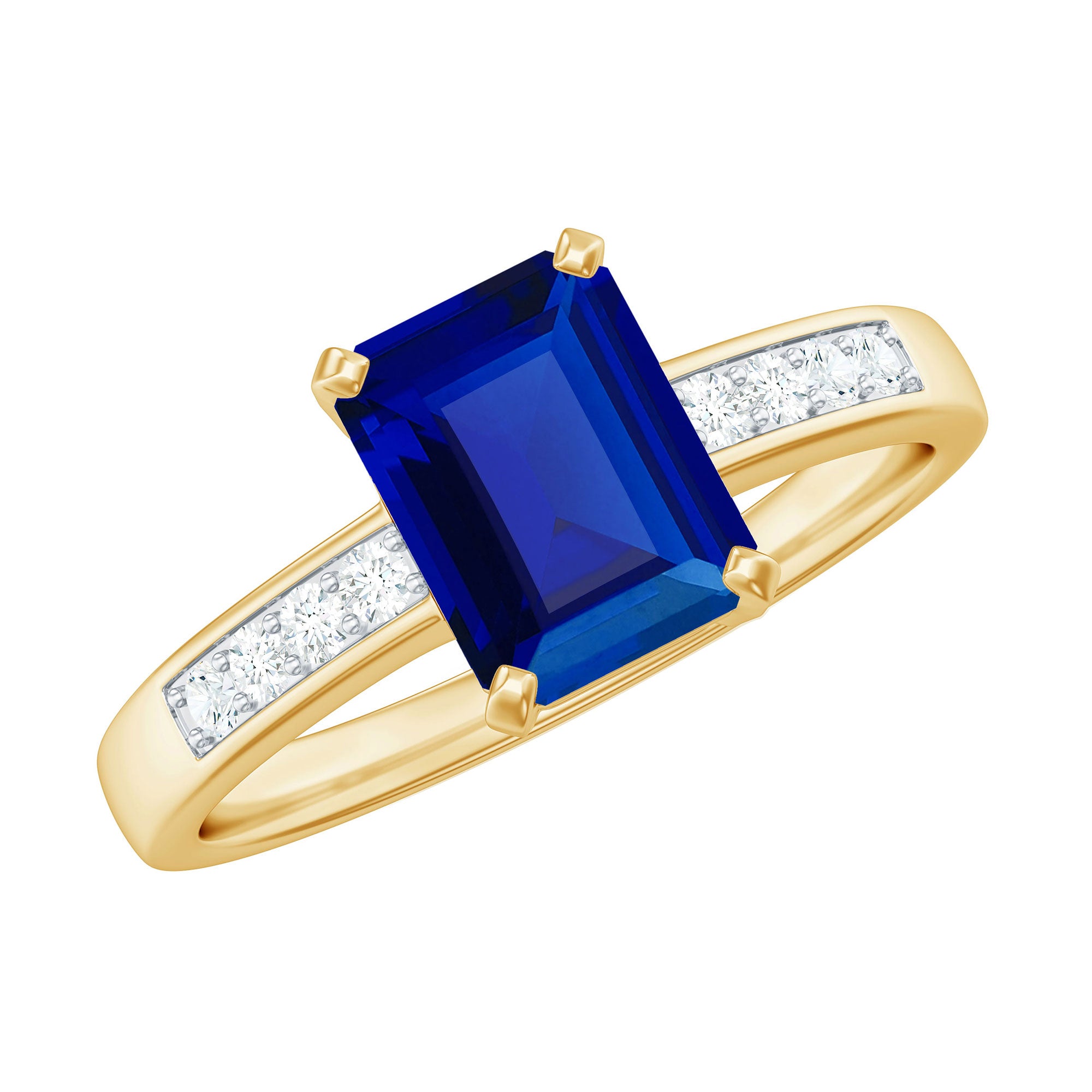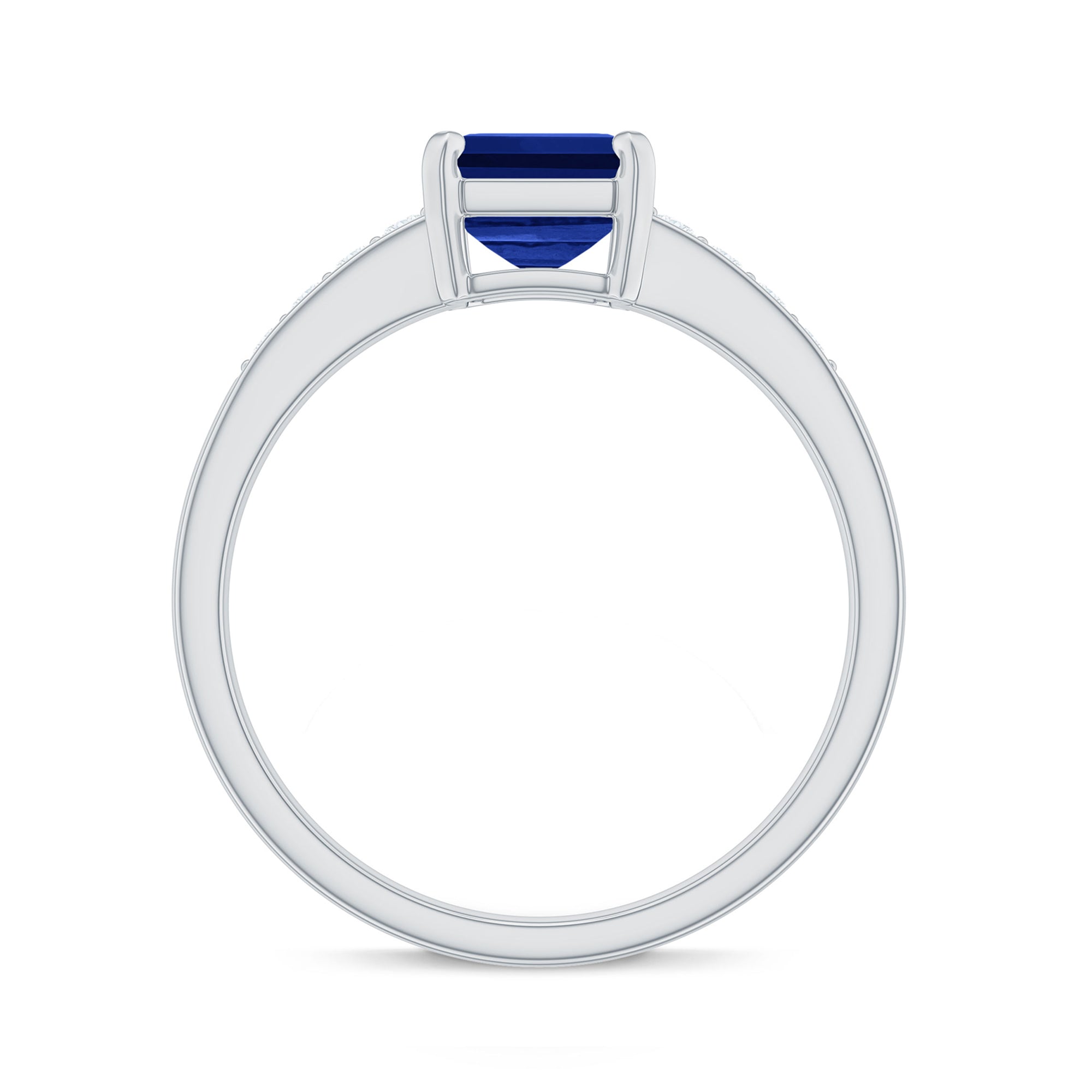 Make a statement with this stunning Created Blue Sapphire Ring! Featuring a 6X8 MM Octagon Cut Created Blue Sapphire in Prong Setting and Diamond Side Stones on a Solitaire Ring, this piece is sure to turn heads. This Ring can also be the perfect Engagement Ring for your loved one. With a total weight of 2 Carats and AAAA Clarity, you can trust that all our certified gemstones undergo rigorous quality checks to ensure their exceptional quality.
