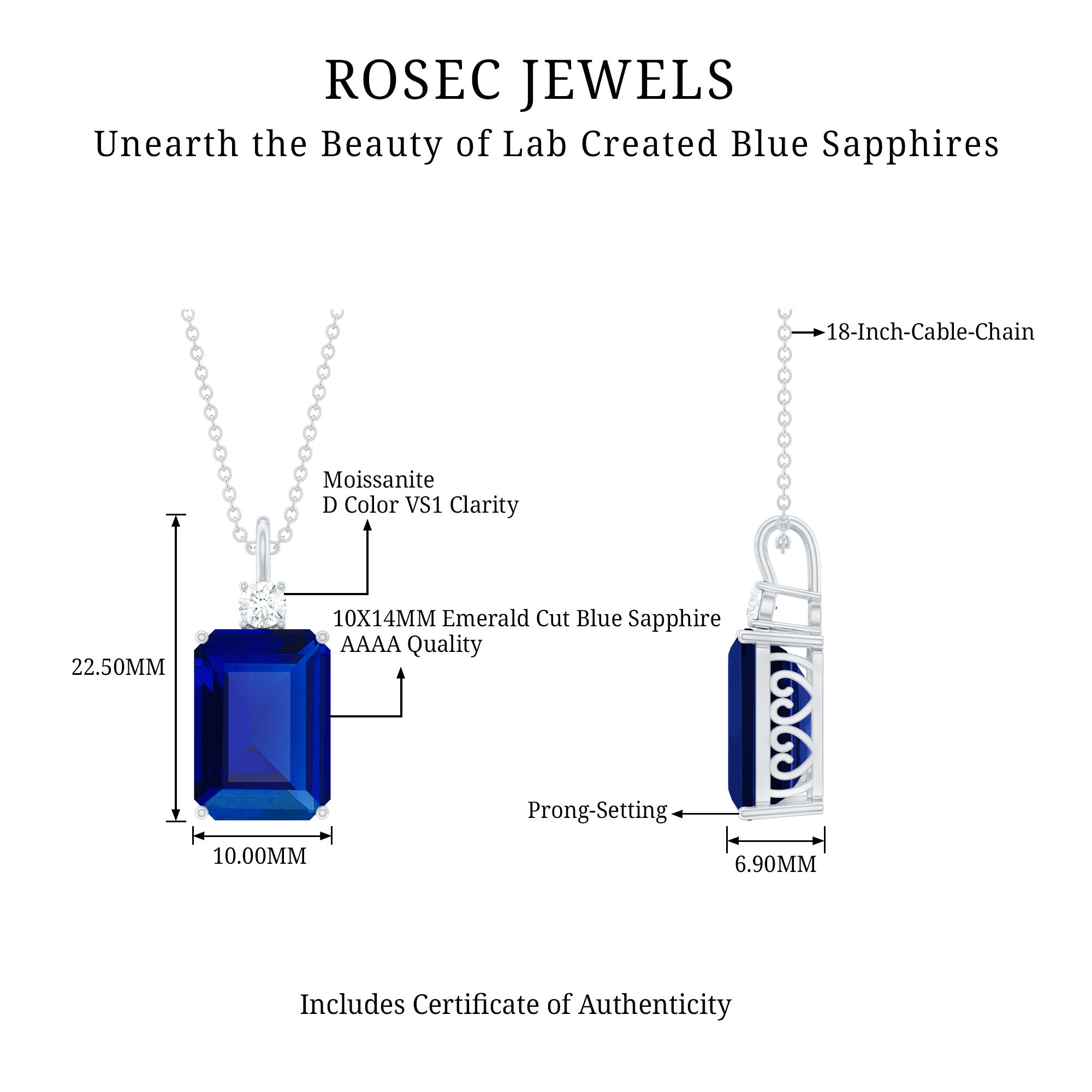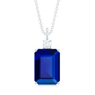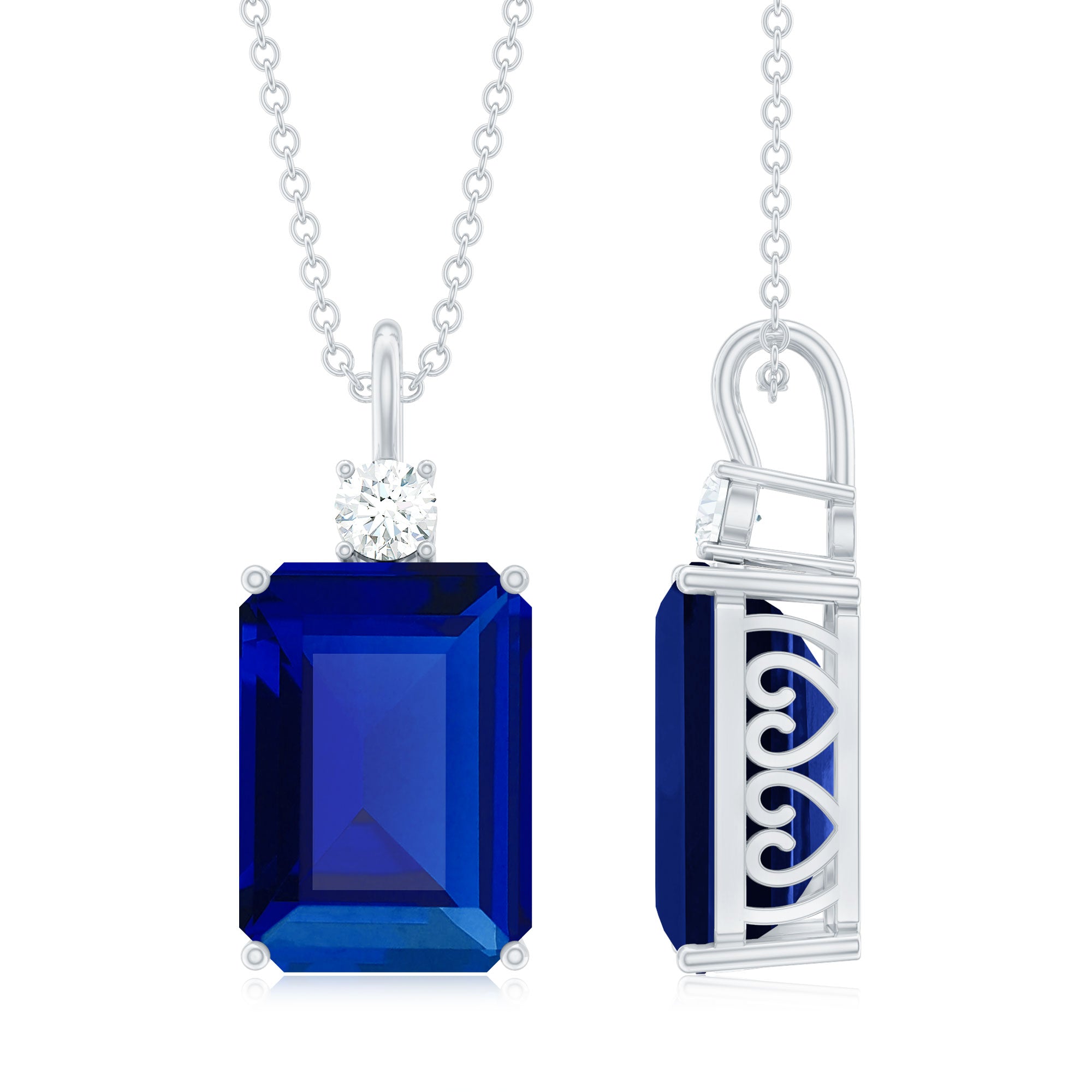 Octagon Cut Created Blue Sapphire Solitaire Pendant with Moissanite