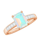 Genuine 6X8mm Ethiopian Opal Emerald Cut Engagement Ring with Diamond