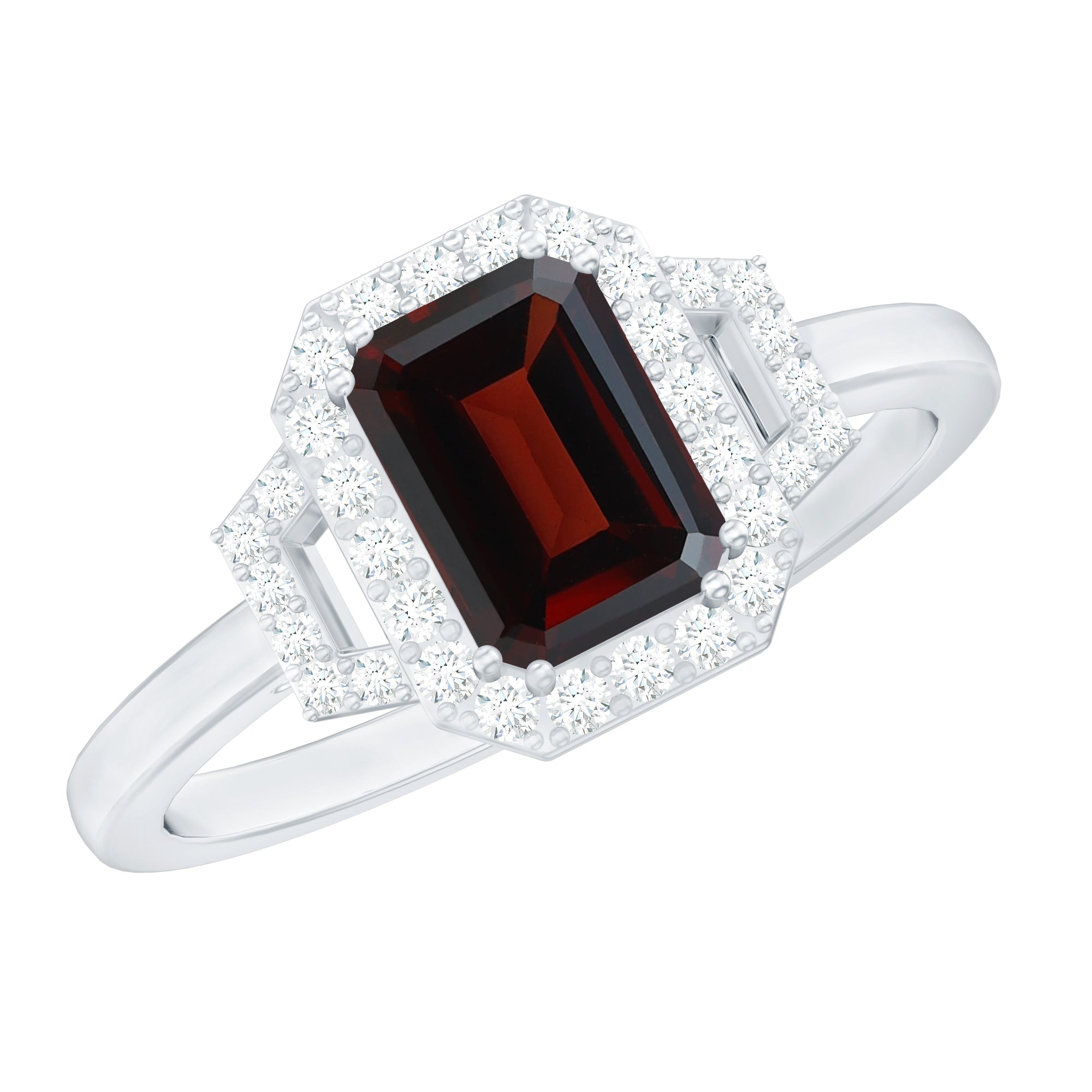 Octagon Cut Garnet and Diamond Statement Engagement Ring