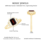 Make a bold statement with this magnificent engagement ring, featuring a stunning octagon-cut Garnet centerpiece, encircled by a sparkling halo of round Diamond stones. Crafted with high-quality gold, this Garnet ring is designed to last a lifetime. The striking red of the Garnet is beautifully complemented by the brilliance of the Diamond stones. With its unique and eye-catching design, this ring is the perfect symbol of your love and commitment to your significant other. Its a truly exceptional piece that will leave your loved one speechless.