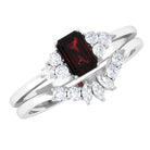 Genuine Garnet Diamond Emerald Cut Engagement Wedding Ring Set of 2