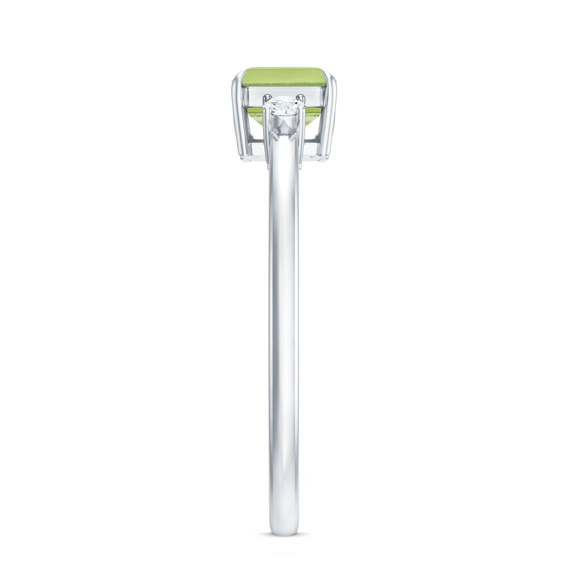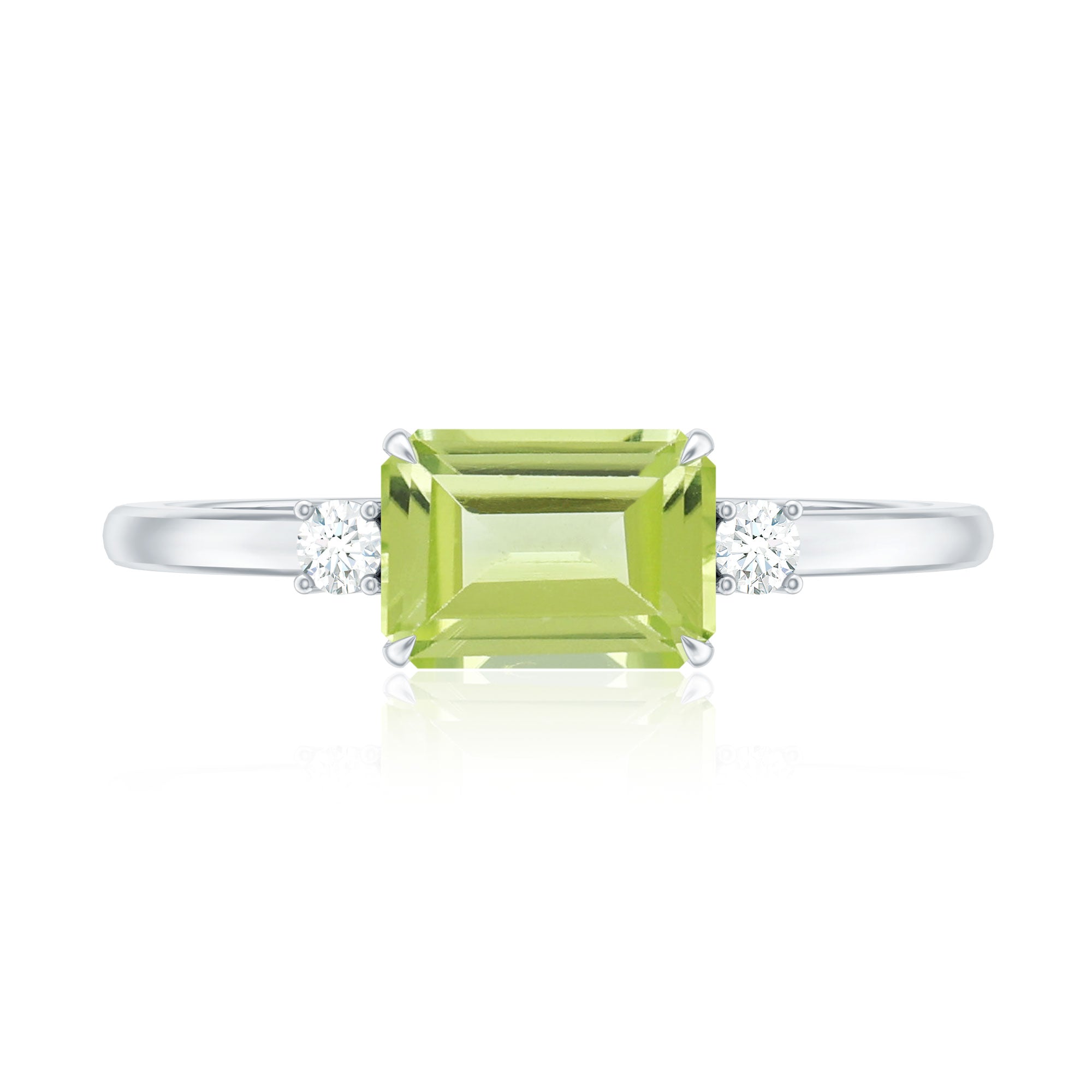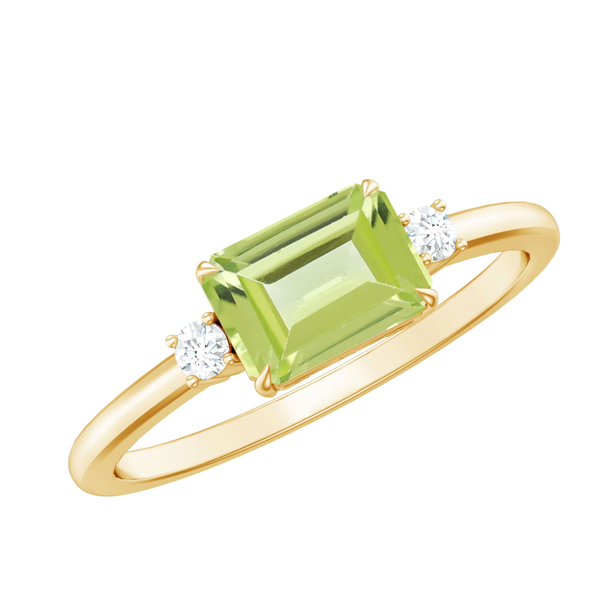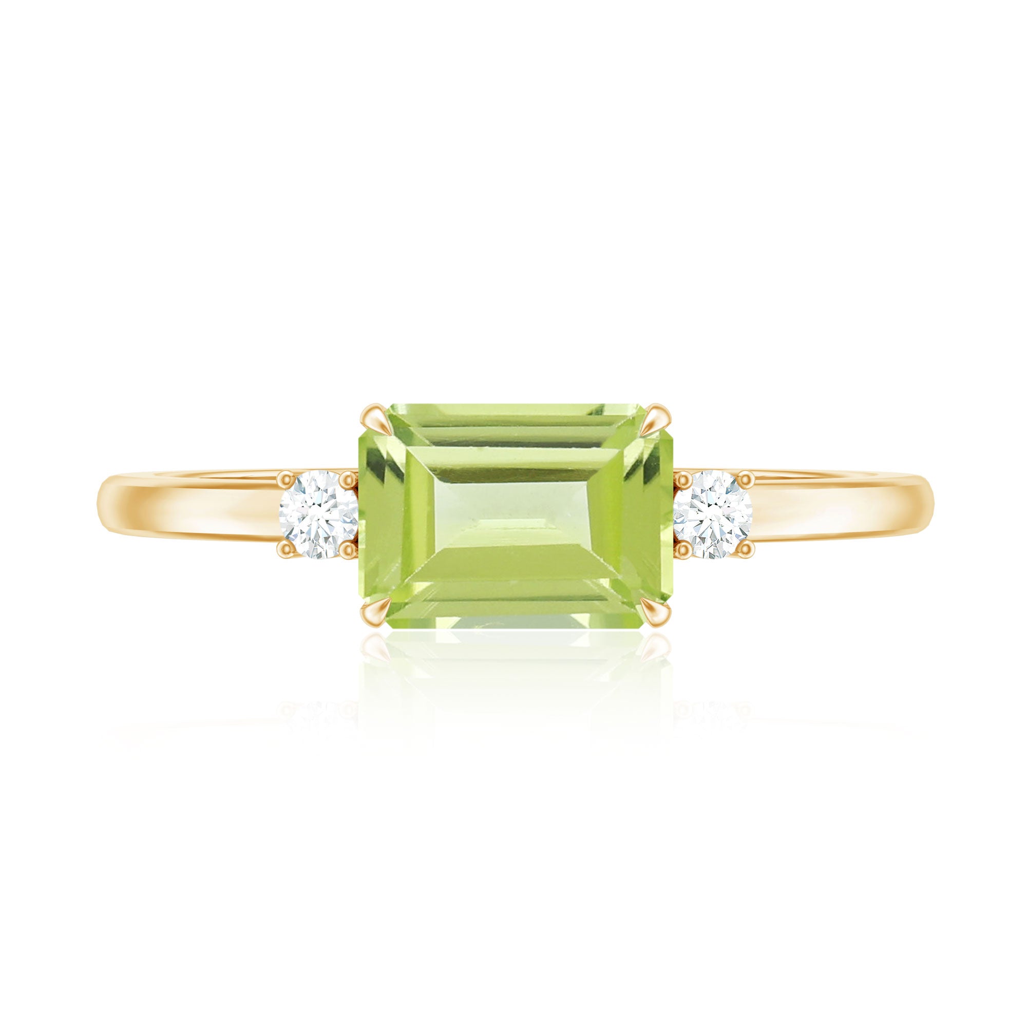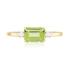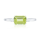 Emerald Cut Peridot East West Engagement Ring with Diamond