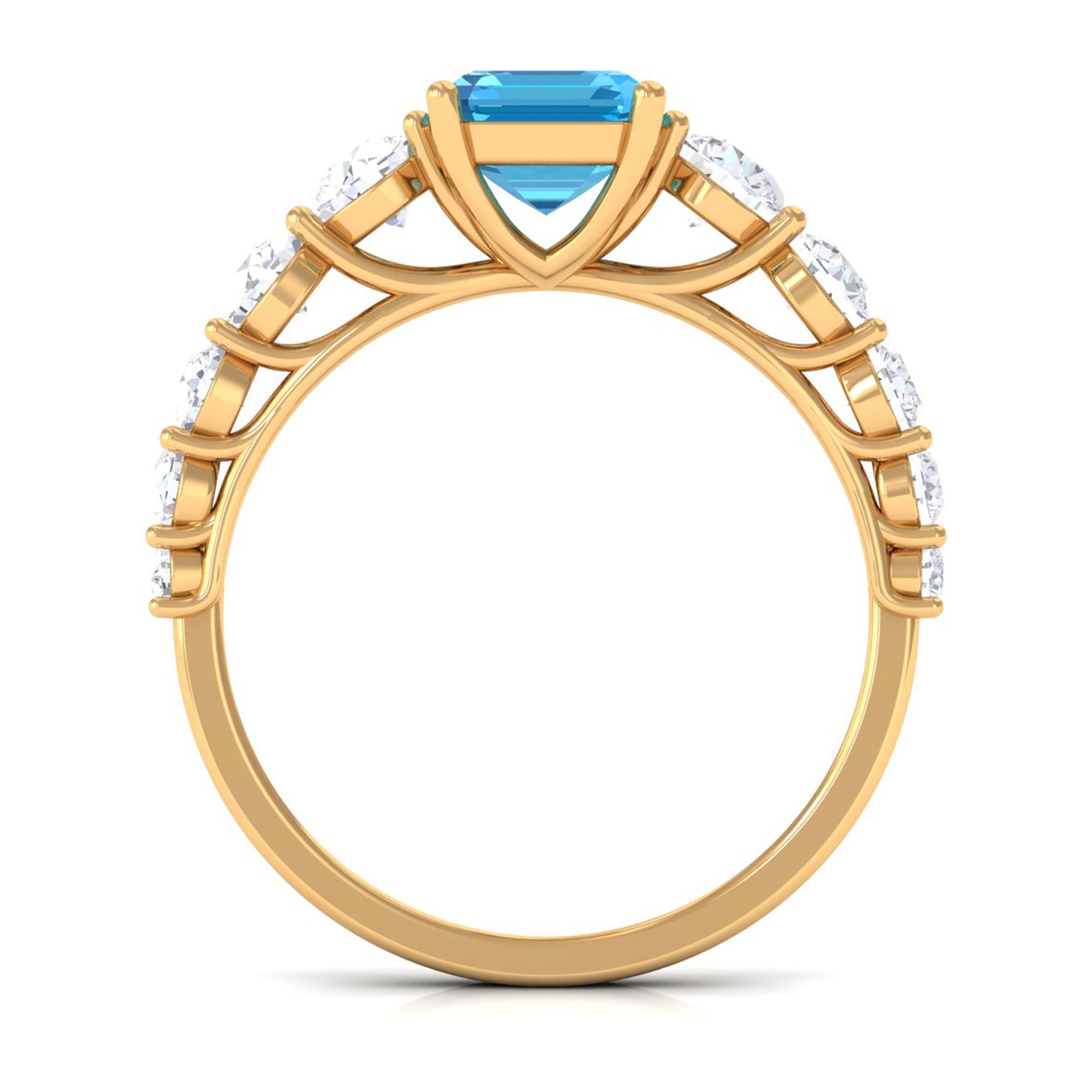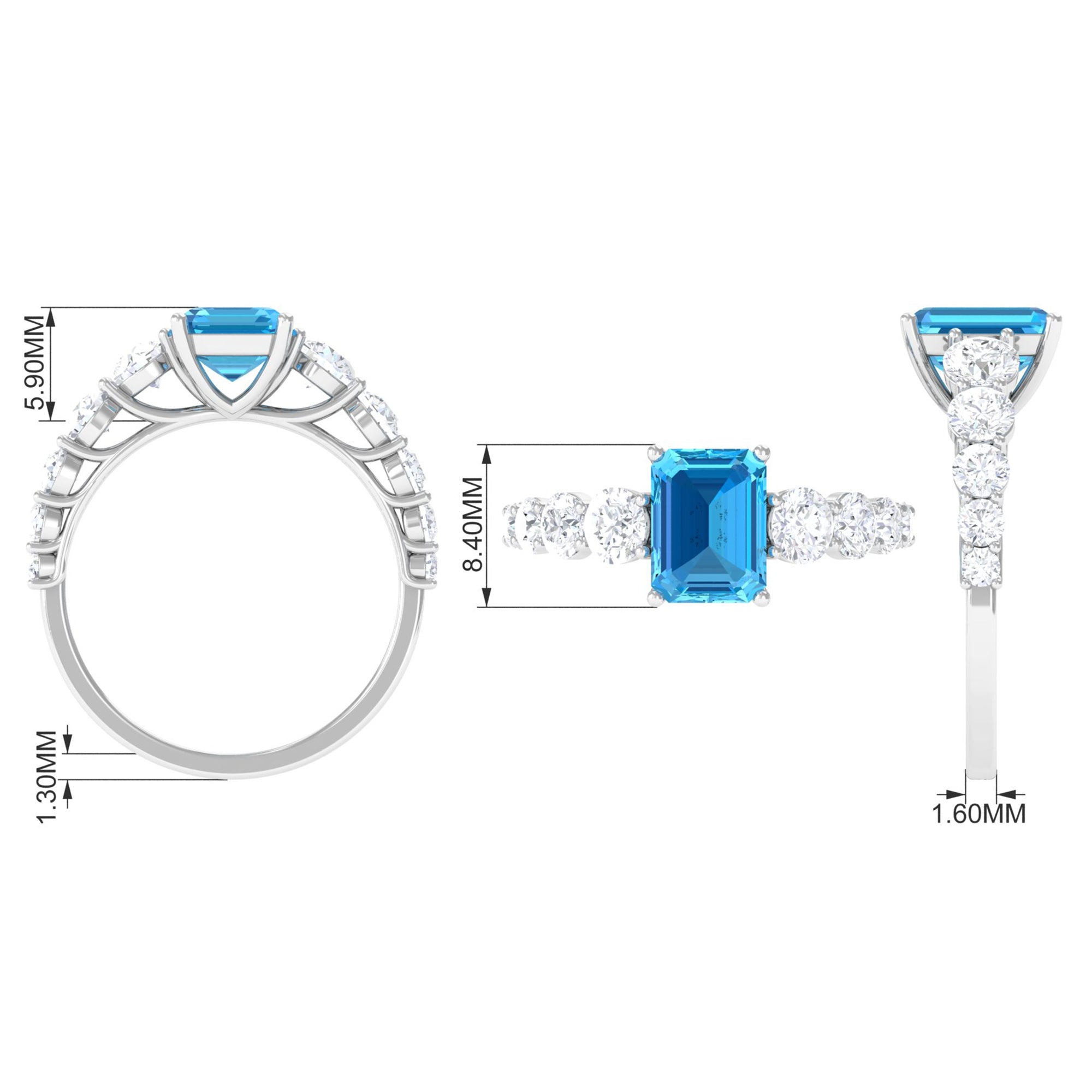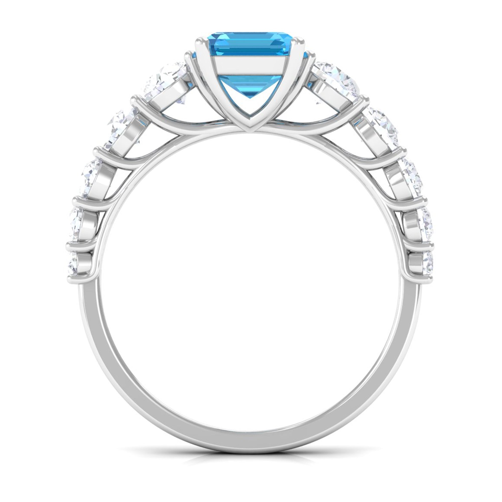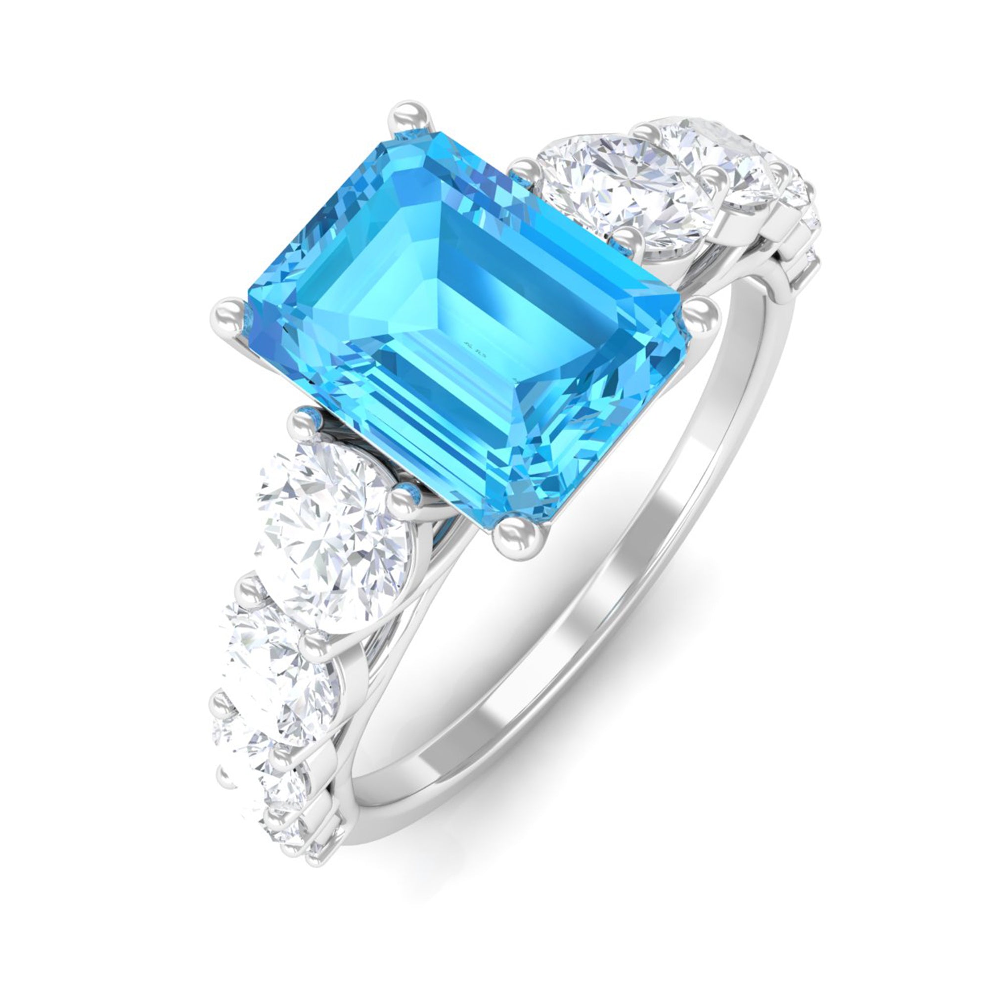 Octagon Cut Swiss Blue Topaz and Moissanite Side Stone Engagement Ring