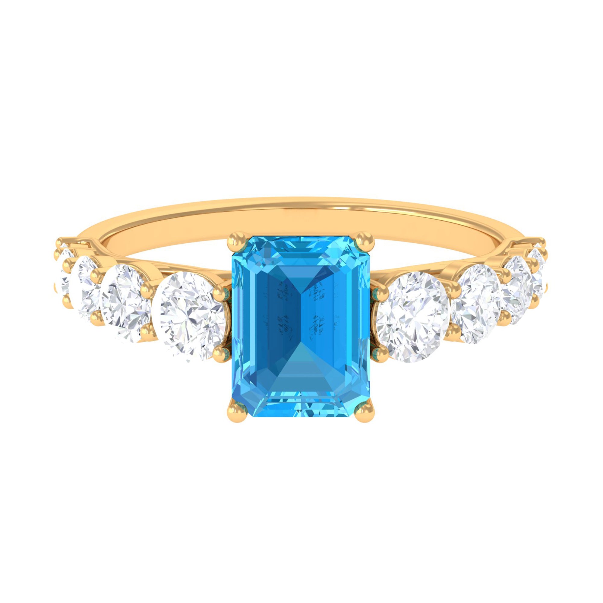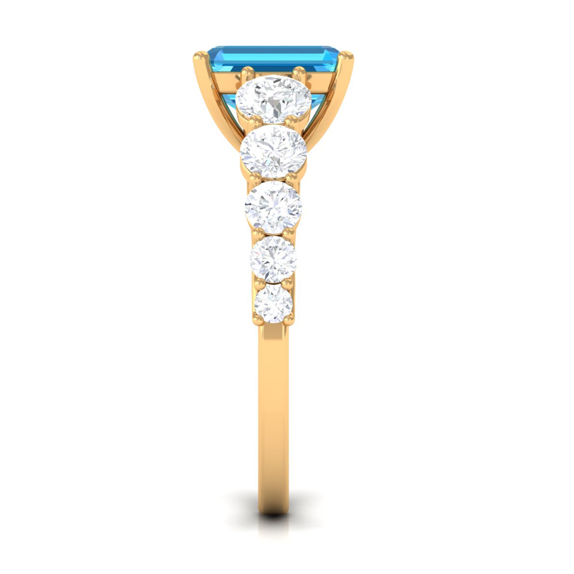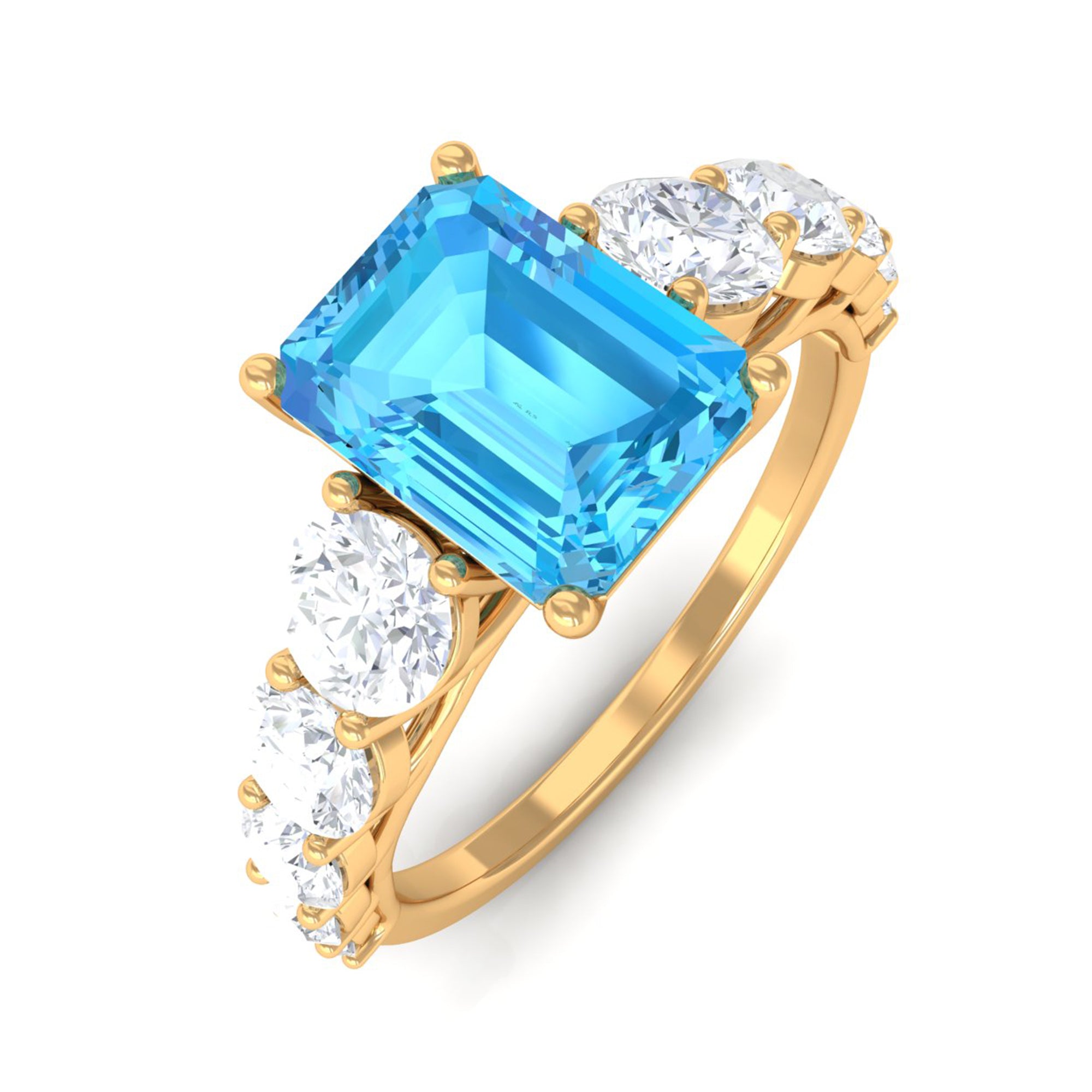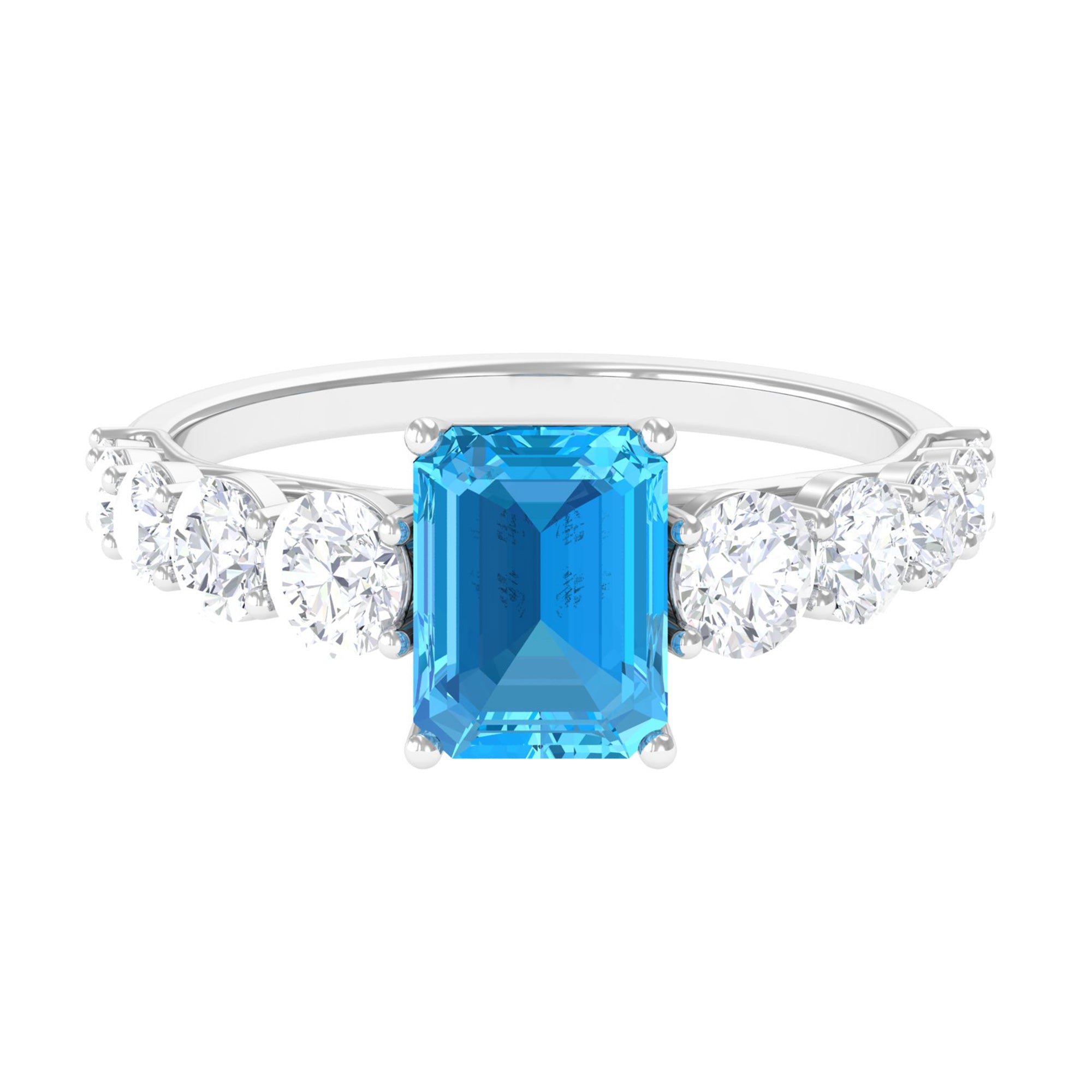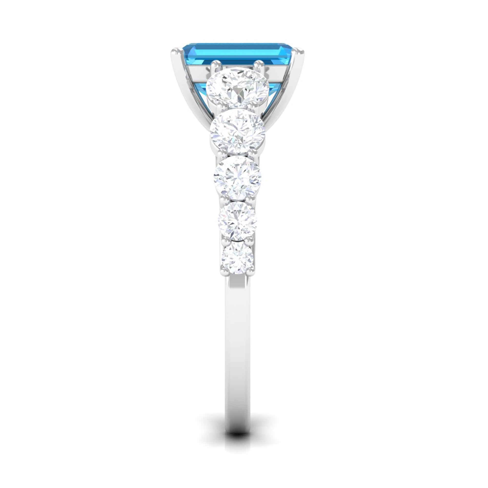 Octagon Cut Swiss Blue Topaz and Moissanite Side Stone Engagement Ring