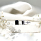 Sparkling with brilliance, these scintillating stud earrings feature an emerald-cut created black diamond set in a minimal prong setting, allowing light to radiate from every angle. The unadorned detailing on the sides adds to the elegant simplicity of the design. With screw-back backings, this contemporary yet timeless pair exudes a classic charm while retaining its modern sparkle.