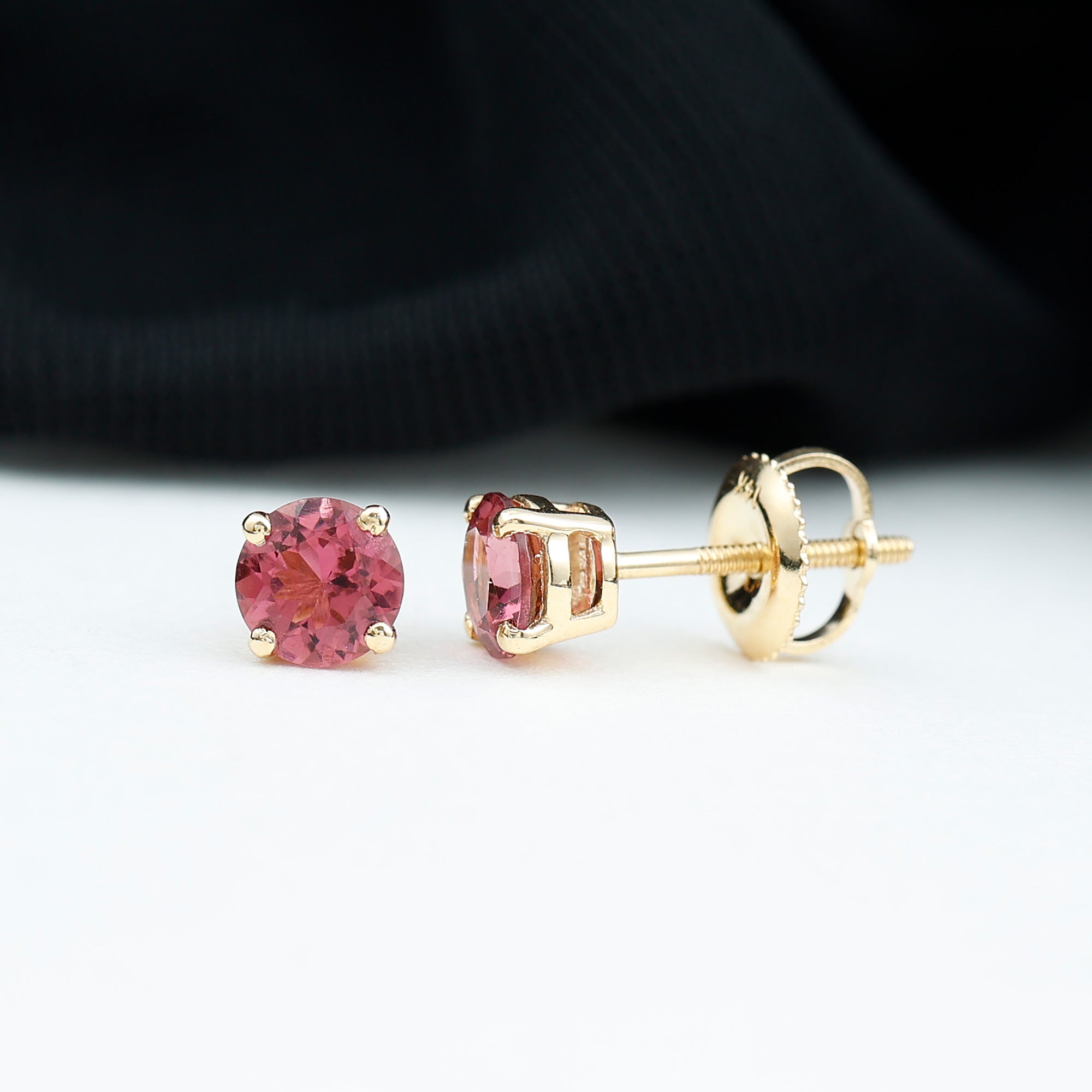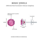 October Birthstone 1/2 CT Round Shape Pink Tourmaline Stud Earrings