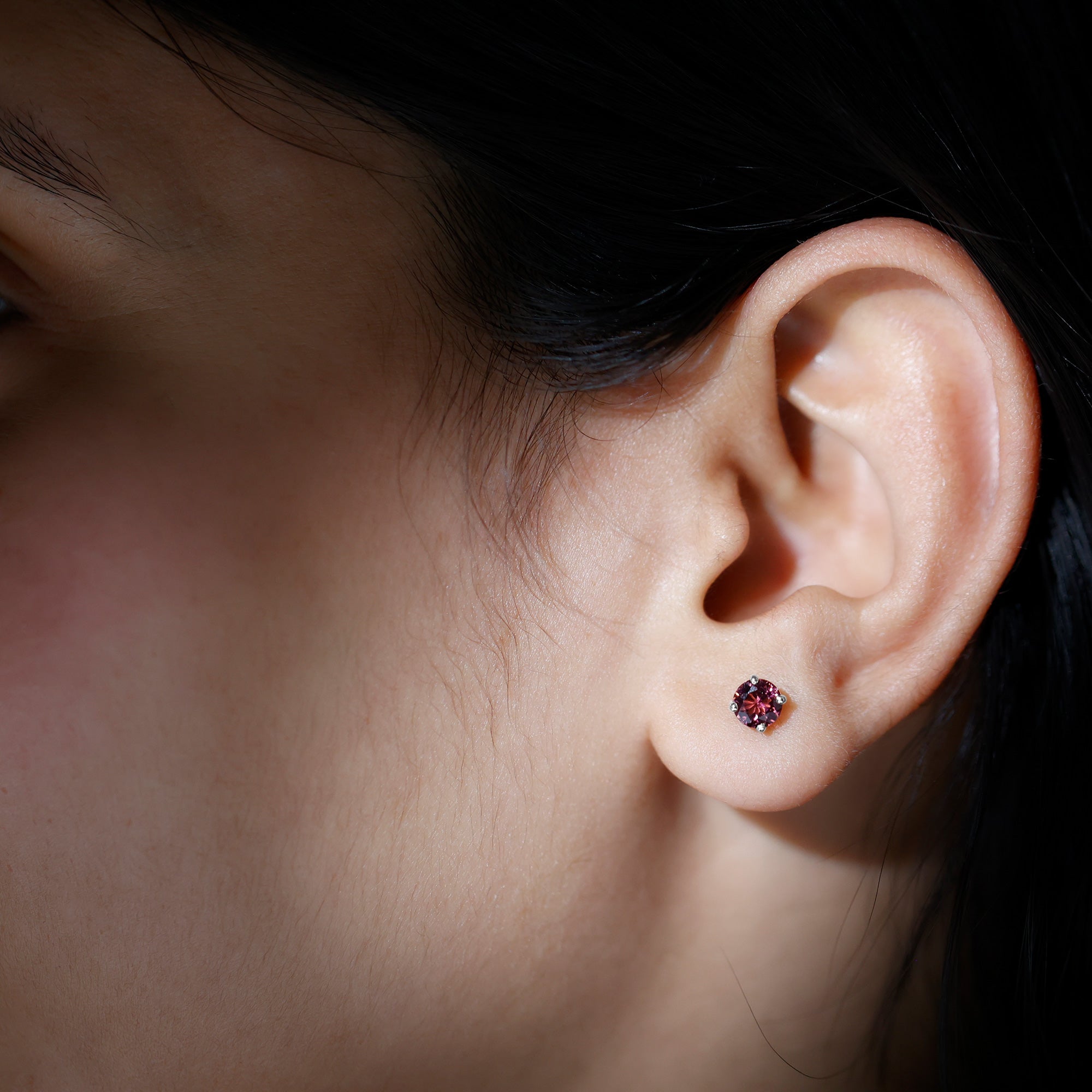 Look your best in these timeless and classic Stud Earrings featuring a 5 MM Round Cut Solitaire of Pink Tourmaline which adds to your look without any effort.