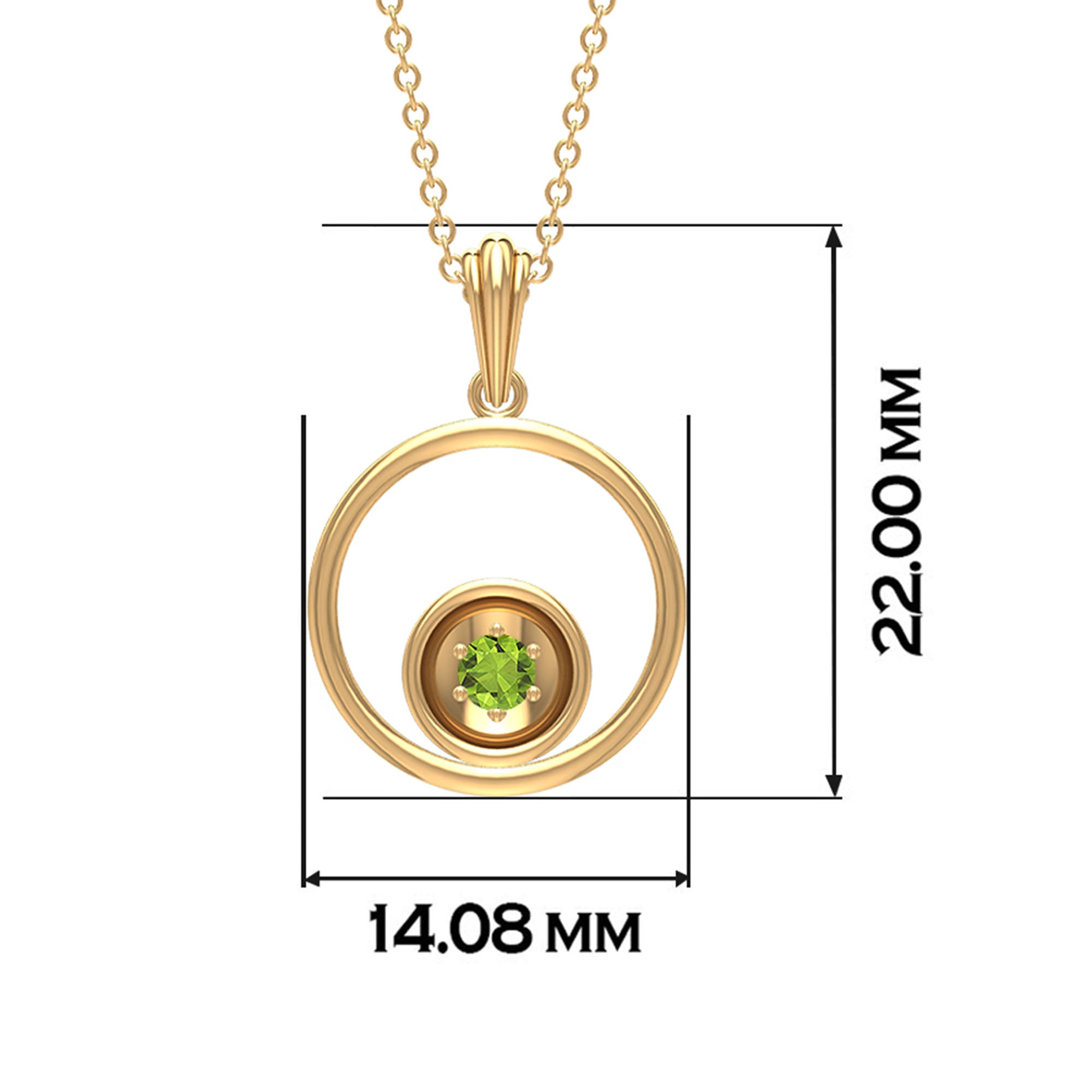 Set trends by wearing this Open Circle Pendant featuring Round Cut Peridot adorned in Solid Gold.