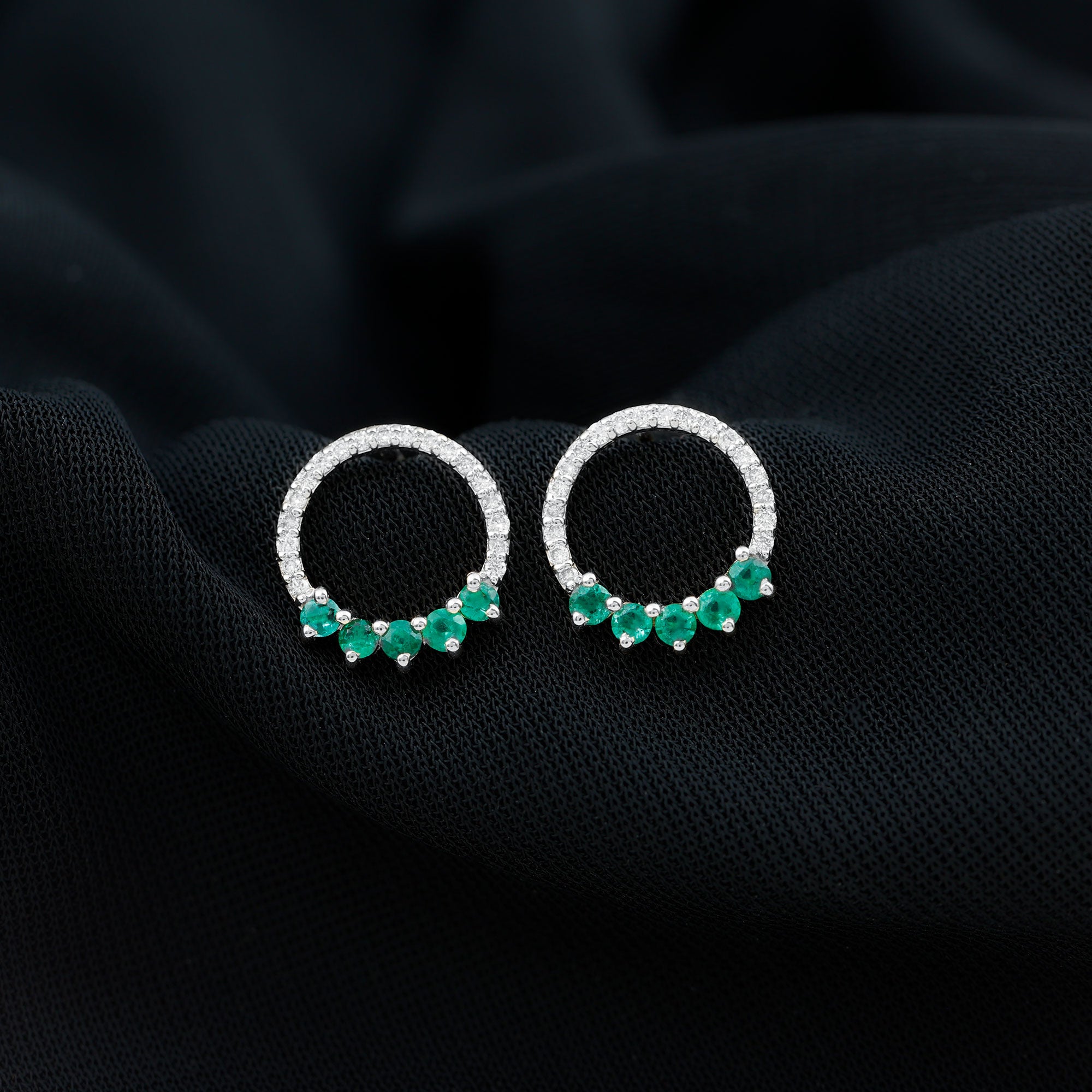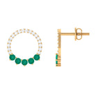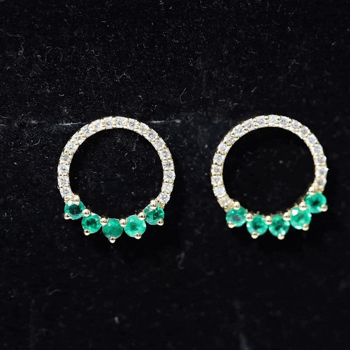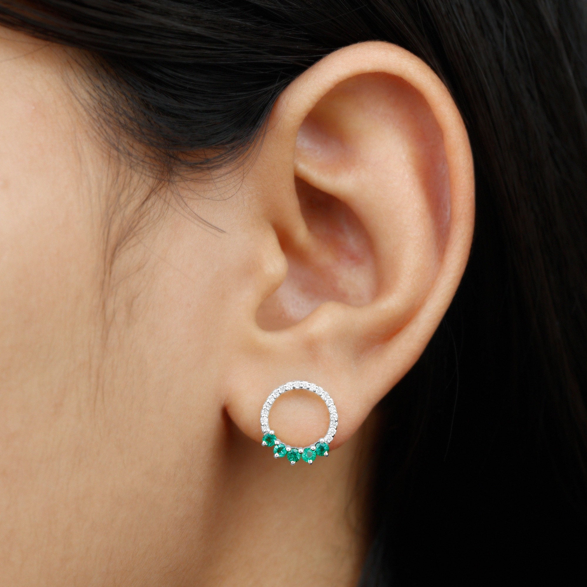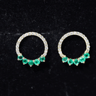 Open Circle Stud Earrings with Emerald and Diamond