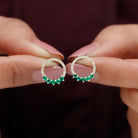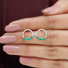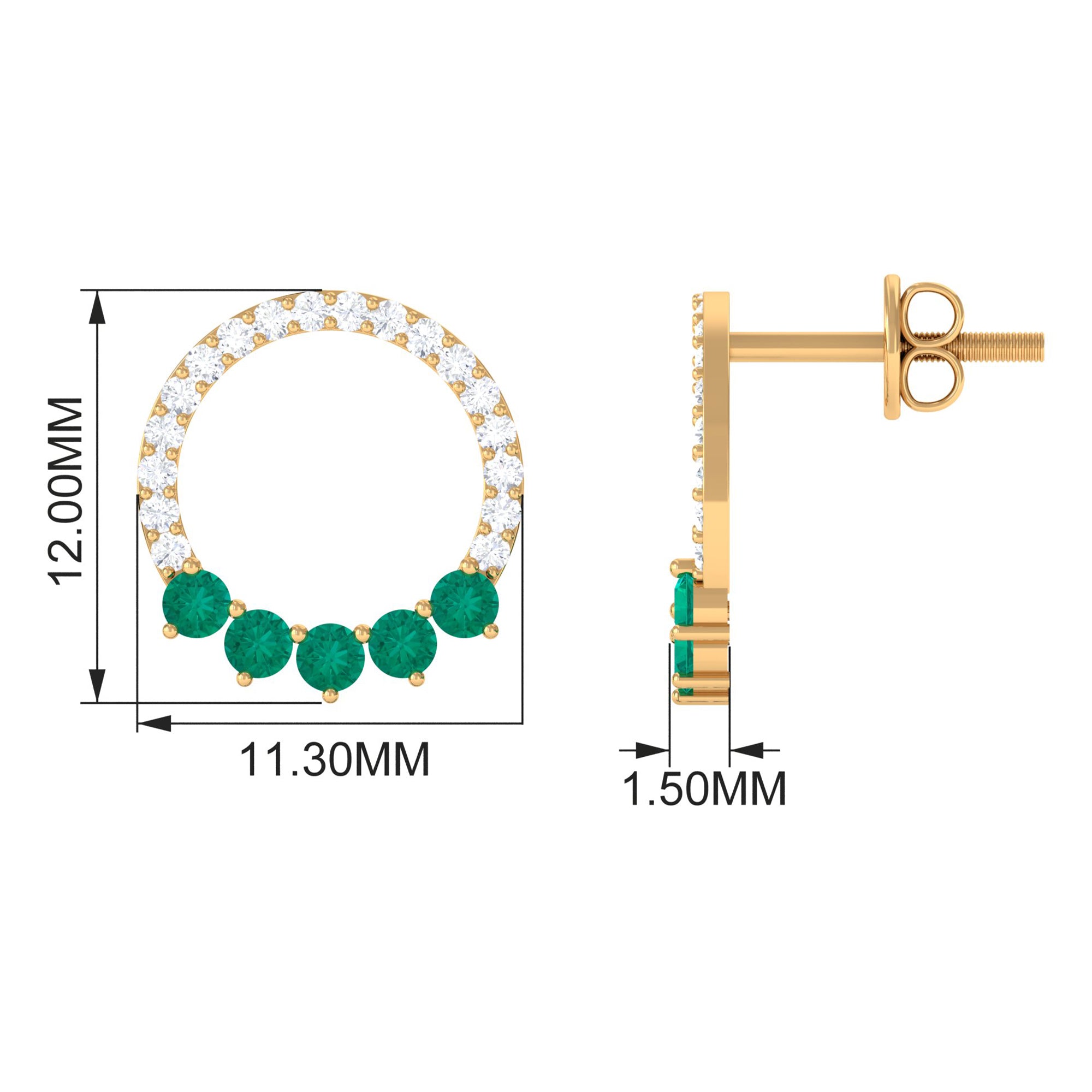 Elevate your elegance with our Open Circle Stud Earrings, adorned with petite Round Shape Emerald Gemstones and Diamonds. These exquisite earrings effortlessly combine the allure of emeralds with the brilliance of diamonds, creating a captivating accessory that adds a touch of sophistication to any ensemble.
