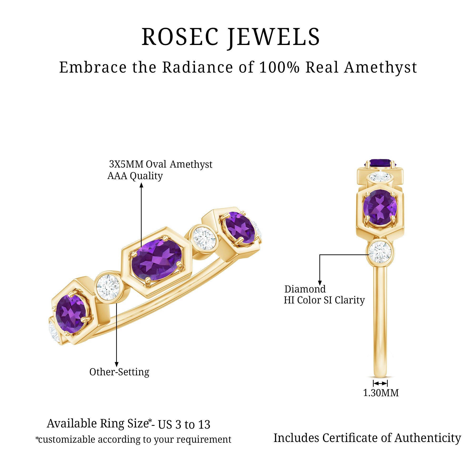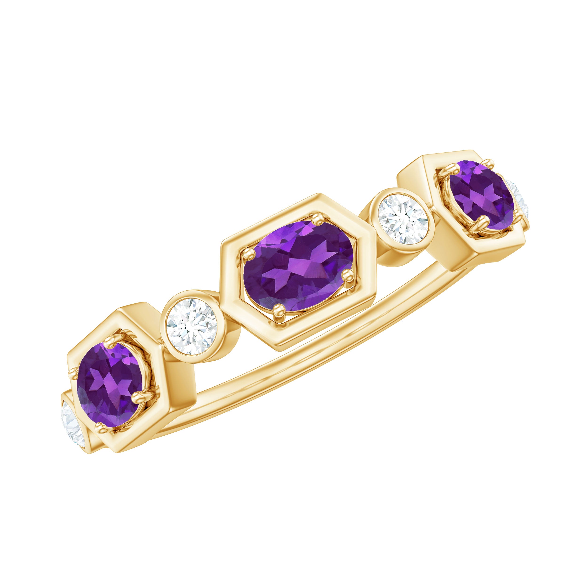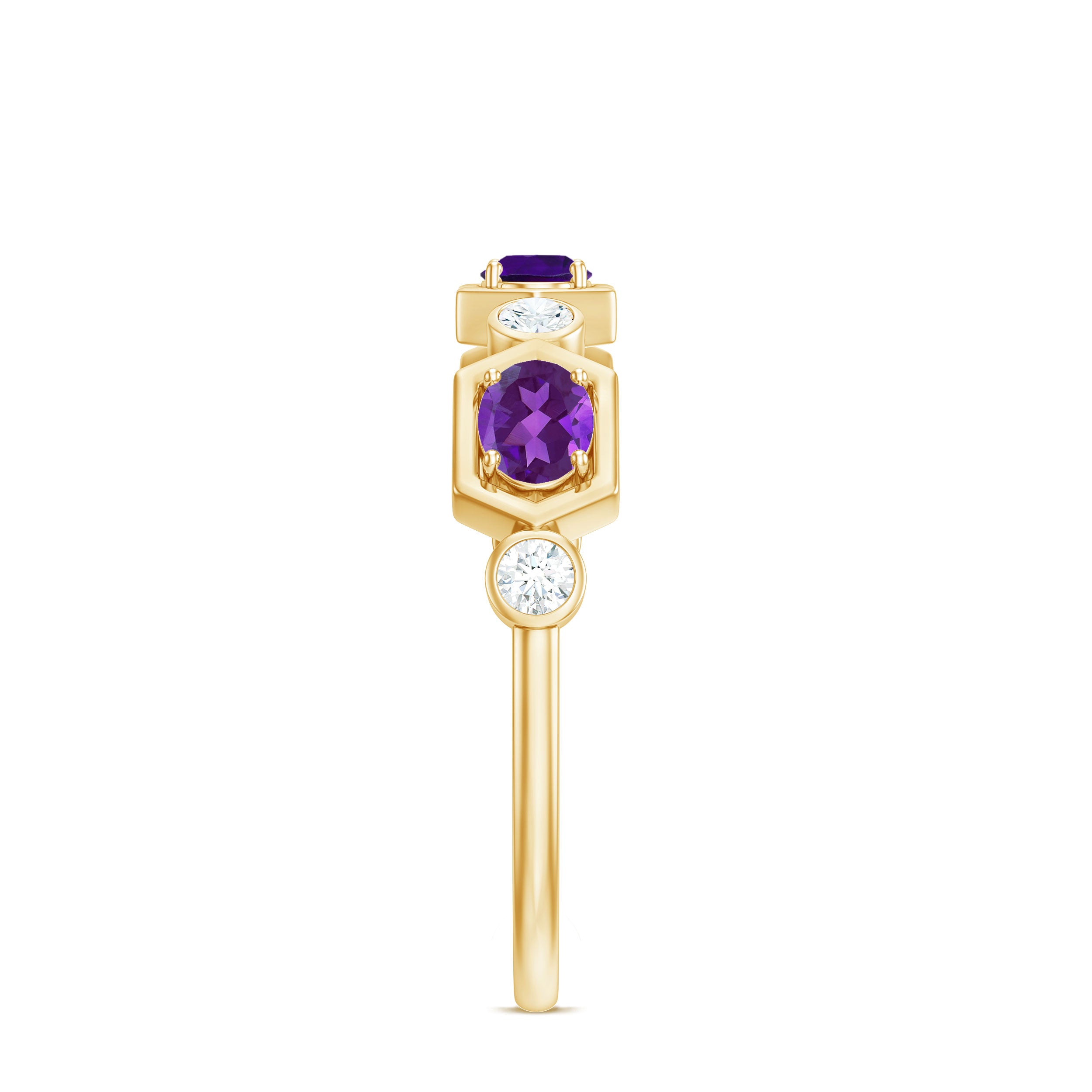 Exude timeless charm with the Classic Half Eternity Ring. Brilliant Amethyst and sparkling Diamond unite in a harmonious symbol of enduring beauty.