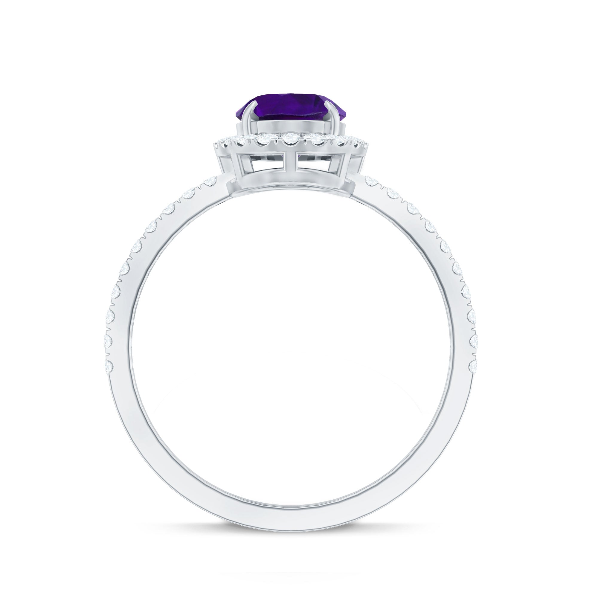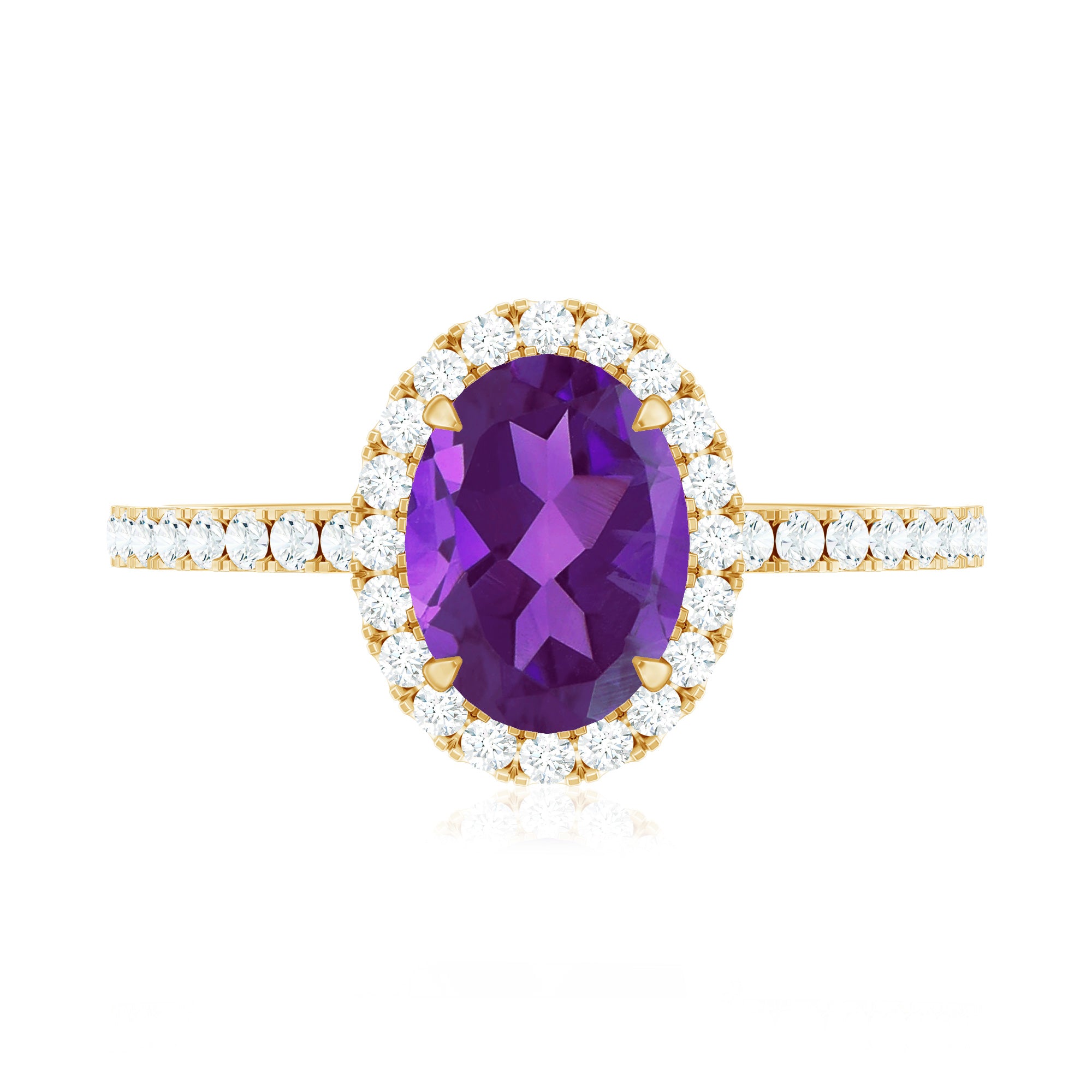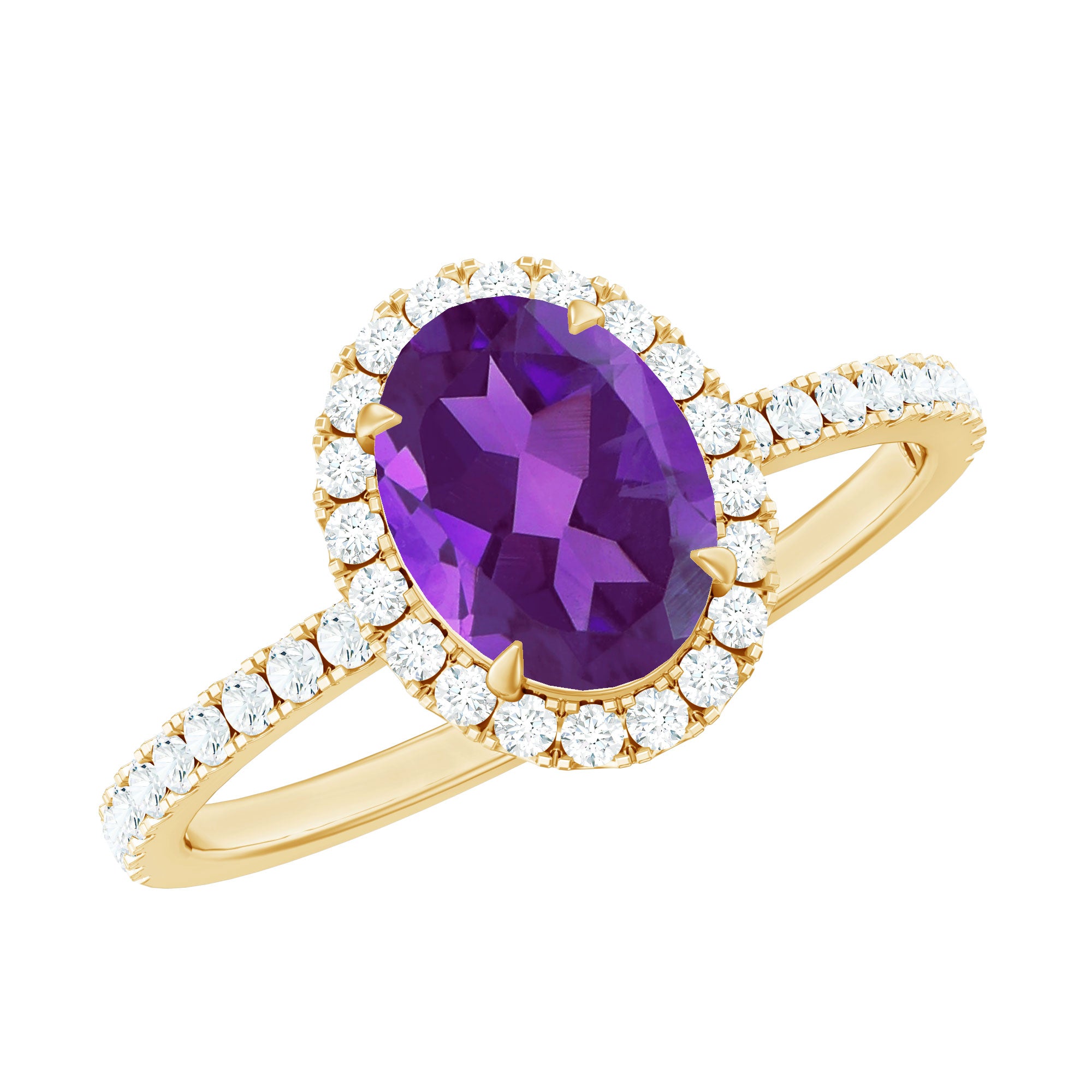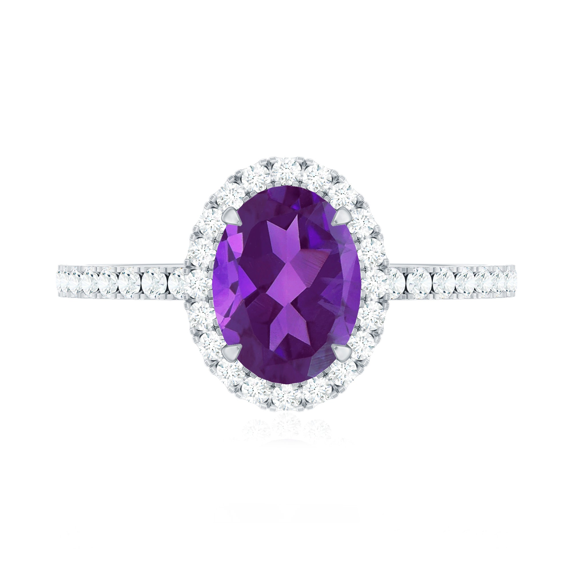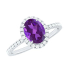 Oval Amethyst Halo Engagement Ring with Diamond