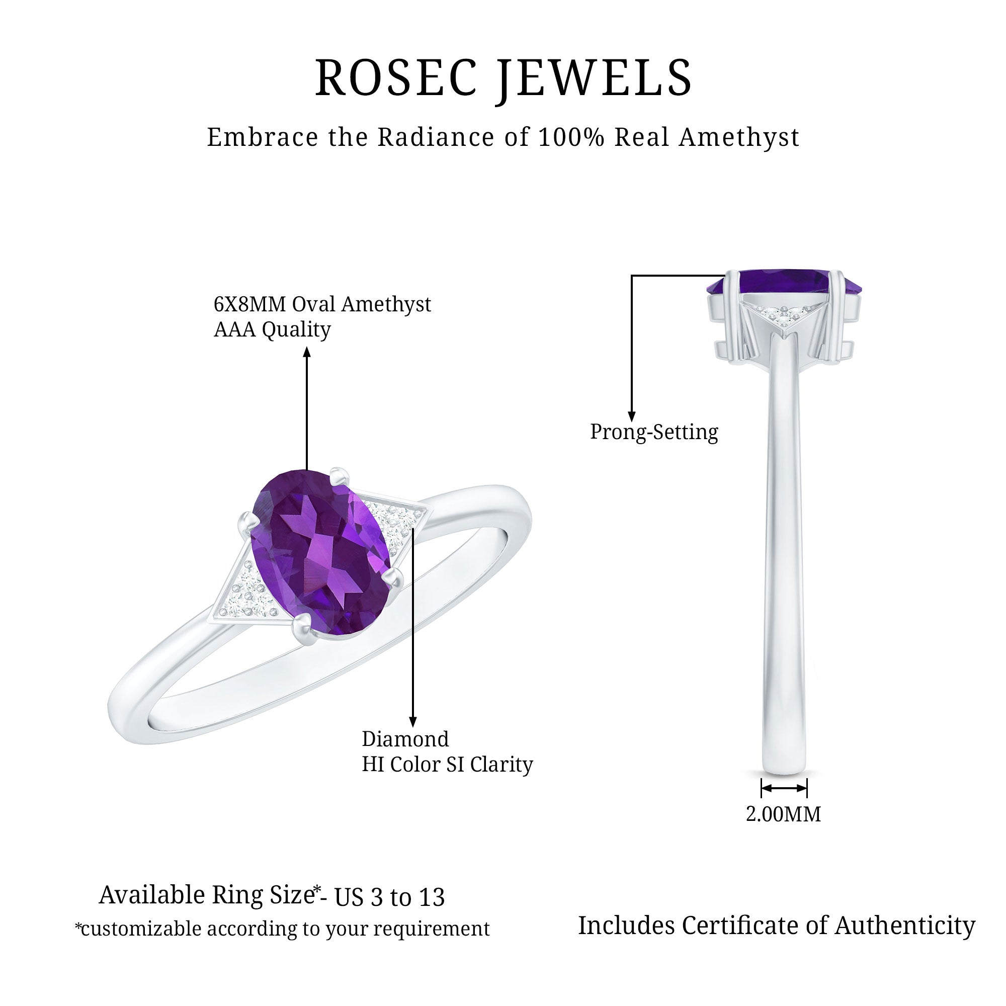 Oval Amethyst Solitaire Engagement Ring with Diamond Accent