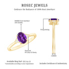 Indulge in your individuality with the elegant Amethyst Engagement Ring, crafted to be as distinctive as you are. With its 6X8 MM Oval Cut Amethyst in a secure Prong Setting, accompanied by a Round Diamond on a Solitaire Ring, this piece is the perfect addition to your everyday wardrobe. The Vintage Solitaire Amethyst Ring offers a timeless design with contemporary elements. This stunning ring boasts a total weight of 1.25 Carat with AAA Quality, and all of our gemstones undergo rigorous certification and quality checks.