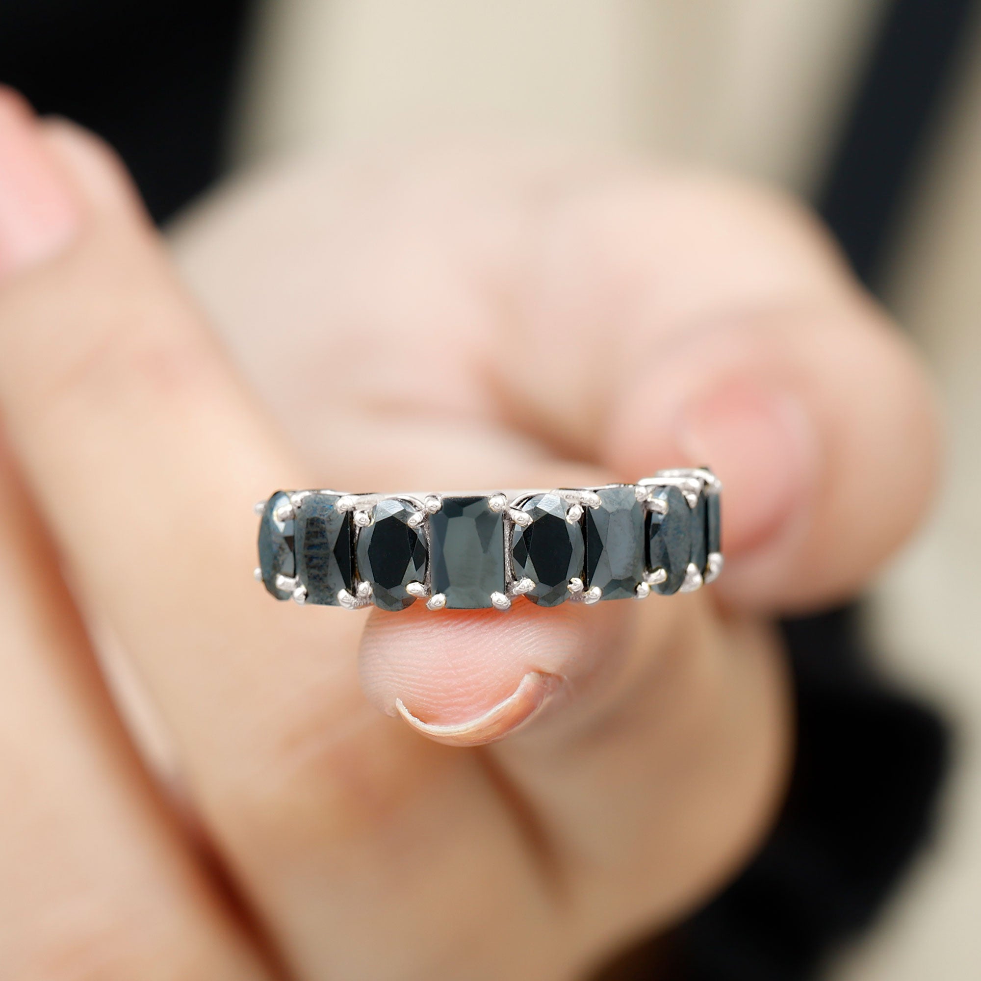 Oval and Emerald Cut Black Onyx Half Eternity Wedding Band