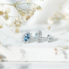 Oval Aquamarine and Diamond Halo Stud Earrings in Silver