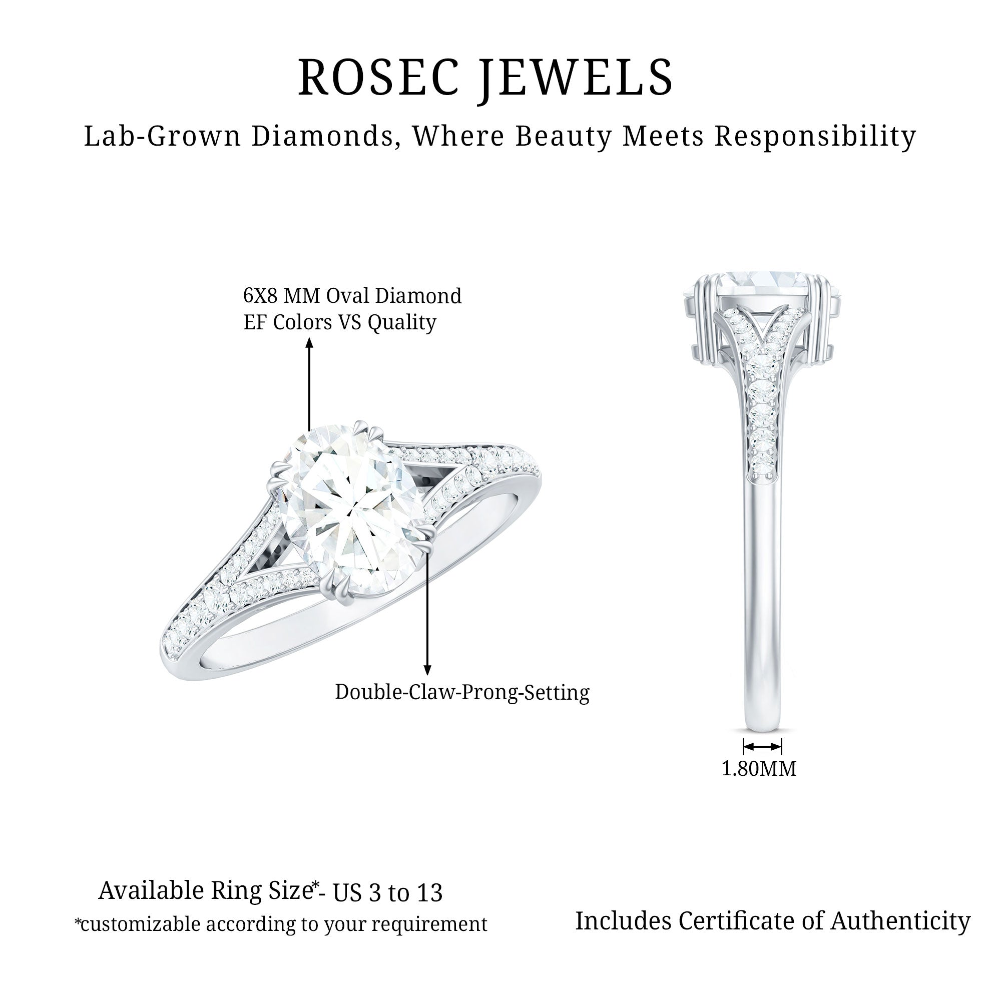 Oval Brilliant Cut Lab Diamond Engagement Ring with Split Shank