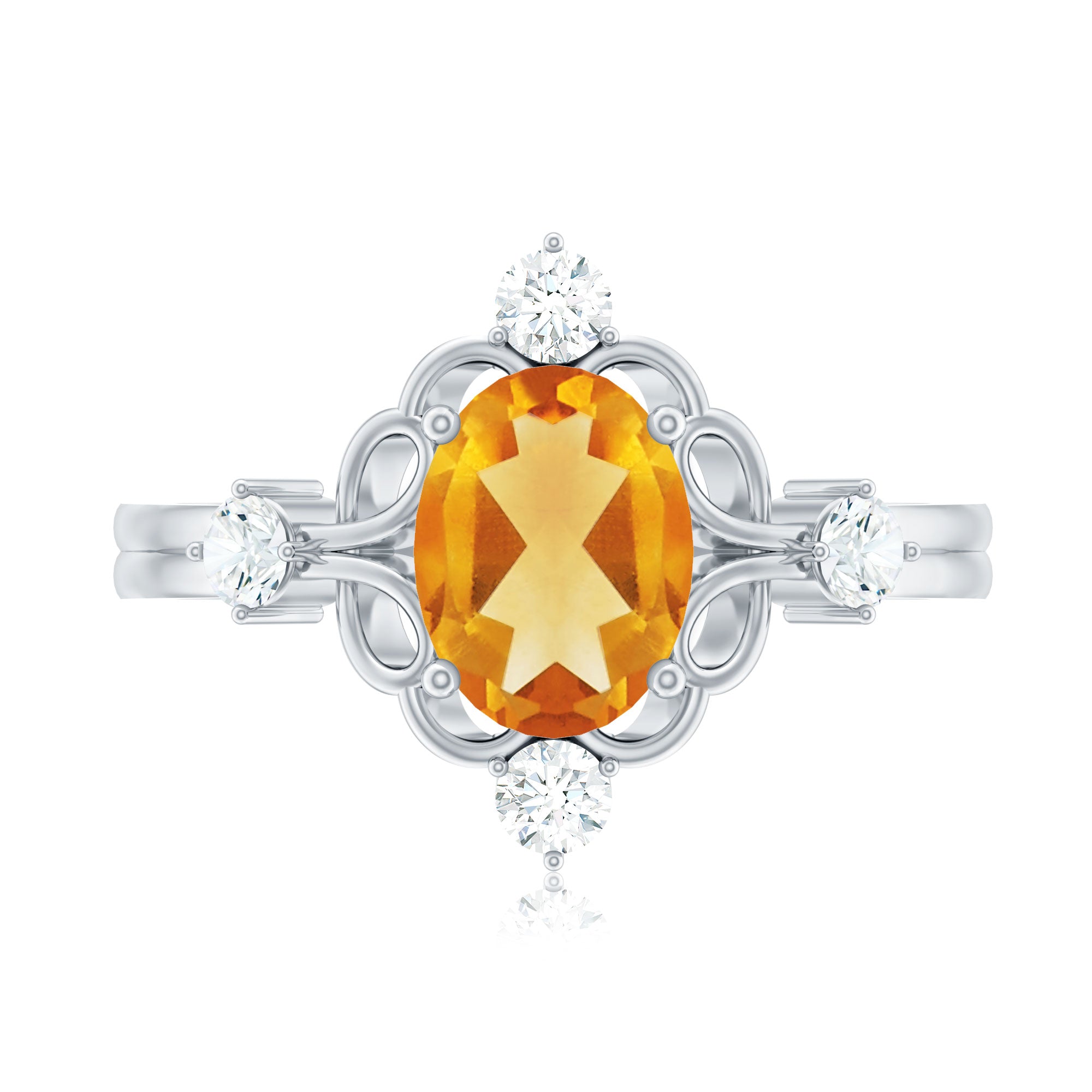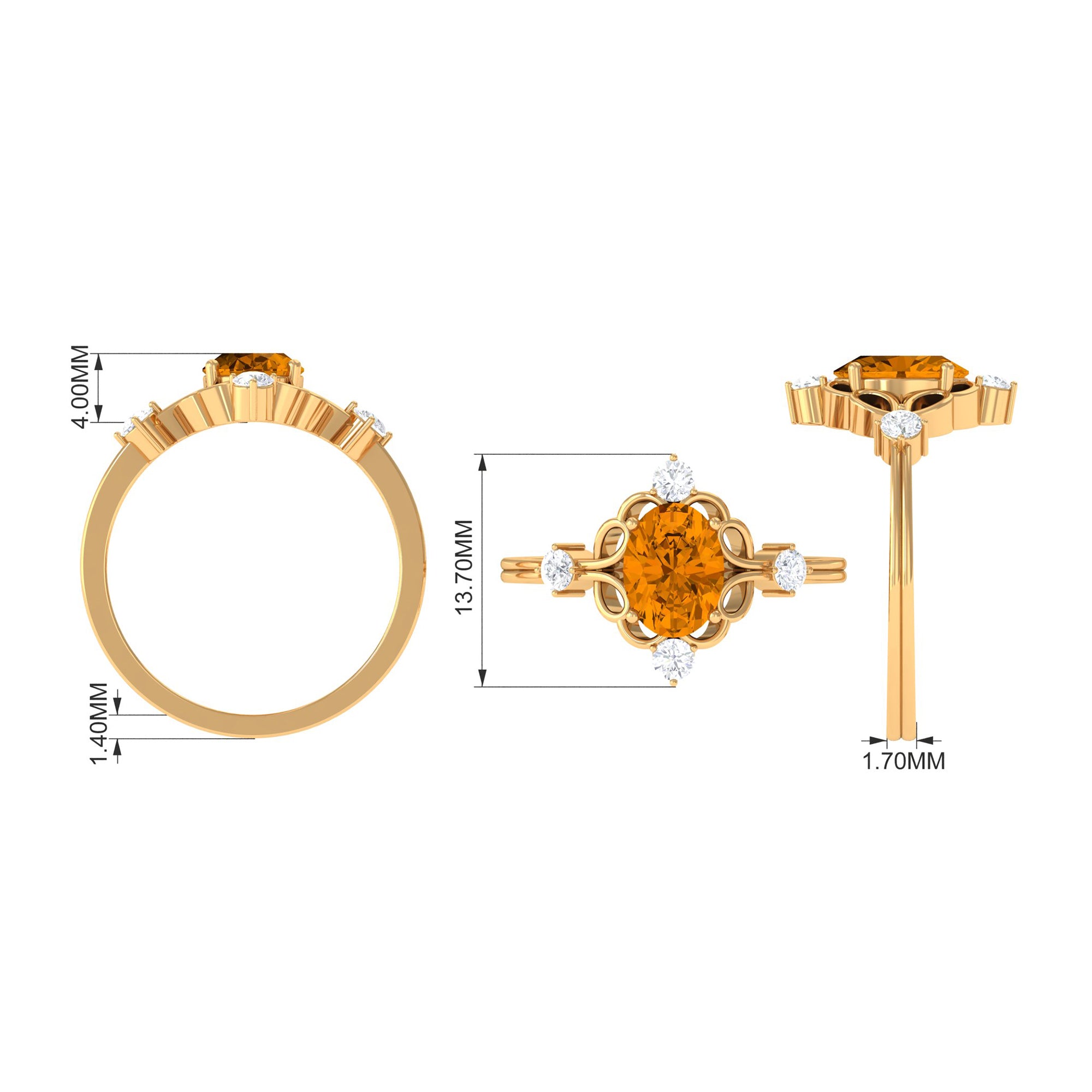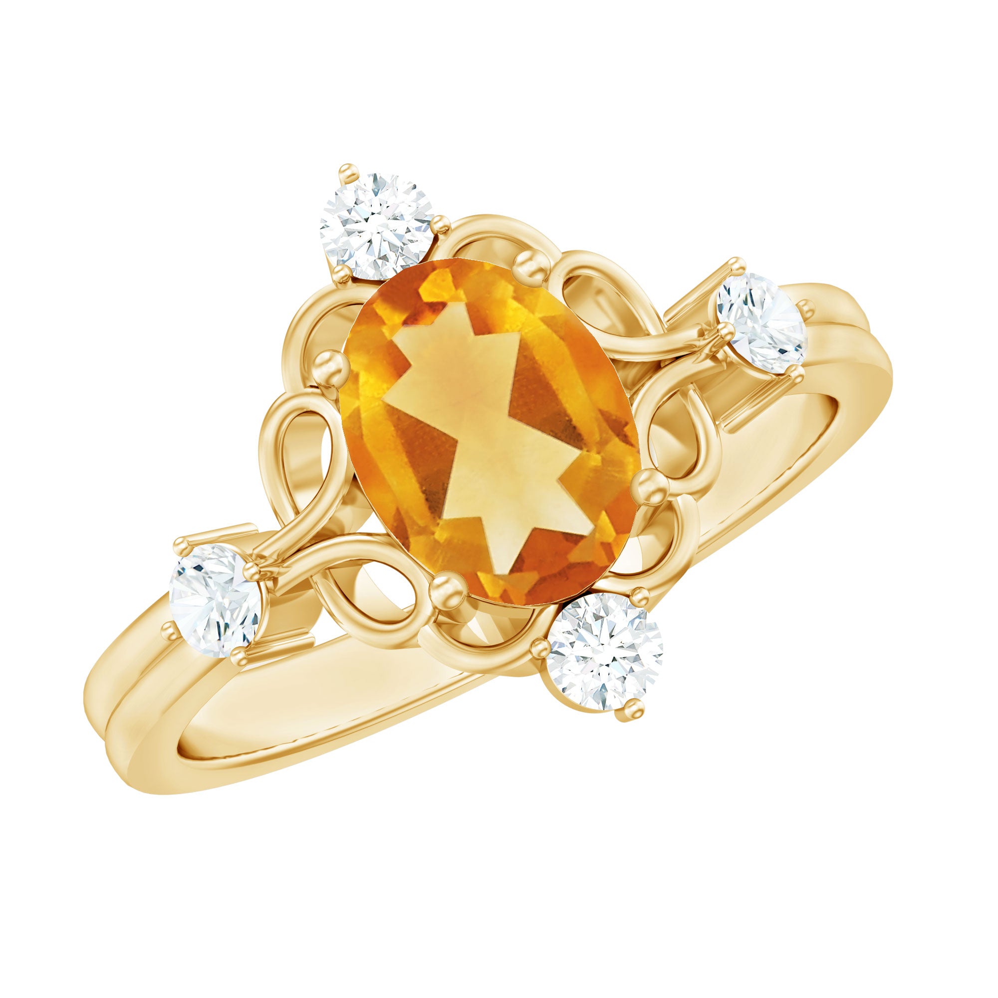 The luscious shank is set with a central oval citrine that is complemented with traditional detailing and round Diamond for added radiance. The citrine is held in place with prongs, adding a timeless appeal to this gorgeous cocktail ring. If you are keen on classic solitaire that has a touch of modernity, this oval cocktail ring will not disappoint.