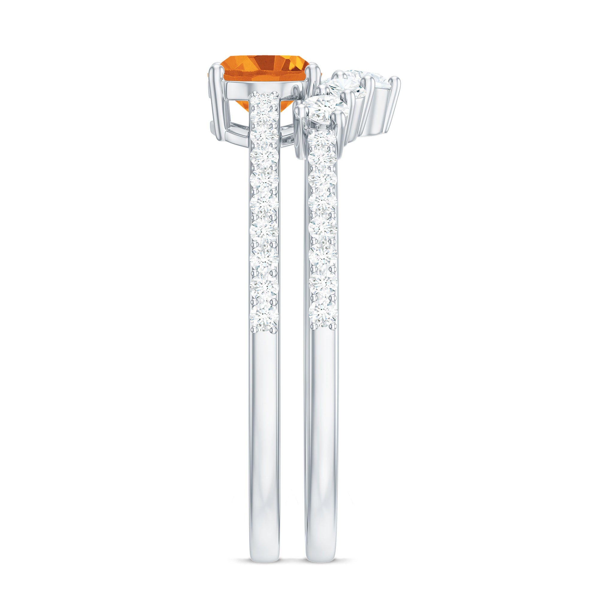 Oval Citrine East West Wedding Ring Set with Moissanite