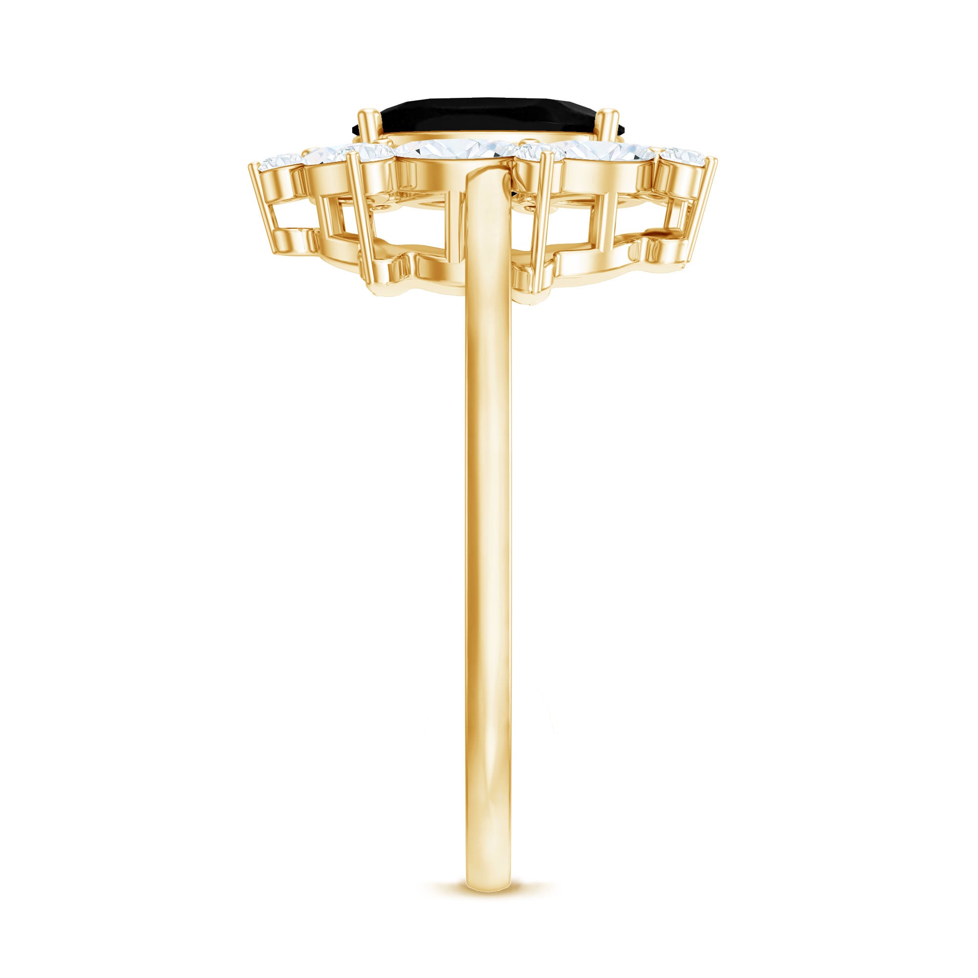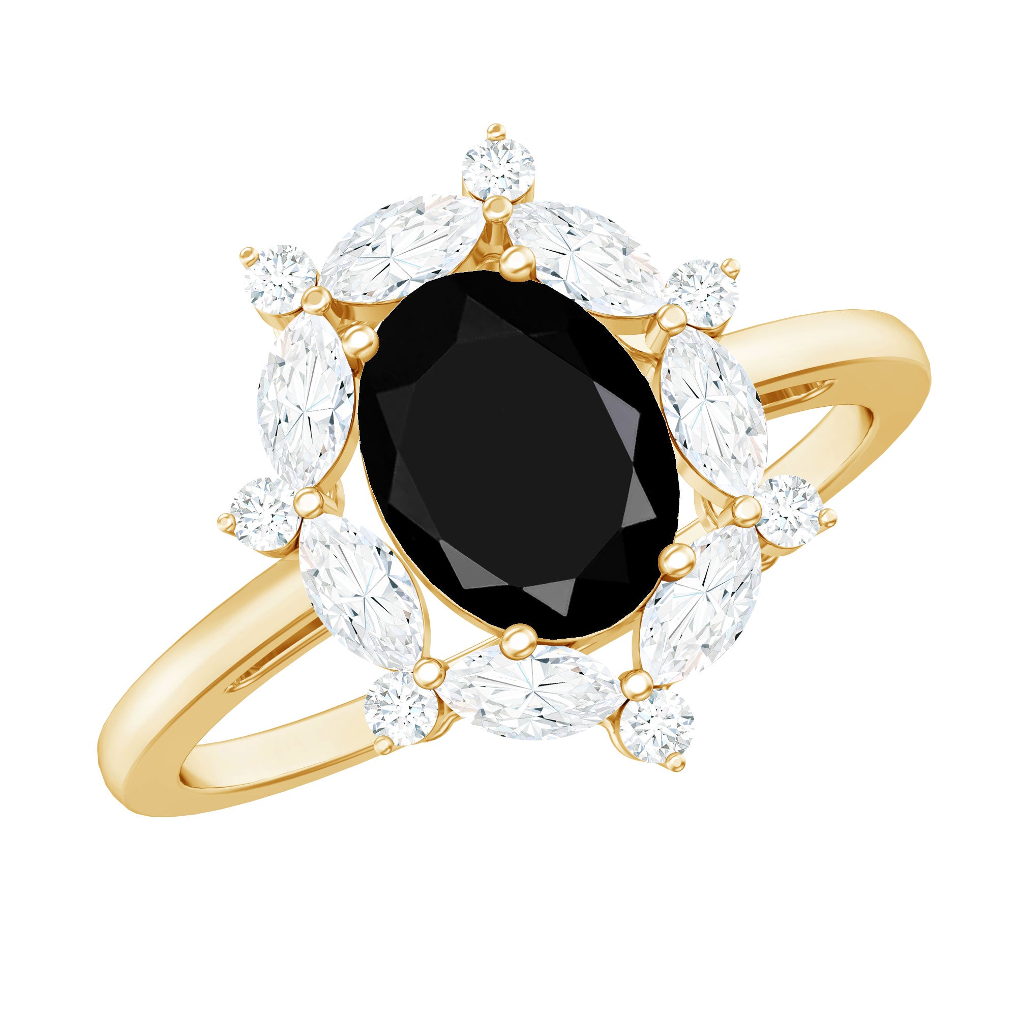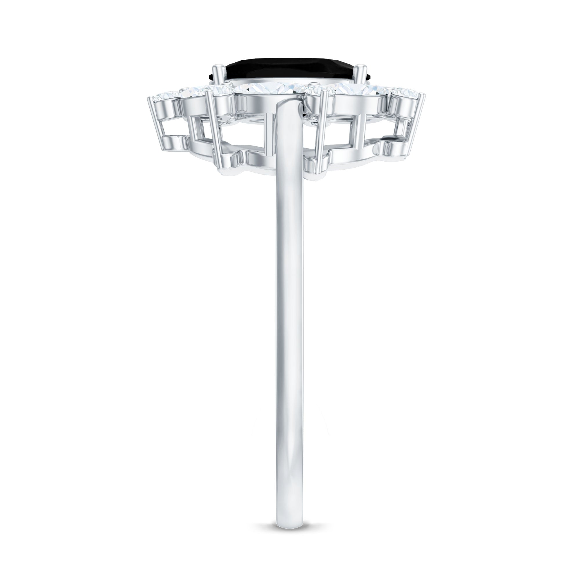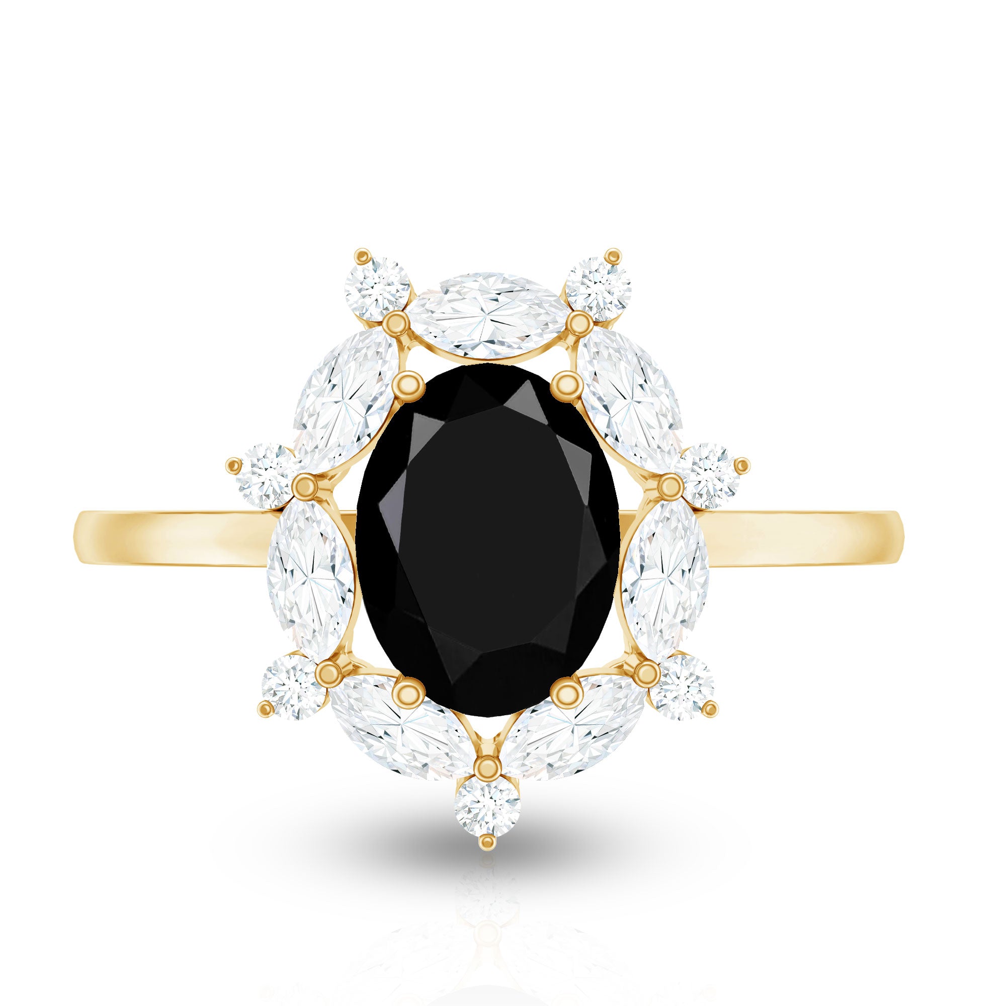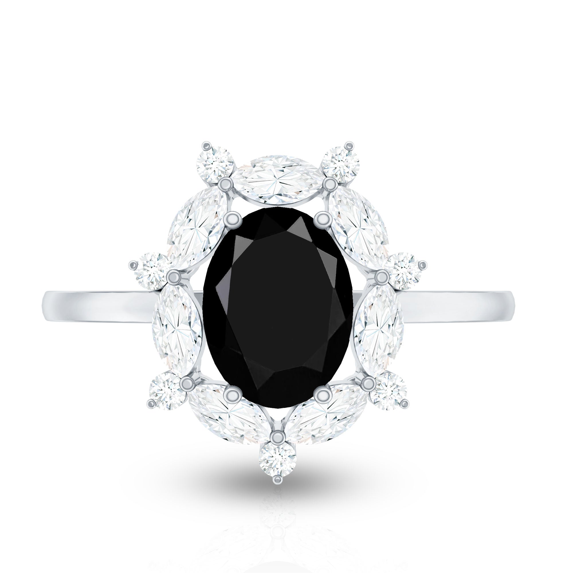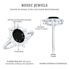 Crafted with love, this Halo Engagement Ring showcases an Oval Cut Lab Created Black Diamond secured in Prong Setting while Marquise and Round Shape Moissanite studded as Halo. You can present this charming Created Black Diamond Ring Set to your special one as a Birthday Gift or Anniversary Gift, she will definitely love it.