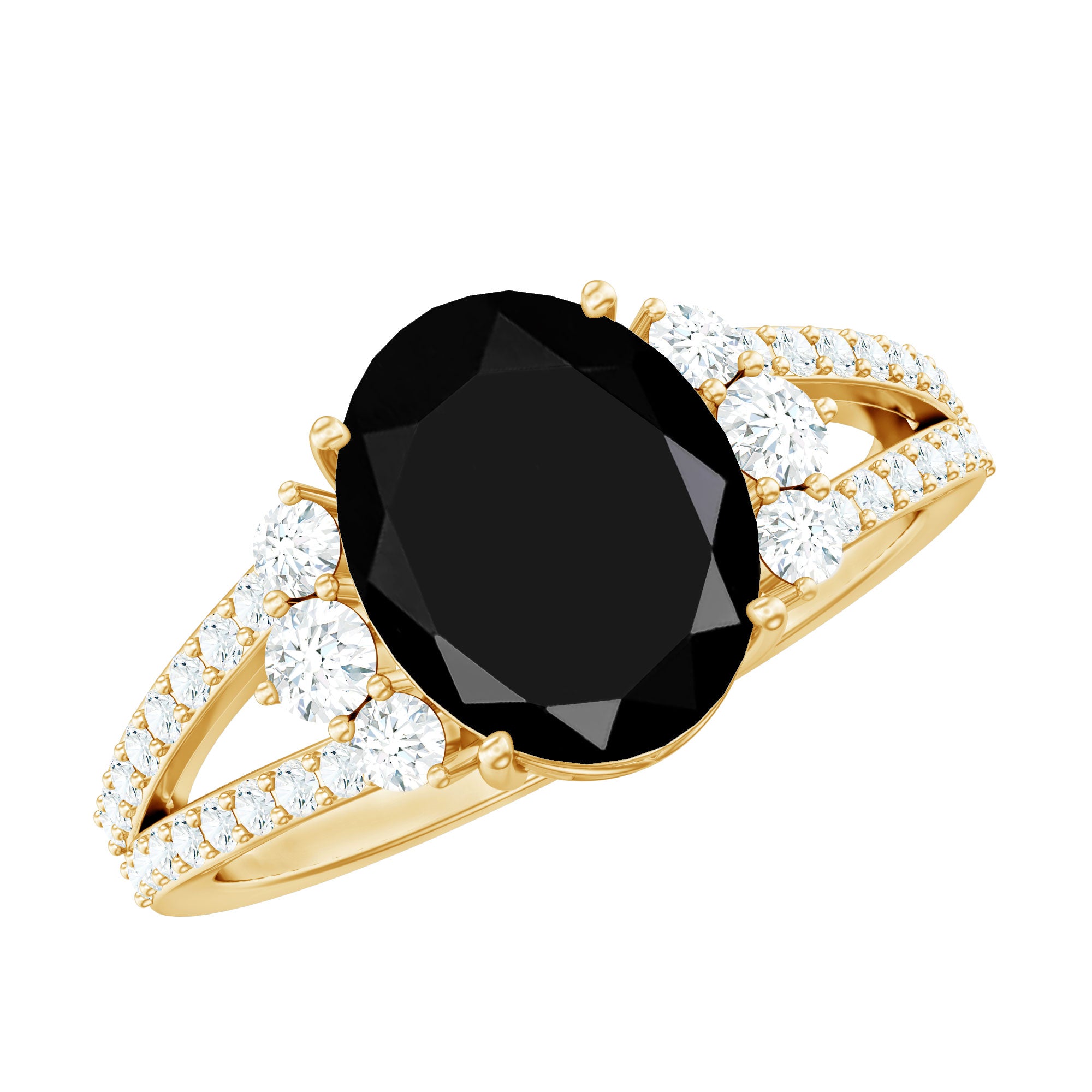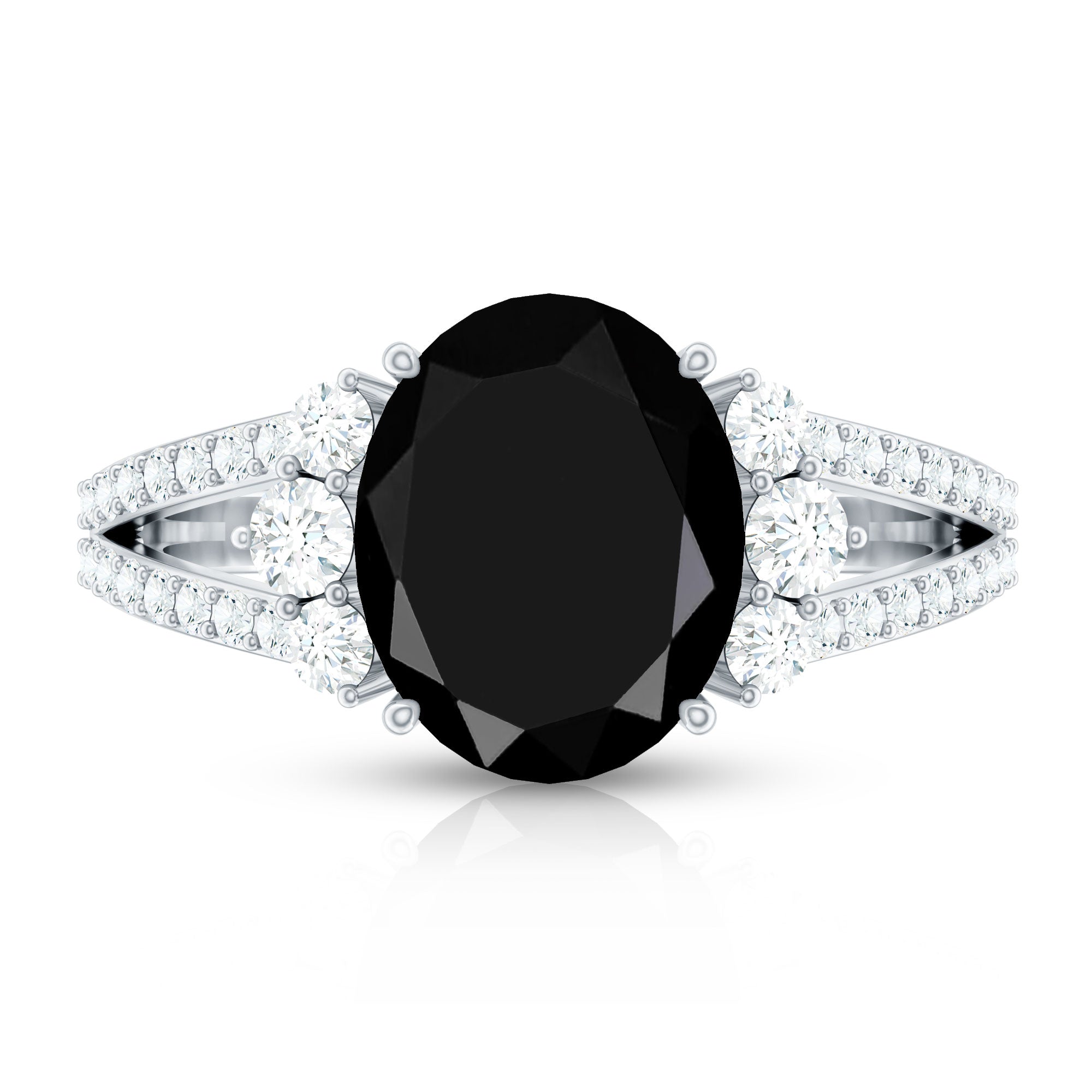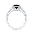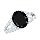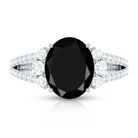 Oval Created Black Diamond Engagement Ring with Diamond Split Shank