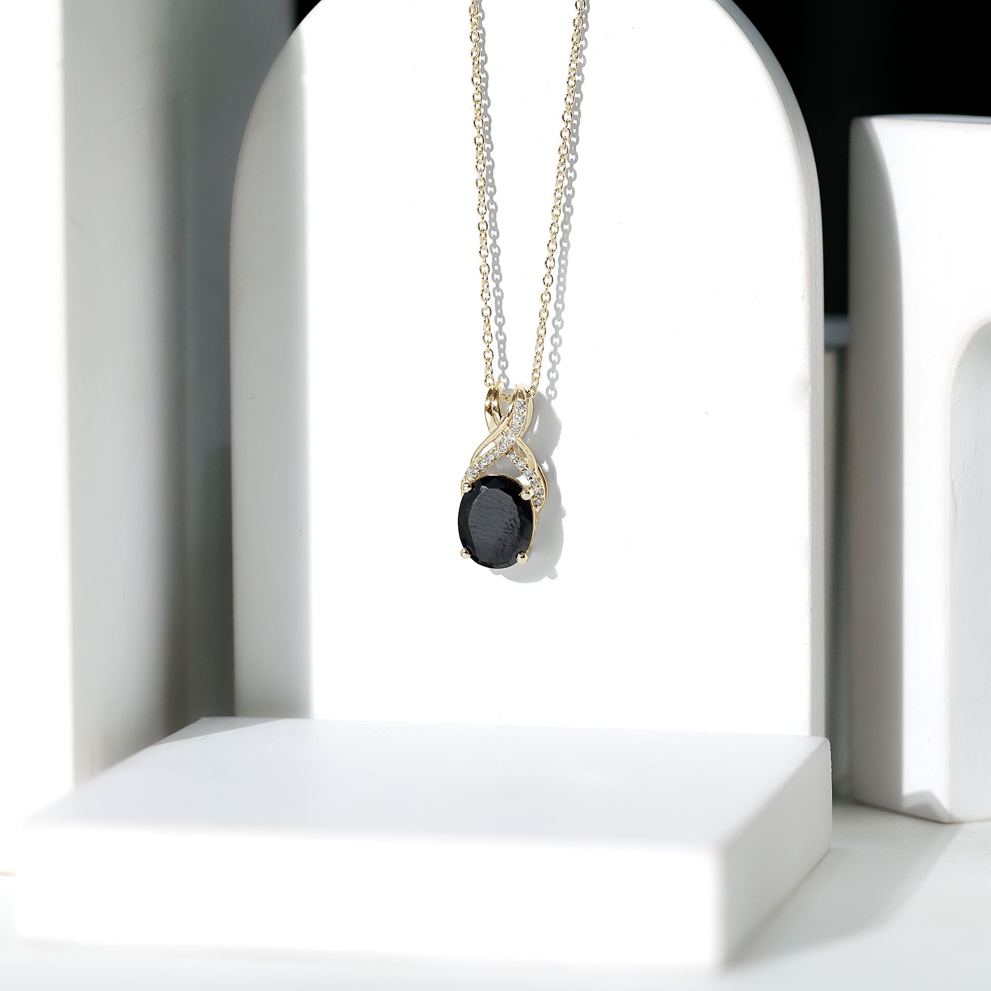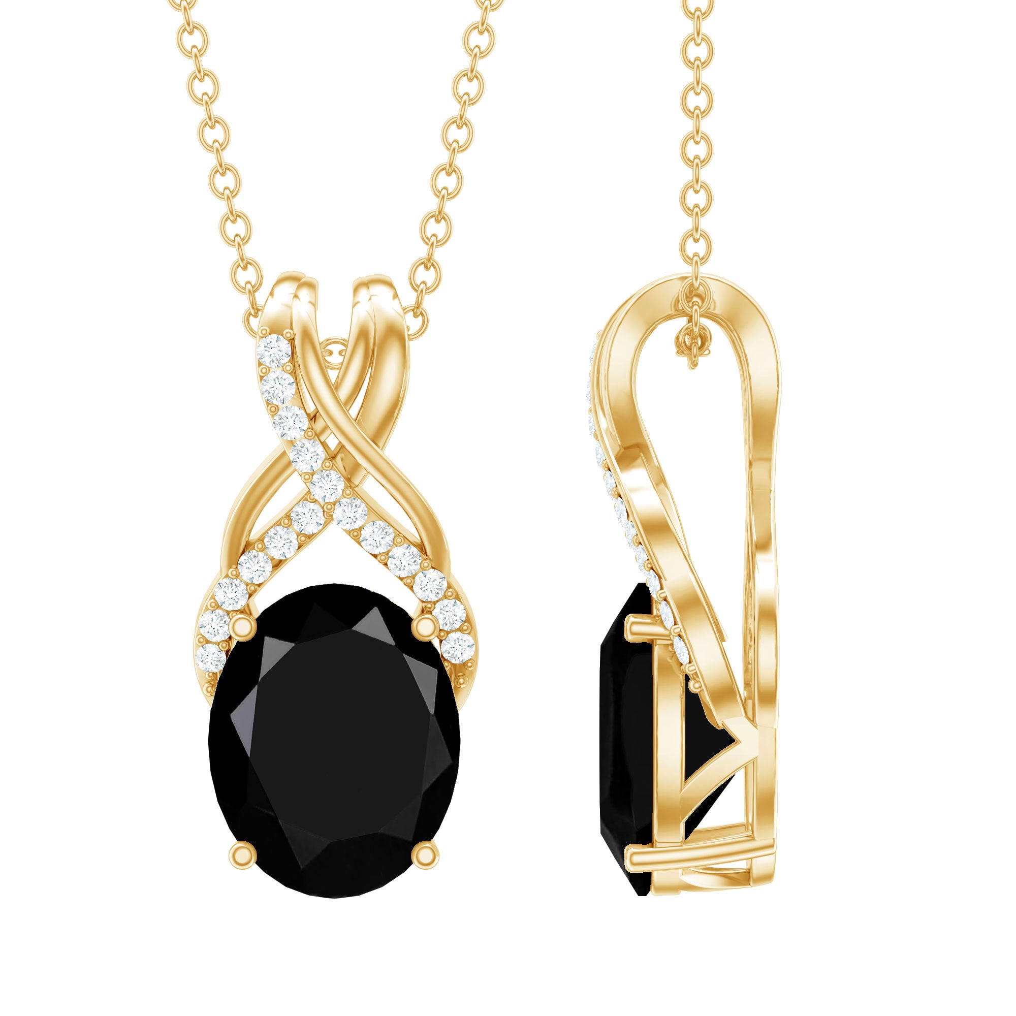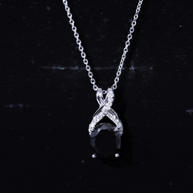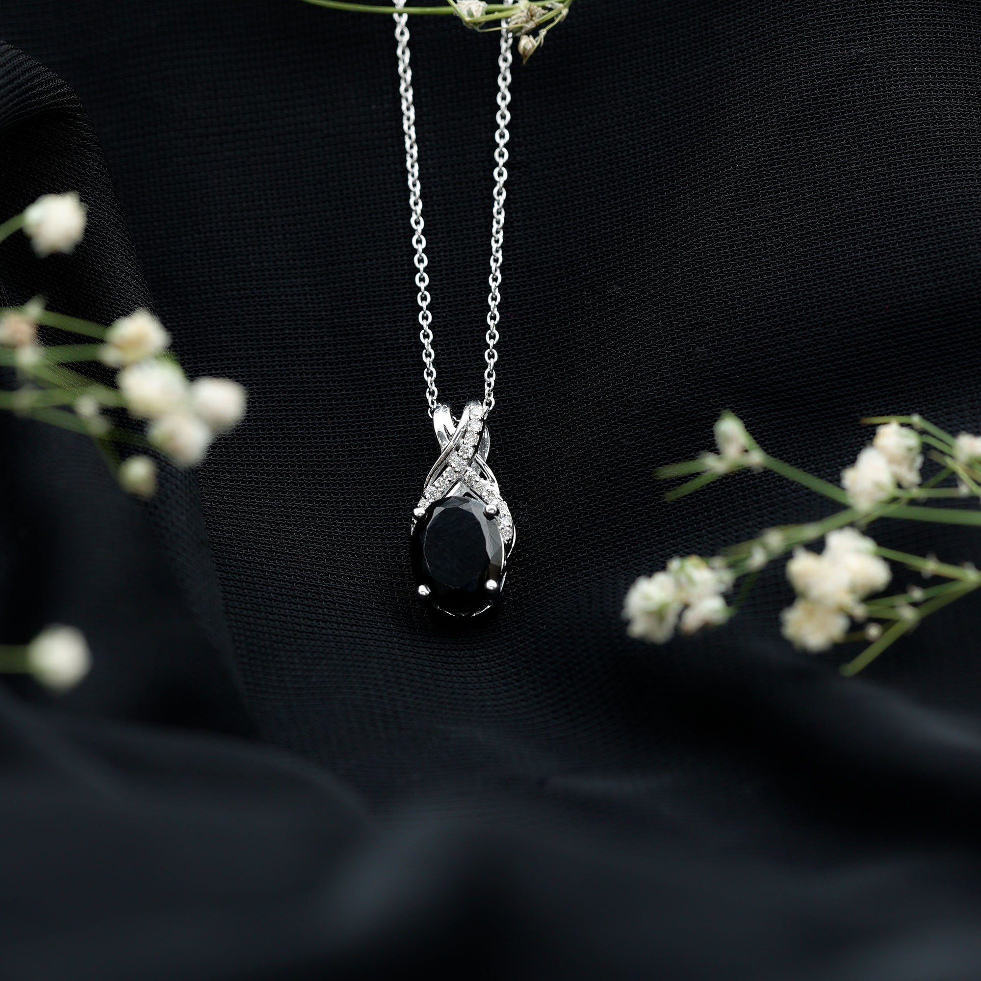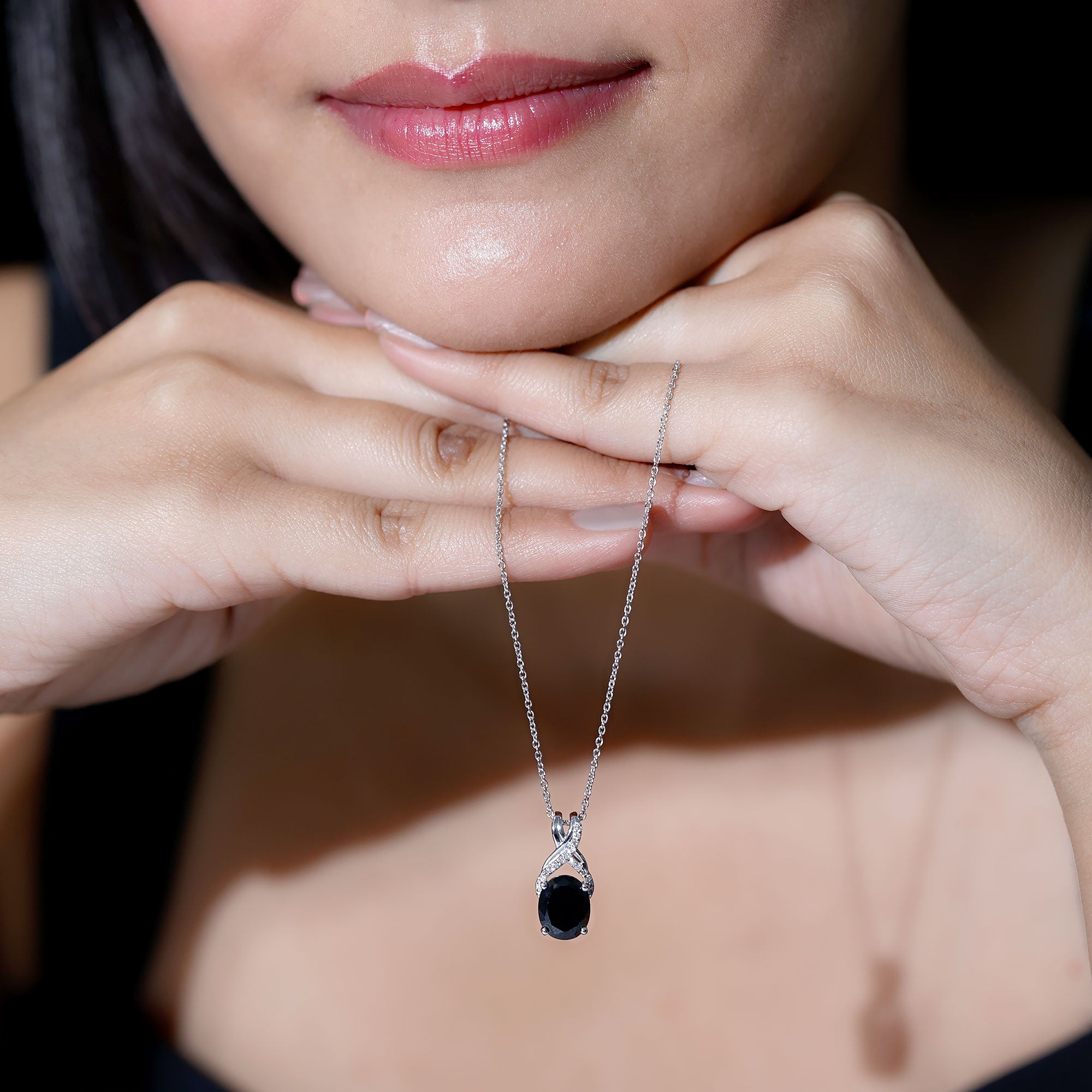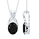 Introducing a one-of-a-kind Created Black Diamond Pendant Necklace that is both delicate and charming. The 8X10 MM Oval-Cut Created Black Diamond takes center stage in a 4 Prong Setting, with a Twisted Bail adorned with Diamond on a Solitaire Pendant. This Designer Pendant is so beautiful that its likely to become a staple in your collection, one youll never want to take off.