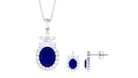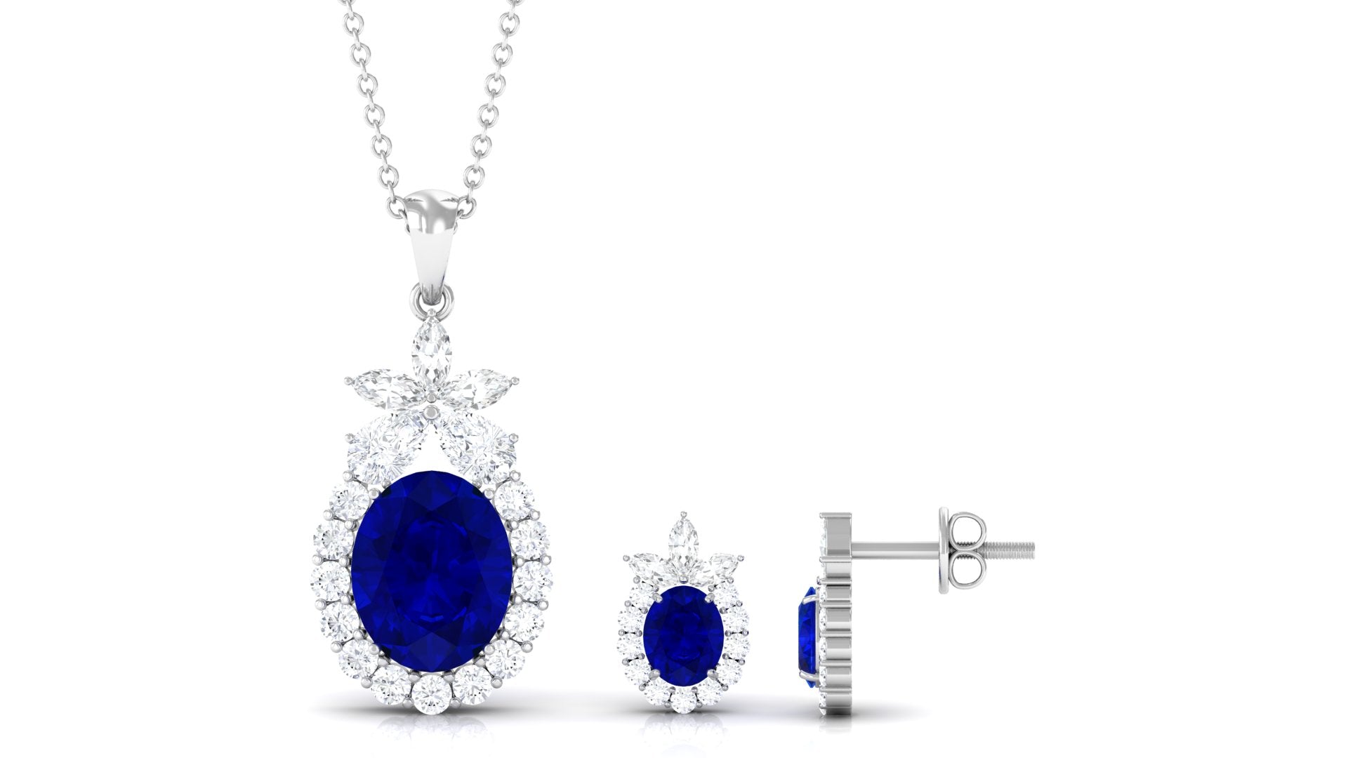 Oval Created Blue Sapphire Designer Flower Jewelry Set with Moissanite