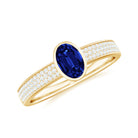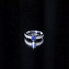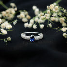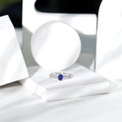 Oval Created Blue Sapphire Solitaire Engagement Ring with Diamond Side Stones
