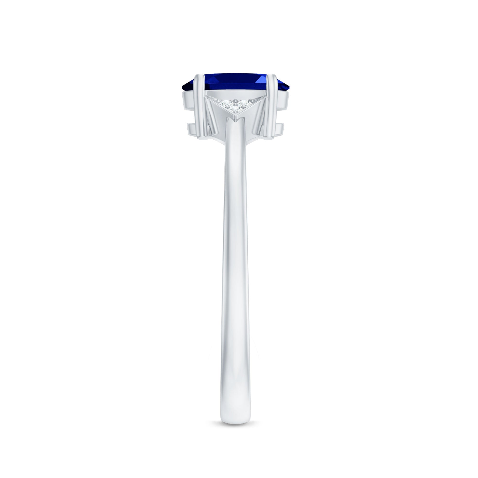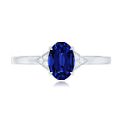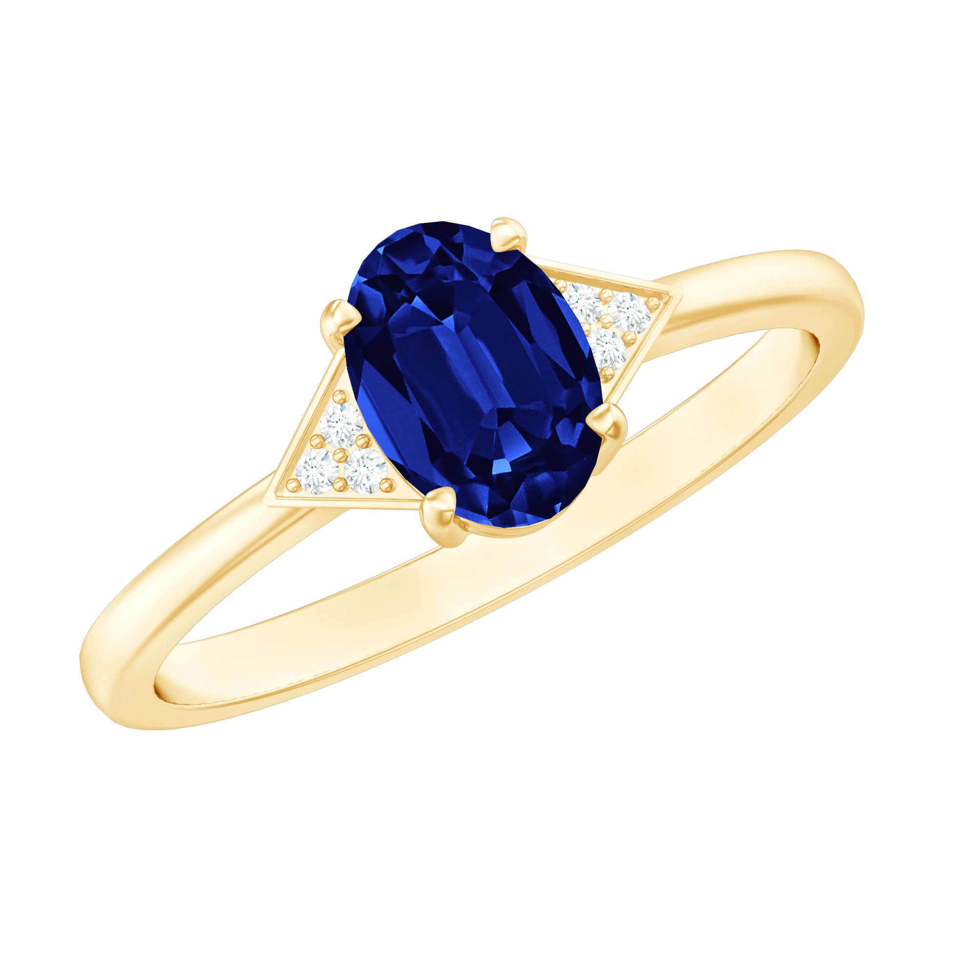 Oval Created Blue Sapphire Solitaire Ring with Diamond Accent