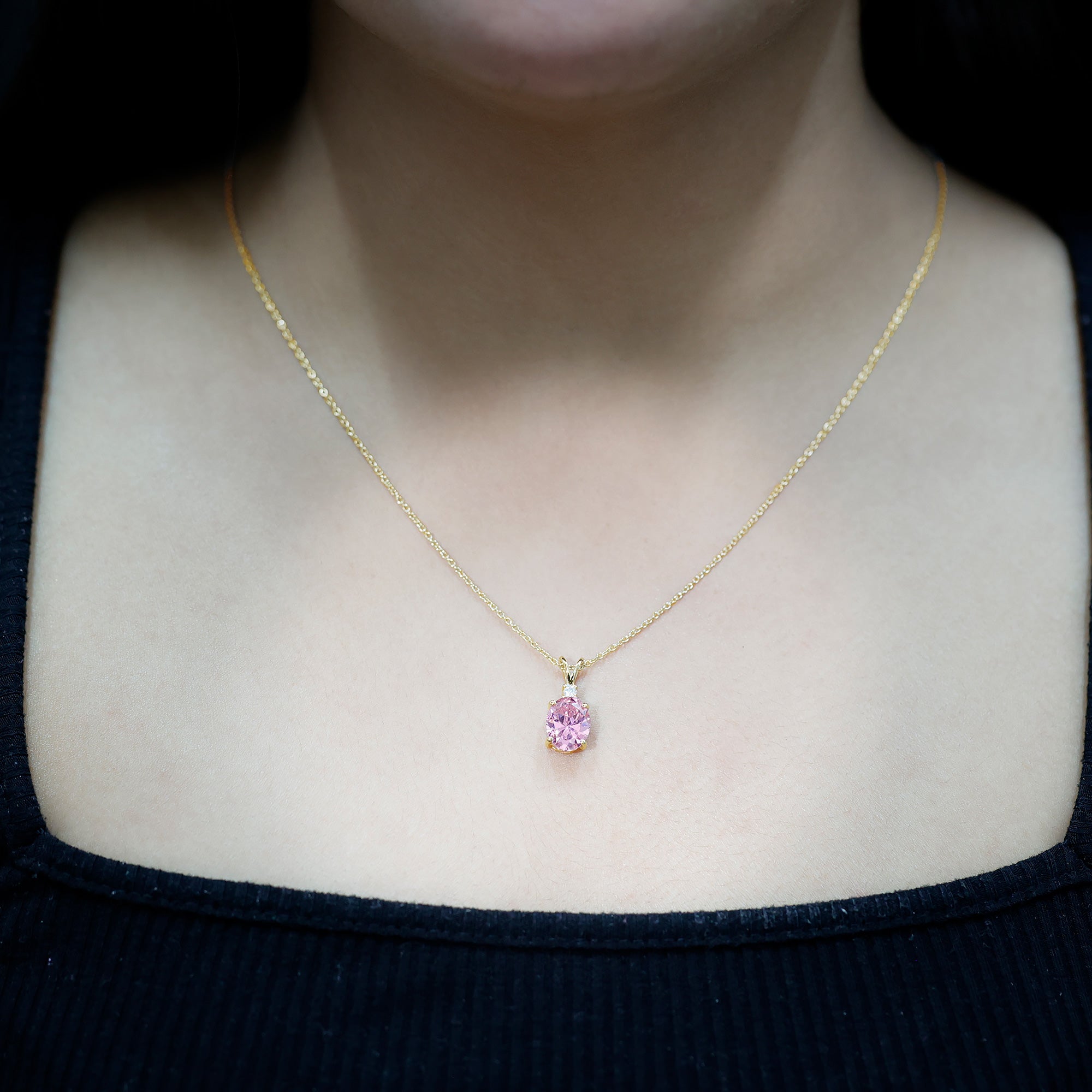 Oval Created Pink Sapphire Solitaire Pendant with Dainty Moissanite