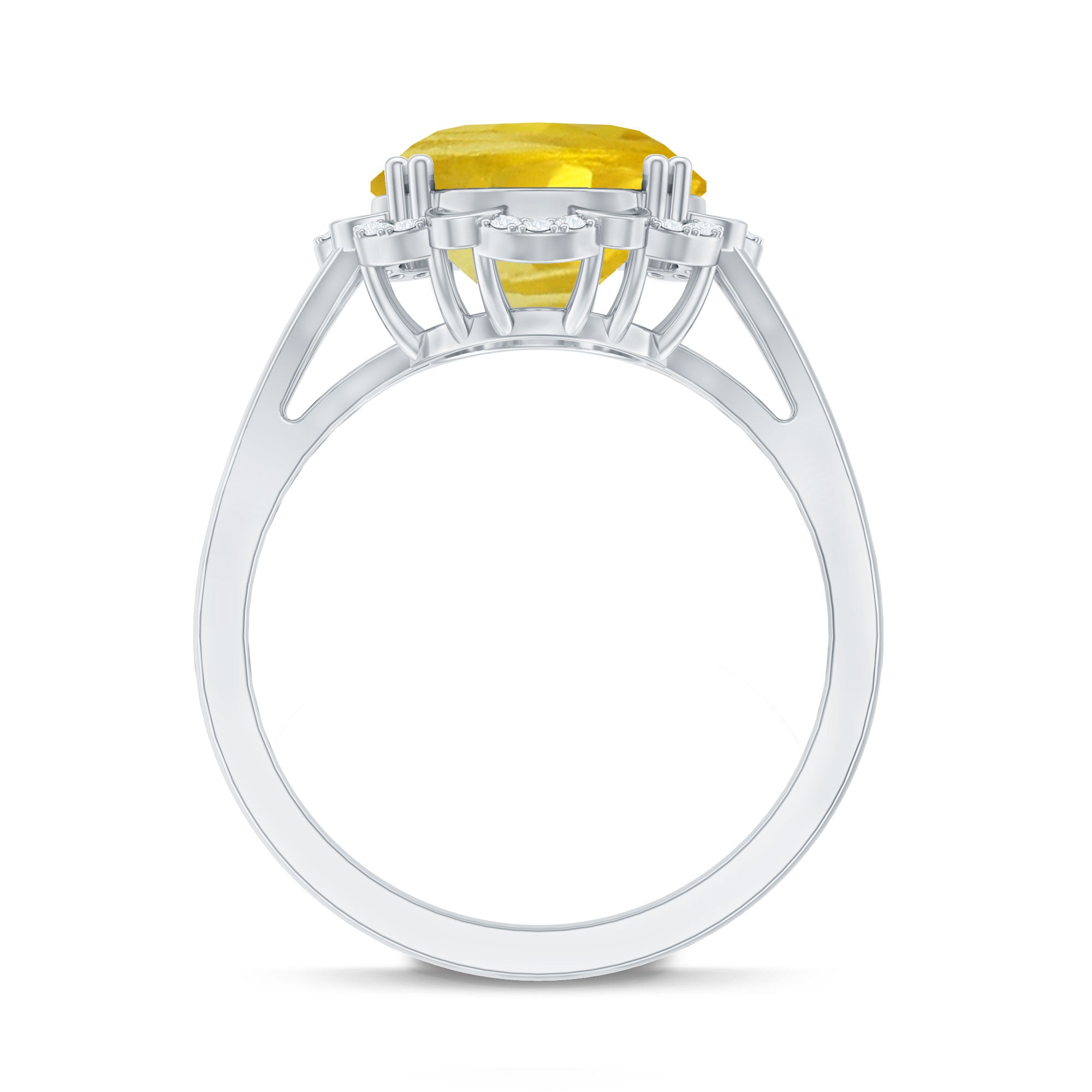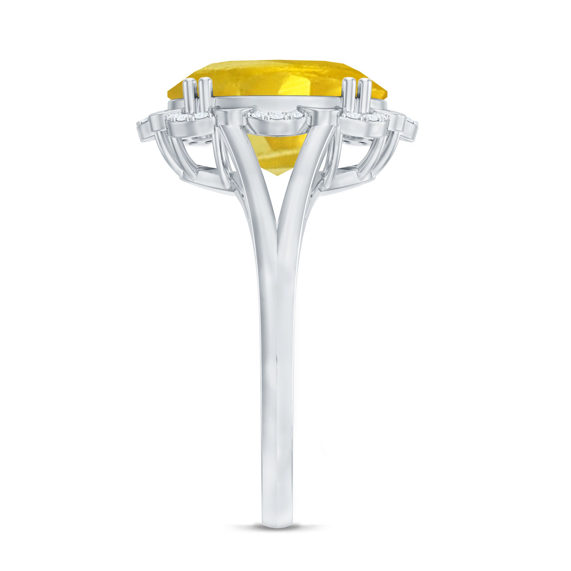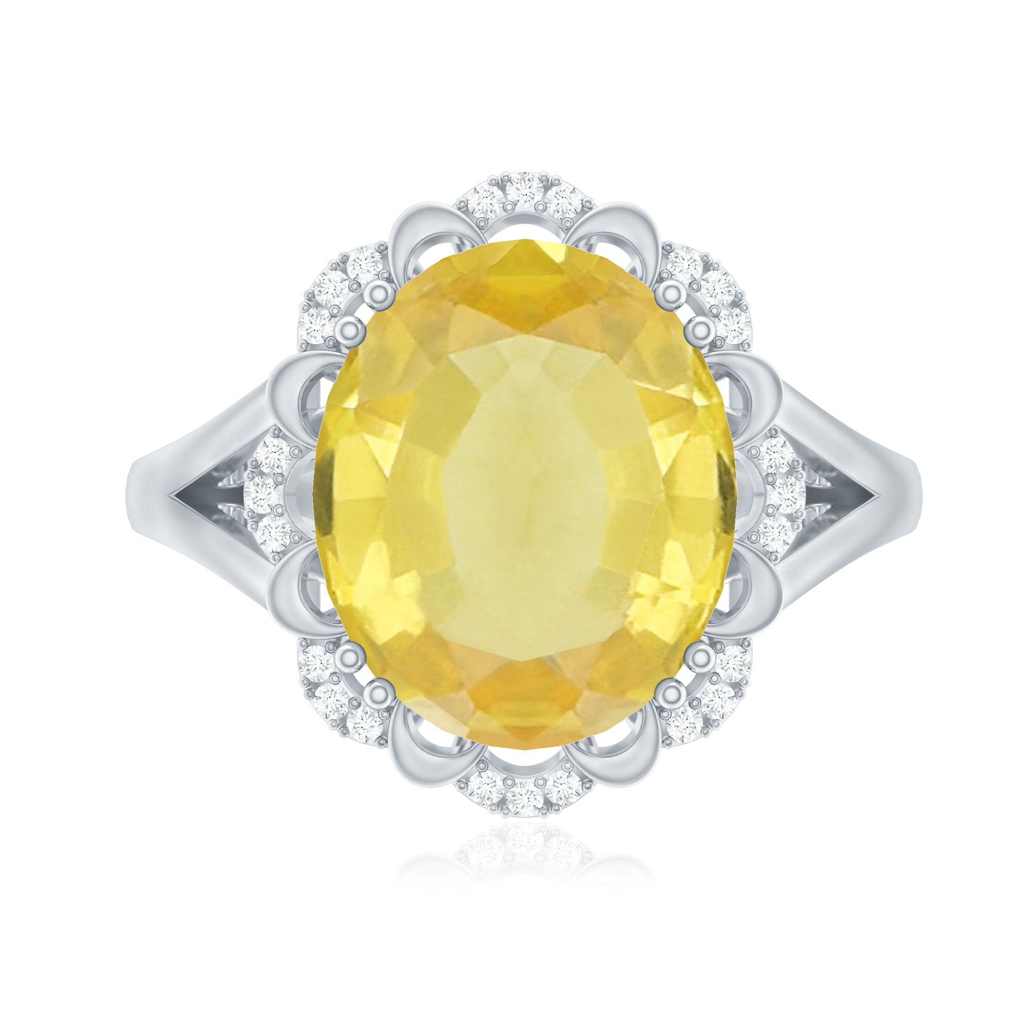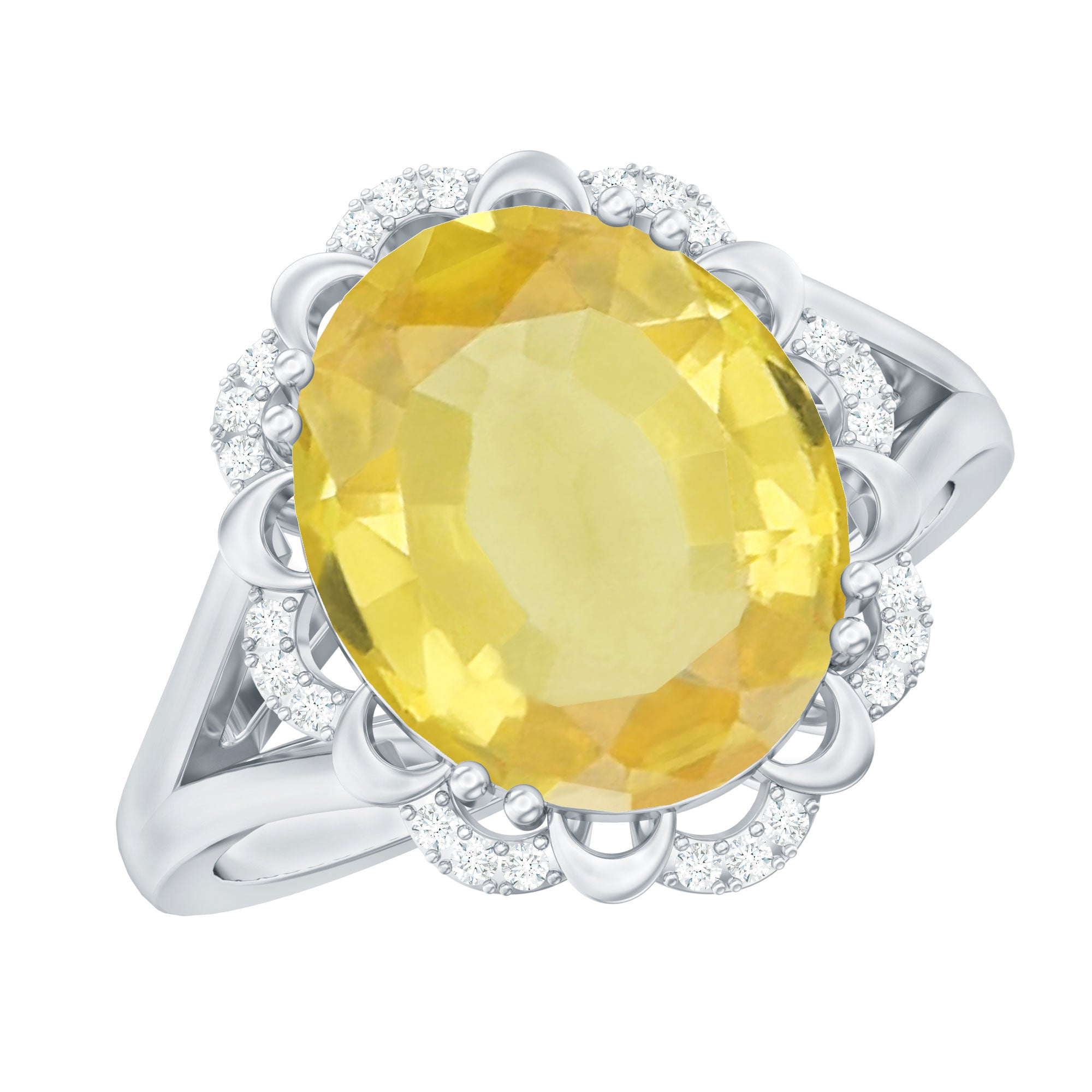 You can be sure your girl will be mesmerized by this Engagement Ring and her eyes will tear up with joy when she sees it. Embellished with 10X12 MM Oval Cut Lab Created Yellow Sapphire secured in Double-Prong-Setting while Round Diamonds studded on a unique design. Your Created Yellow Sapphire Ring will make a perfect gift for her when you get down on your knees and declare your love for her.
