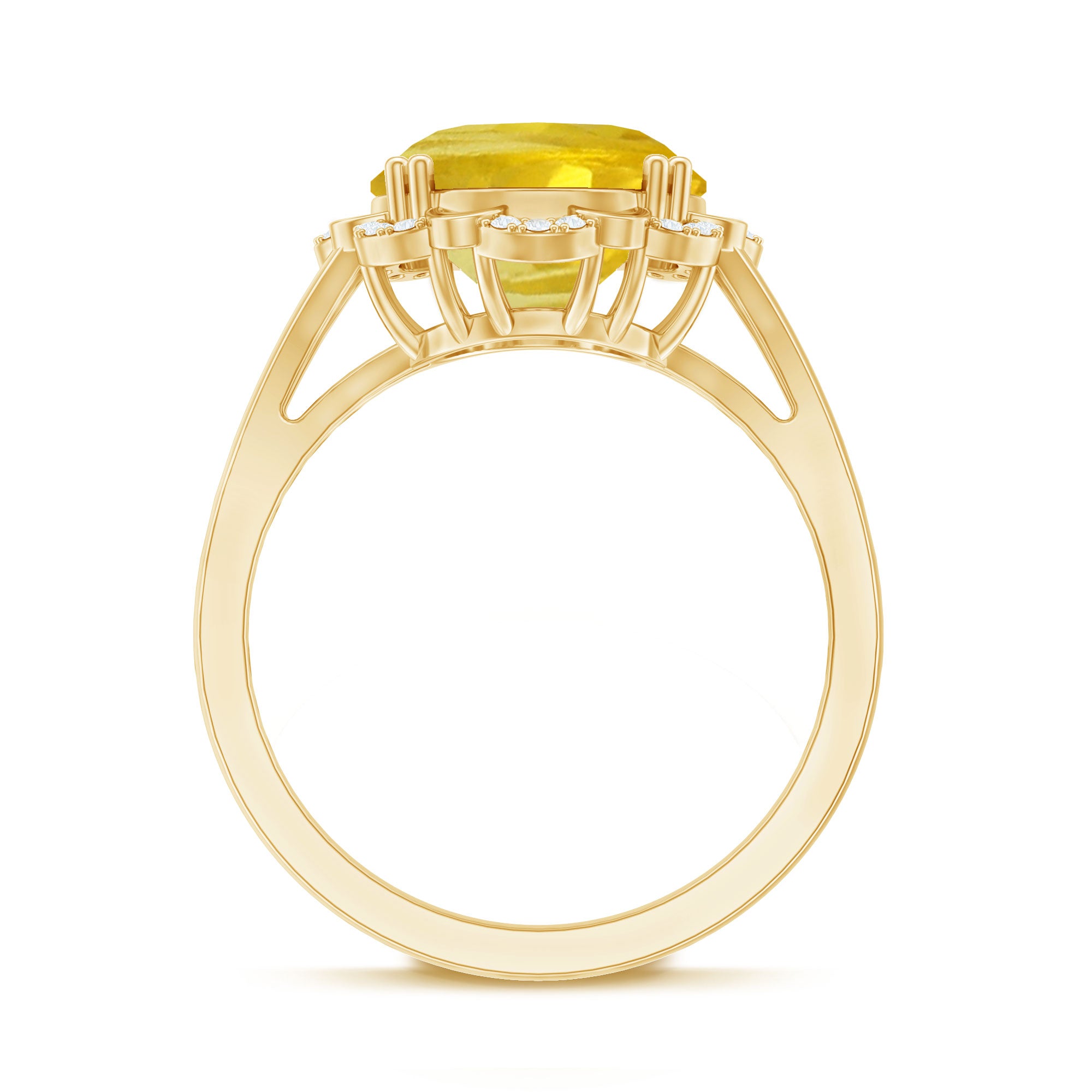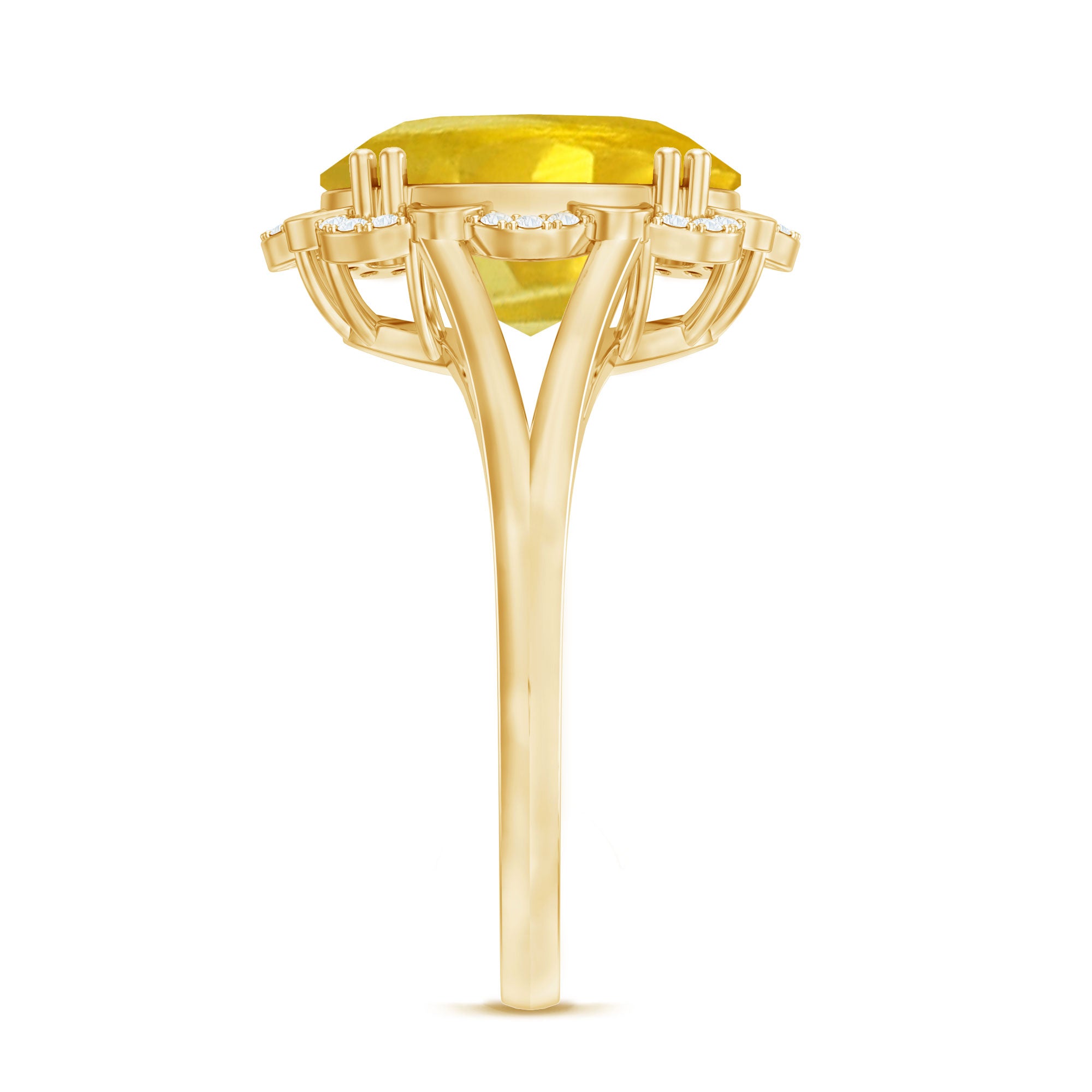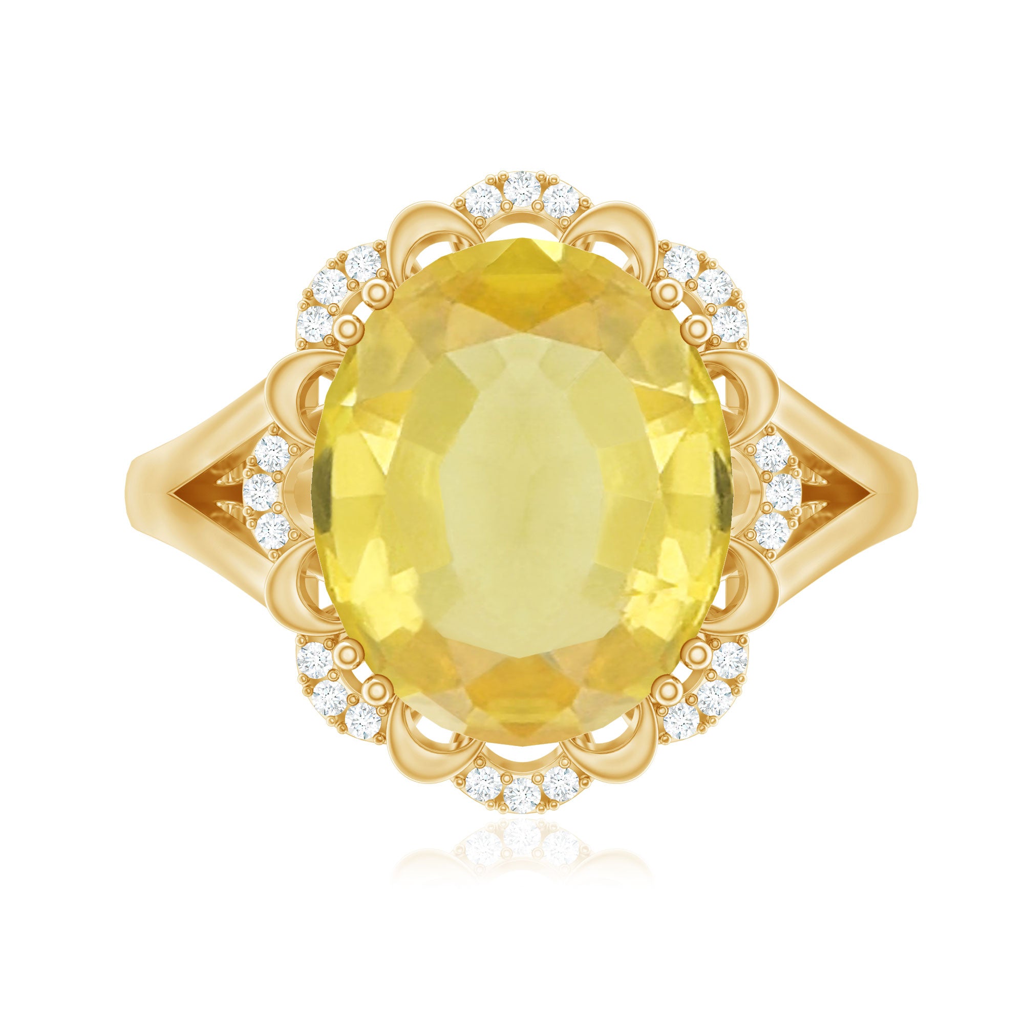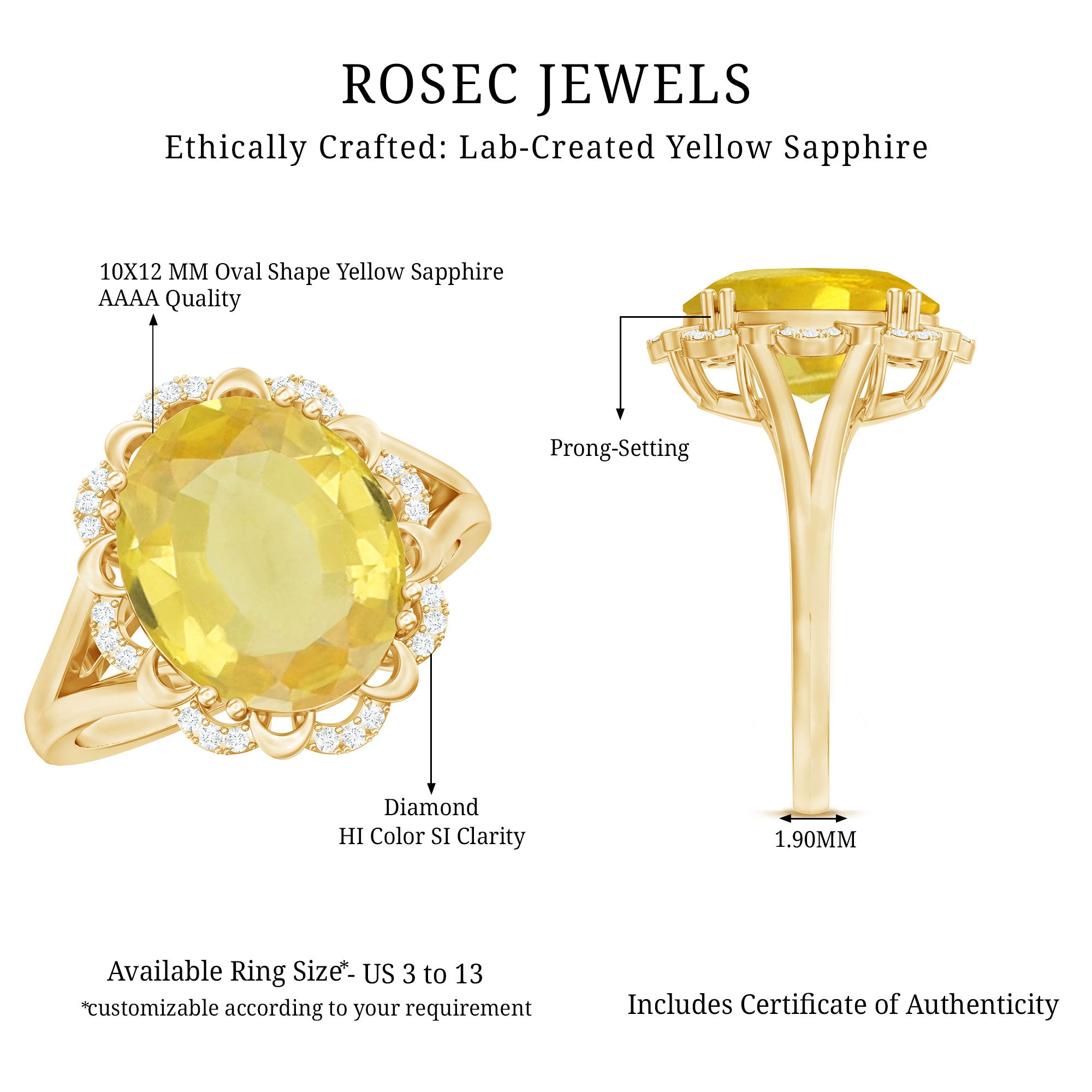 Oval Created Yellow Sapphire Split Shank Engagement Ring with Diamond