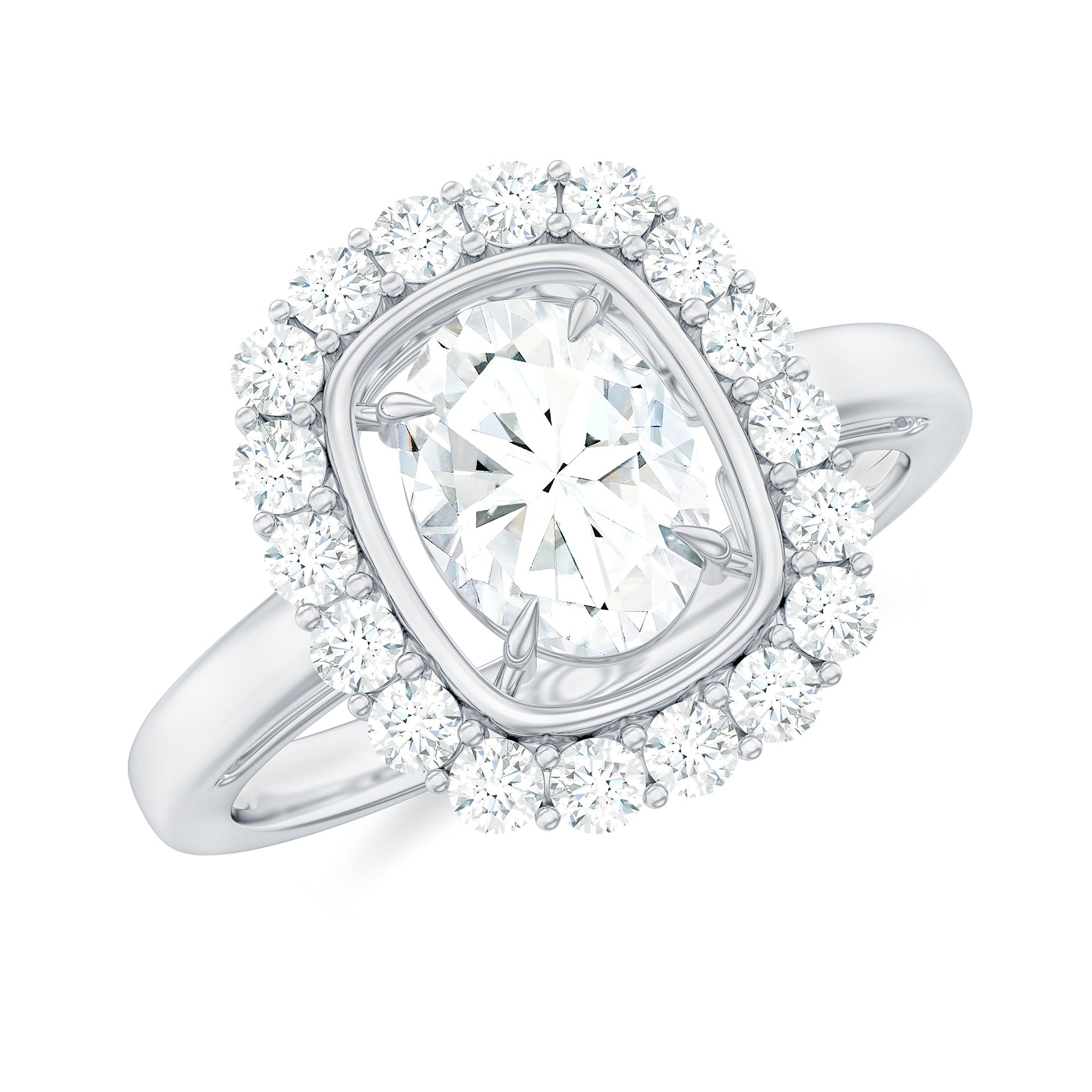Oval Cubic Zirconia Halo Statement Engagement Ring