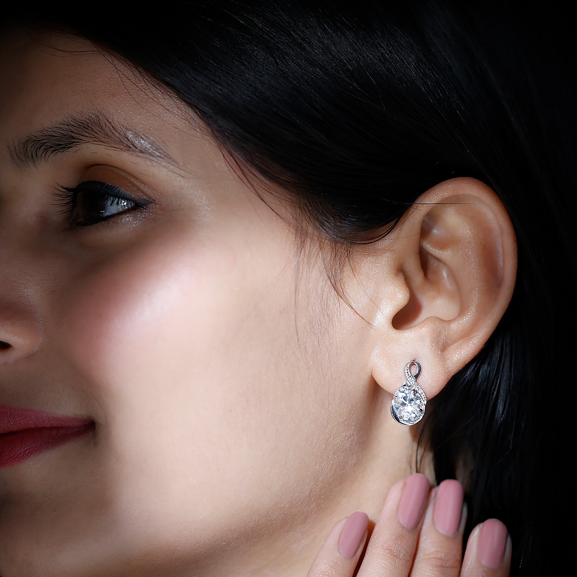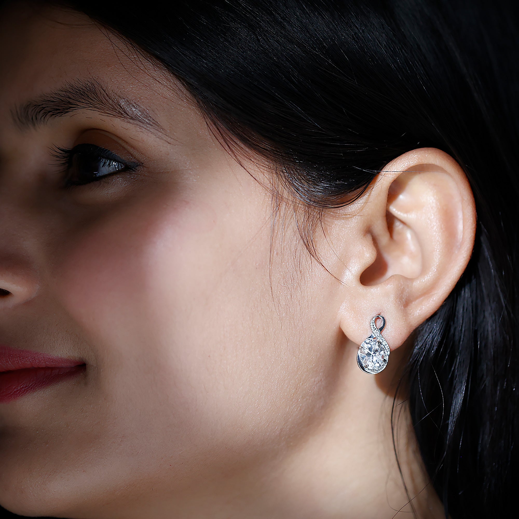 Adorn your ears with these Moissanite Earrings, precisely crafted to complete your look for the special day. These Big Stud Earrings are crafted with a 7X9 MM Oval Shape Moissanite placed in an infinity frame, partially studded with smaller stones. The Infinity Earrings behold the classic shine of D-VS1 Quality Moissanite securely placed in Prong Setting. These stud earrings have a screw back closure which keeps them on place throughout the day. These Cocktail Earrings can be presented as a gift to your bridesmaid as a token of appreciation for being by your side on the big day.