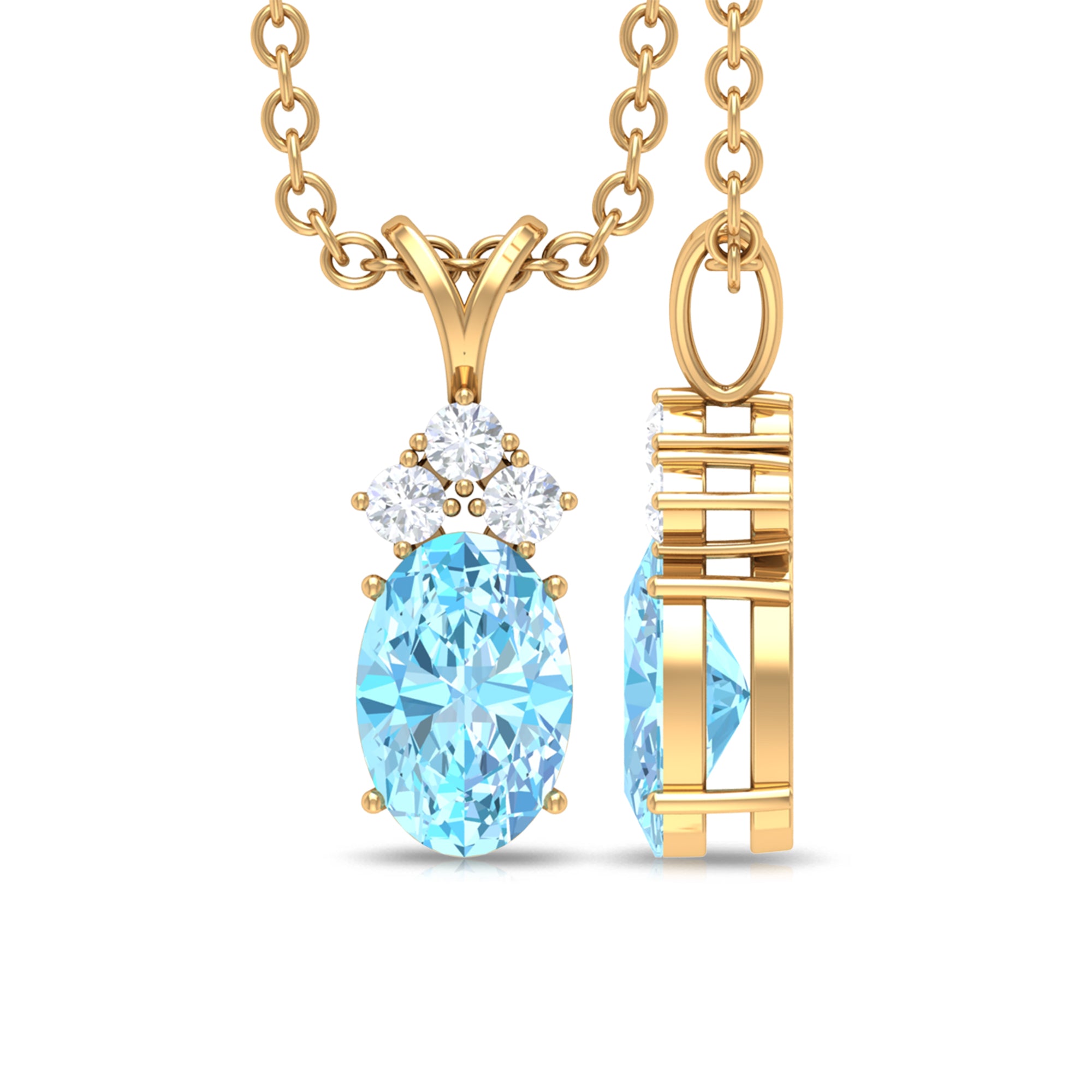 Oval Cut Aquamarine Pendant with Diamond Trio