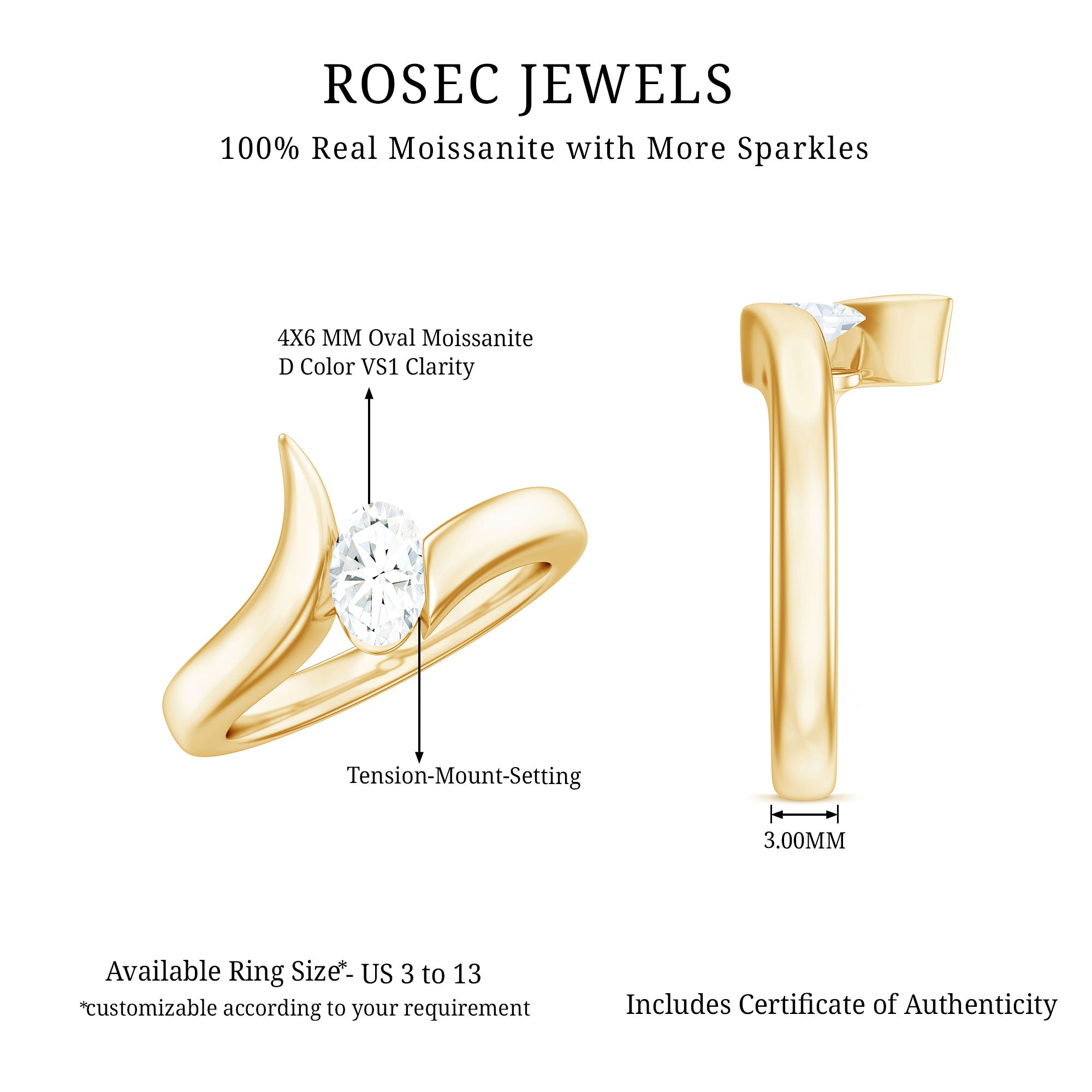 4x6mm Oval Cut Moissanite Solitaire Bypass Ring