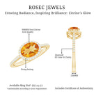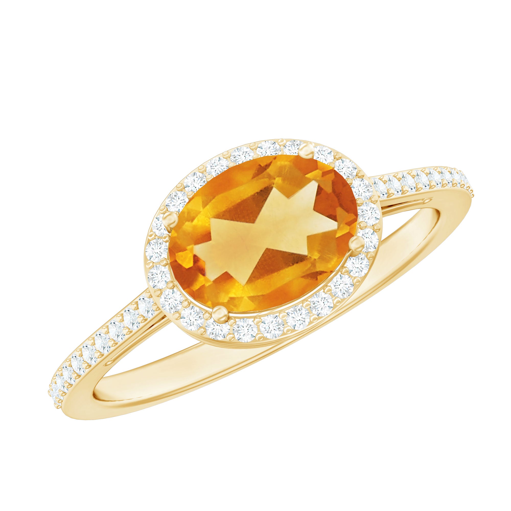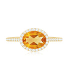 Oval Cut Citrine East West Engagement Ring with Diamond Halo