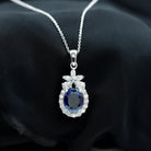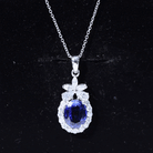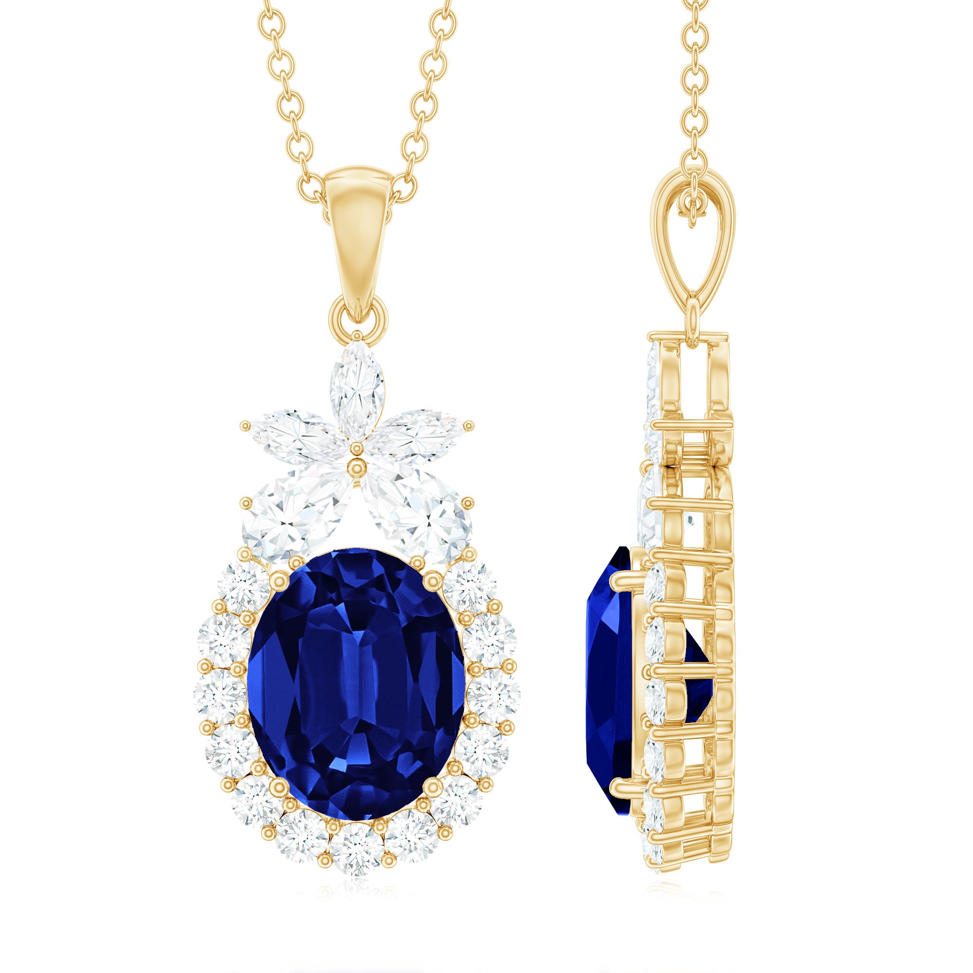 Oval Cut Created Blue Sapphire and Moissanite Floral Statement Pendant