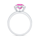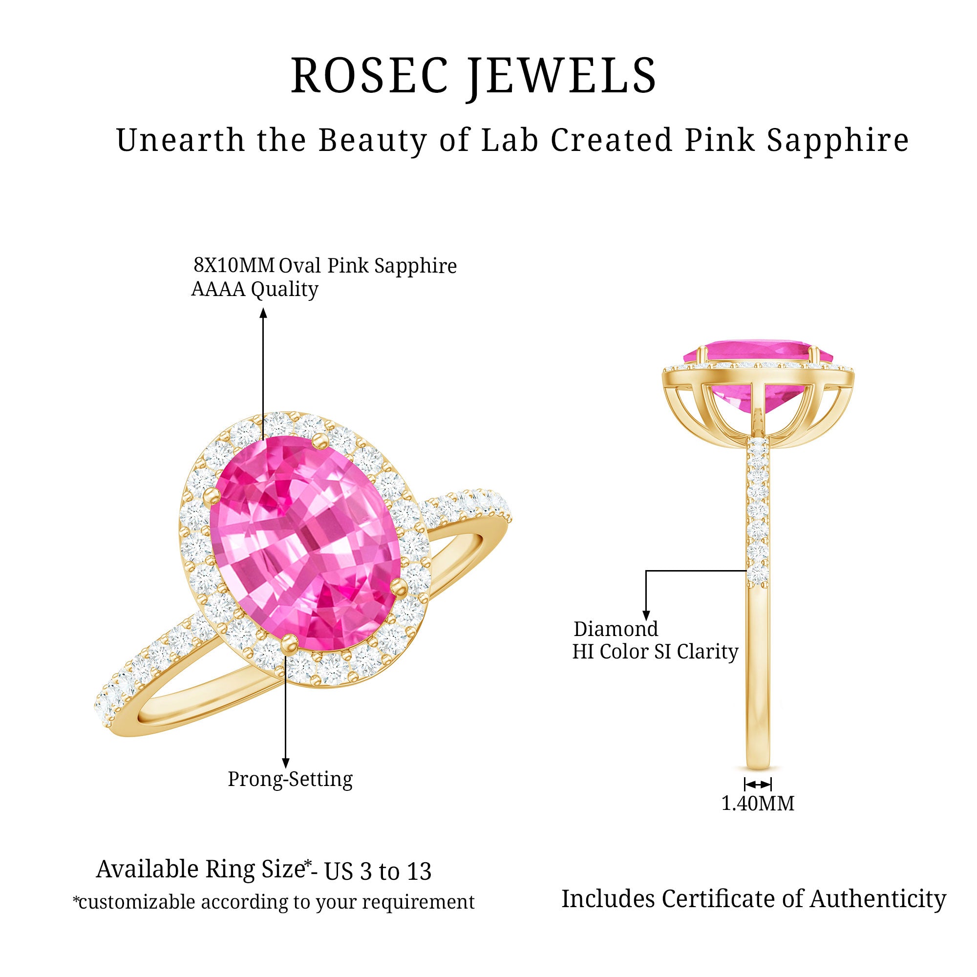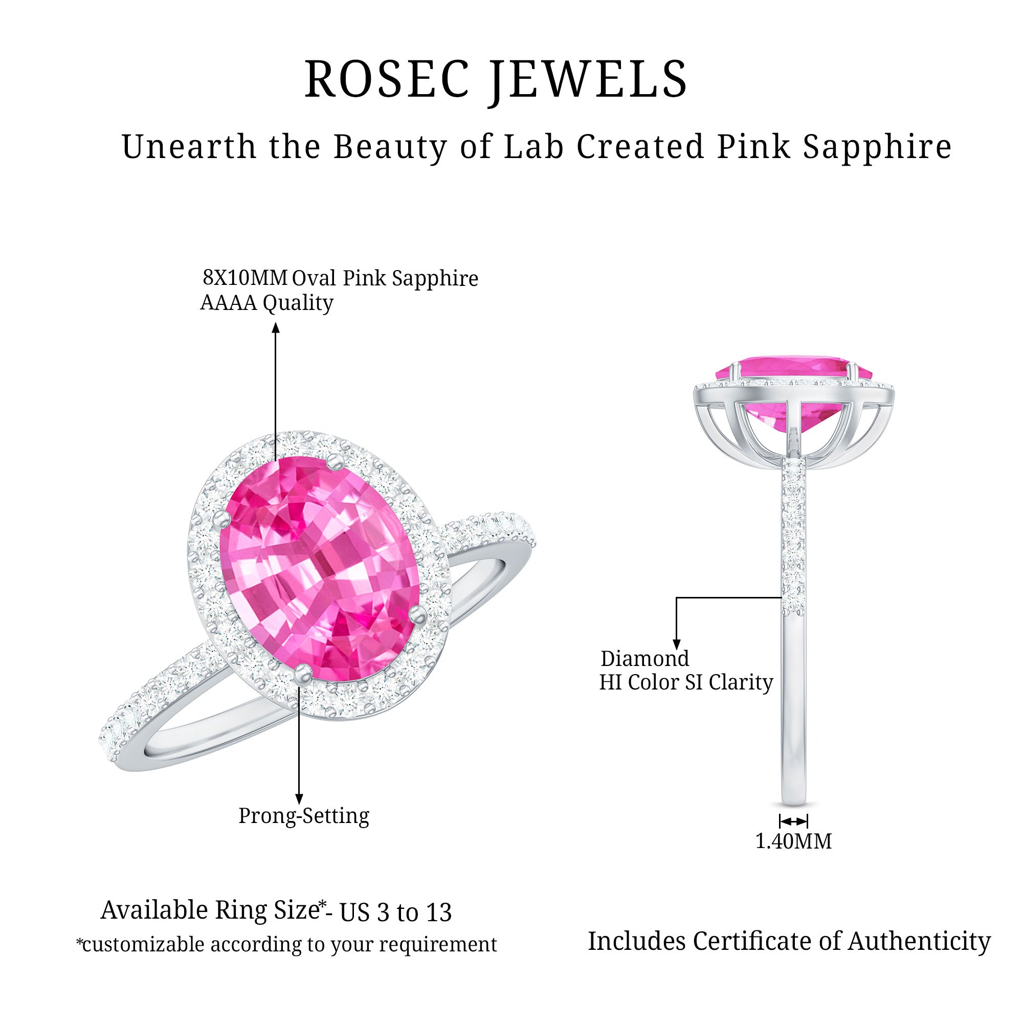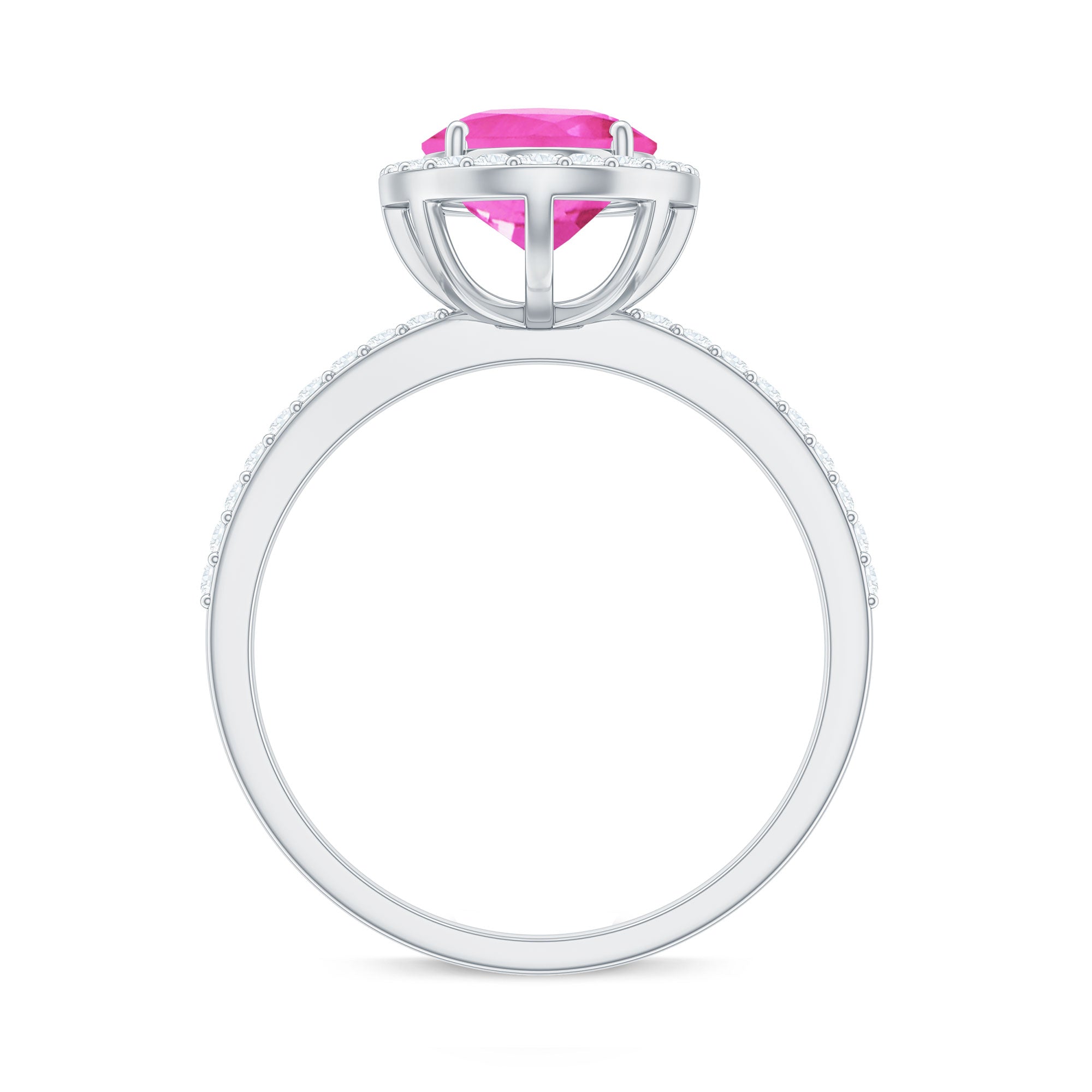 Oval Cut Created Pink Sapphire and Diamond Halo Ring