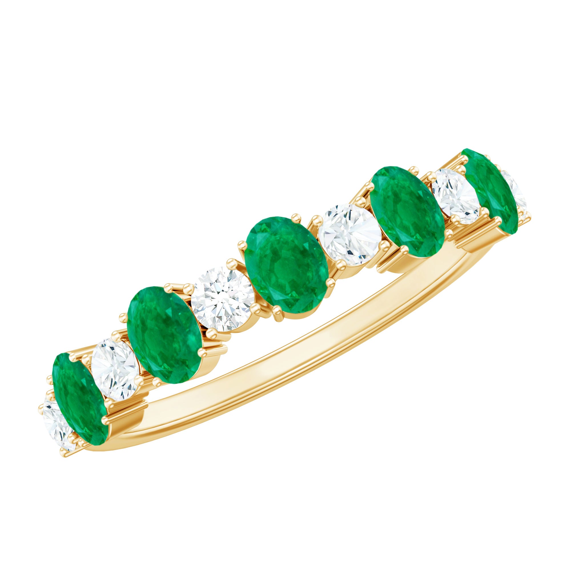 This Half Eternity Band is a bold take on a classic style, created to stand out and shine every day. This Semi Eternity Band features 3X4 MM oval cut emeralds, each set in an alternate pattern with round shape diamonds in a secure prong setting. The band showcases a half-eternity design that embodies a timeless and sophisticated style. This Eternity Wedding Band sparkles with the exceptional brilliance of AAA quality emerald, making it a perfect choice for the special occasion. The Emerald Eternity Ring flows gracefully, representing everlasting love beautifully. Crafted to commemorate your unforgettable moments, it will be presented in a timeless jewelry box for secure storage. Rosec Jewels offers a variety of metal colors and purity options to select from. Showcasing a timeless yet striking design, this Eternity Band Ring is an excellent choice for a wedding band or anniversary ring, representing the beginning of a new journey. It blends sophistication with contemporary style, making it perfect for those who desire a touch of luxury.